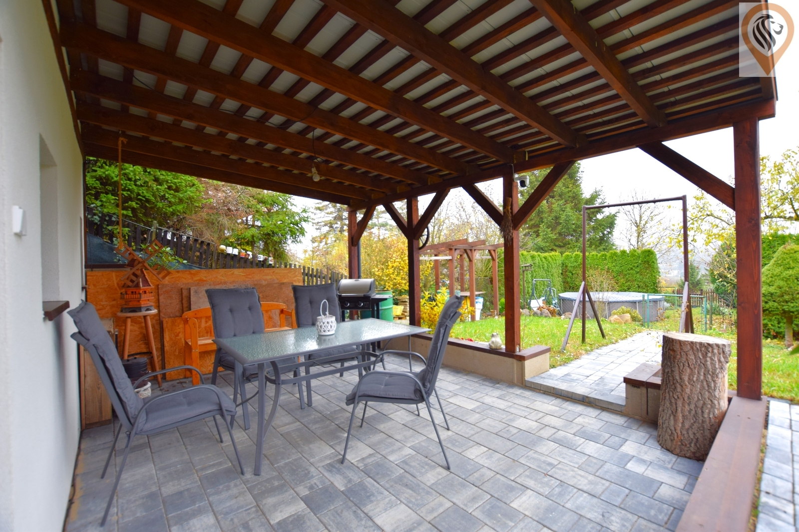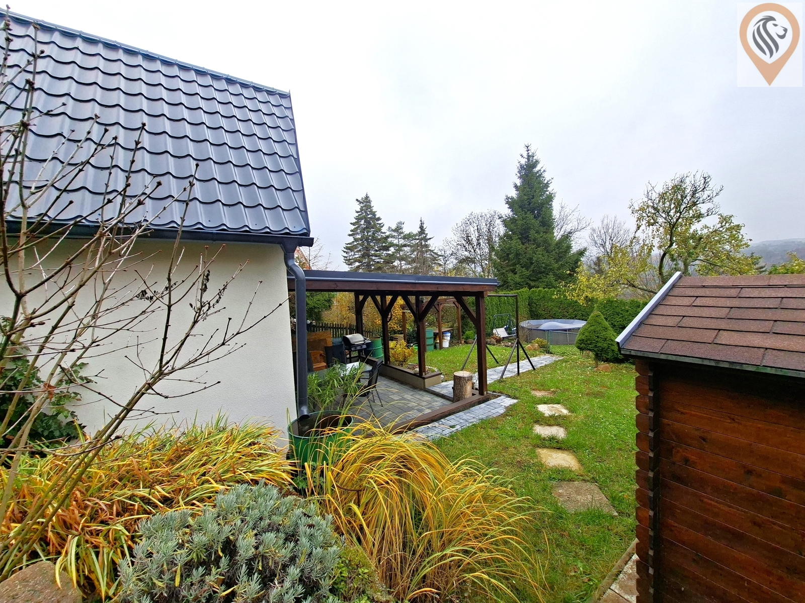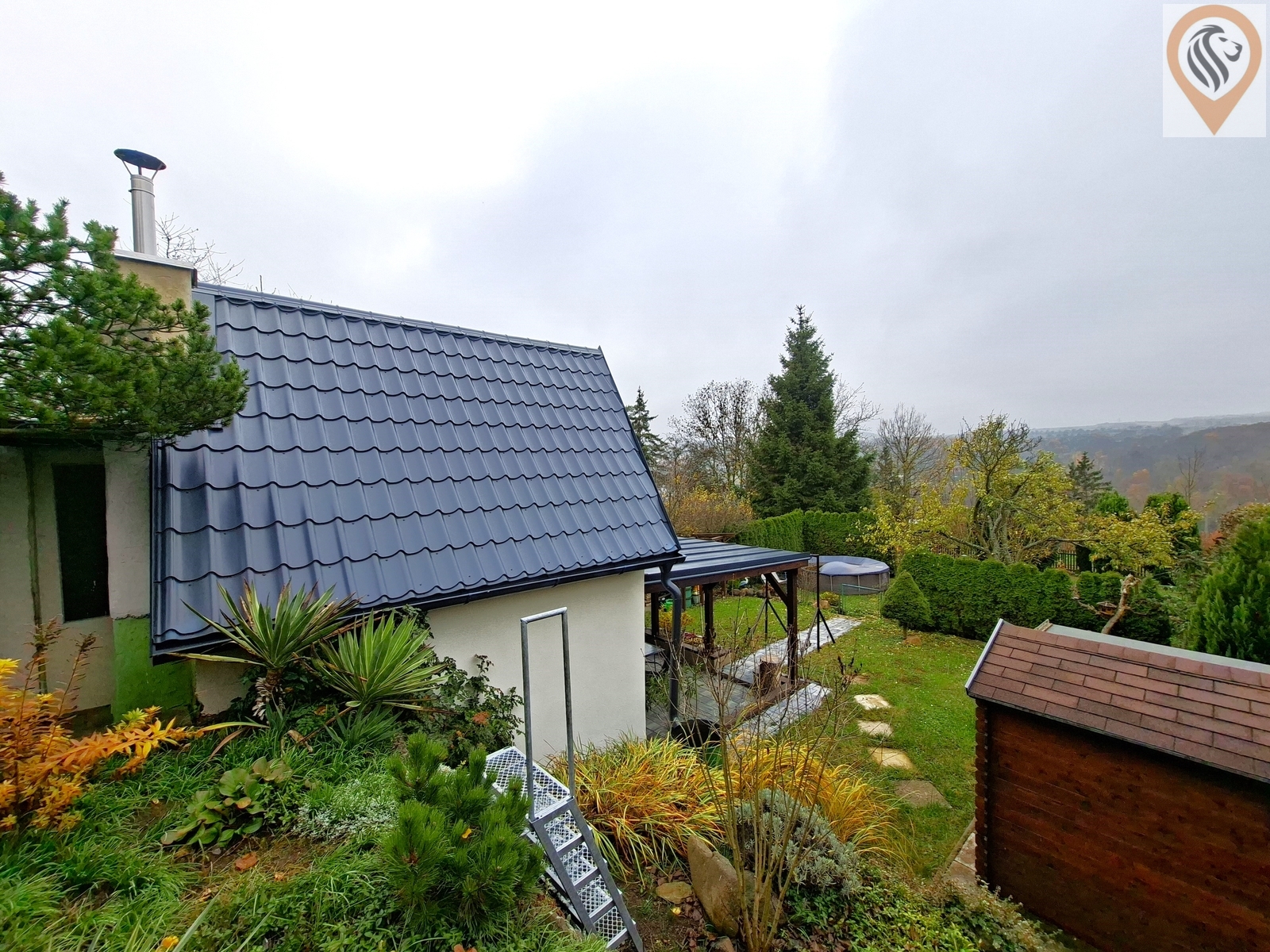Chata stojí na vlastním pozemku o zastavěné ploše 30 m² s prostornou zahradou 443 m². Součástí pozemku je nová pergola, ideální pro posezení a grilování s rodinou či přáteli. Najdete zde okrasné i užitkové rostliny, keře a stromy, které vytvářejí příjemné a ucelené prostředí. Pro letní osvěžení slouží nadzemní bazén. Horní část zahrady, členěná terasovitě do svahu, poskytuje soukromí a malebná zákoutí s výhledem na okolní krajinu – perfektní místo pro odpočinek a klid v přírodě.