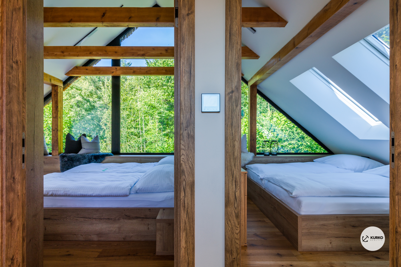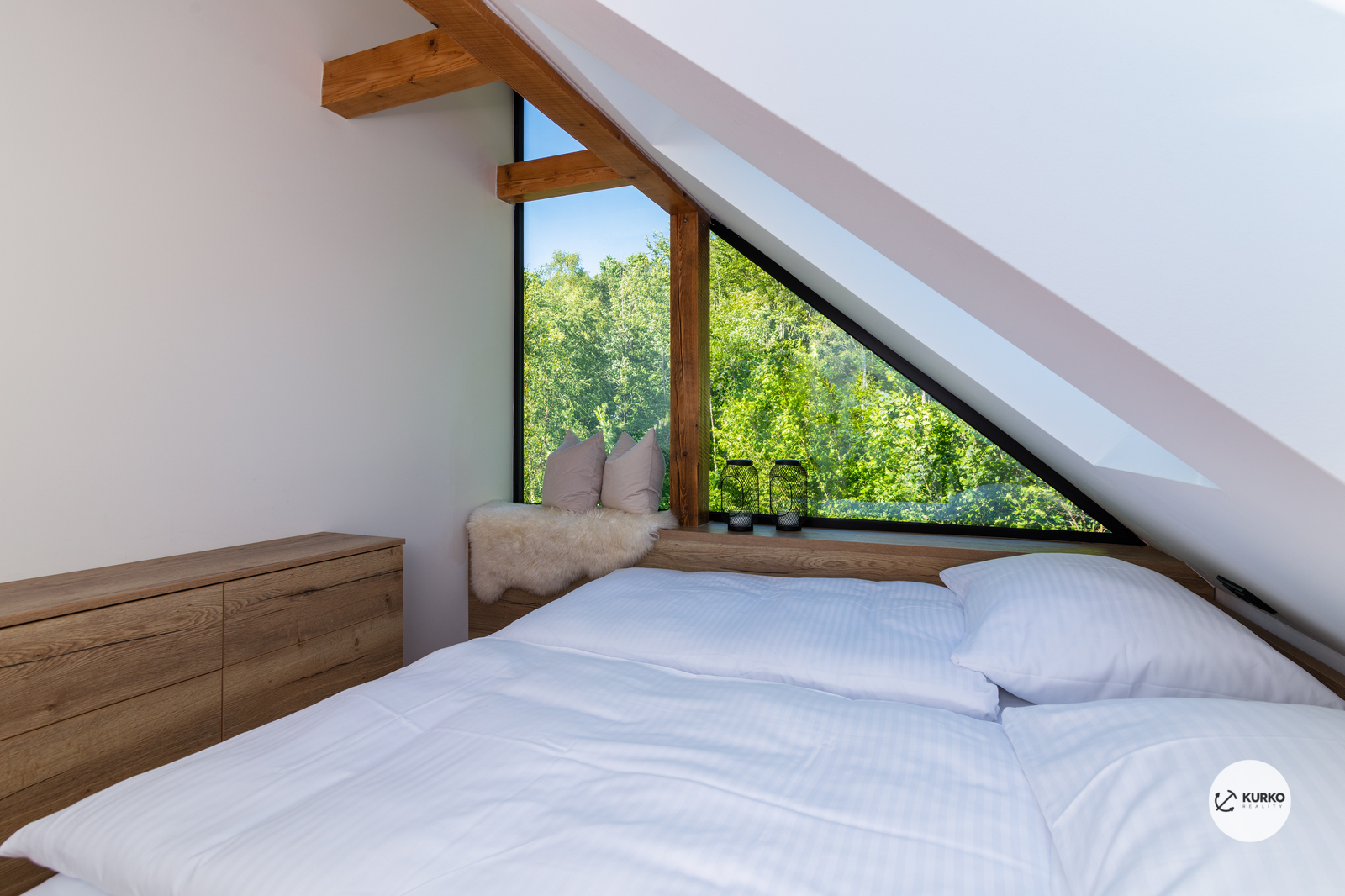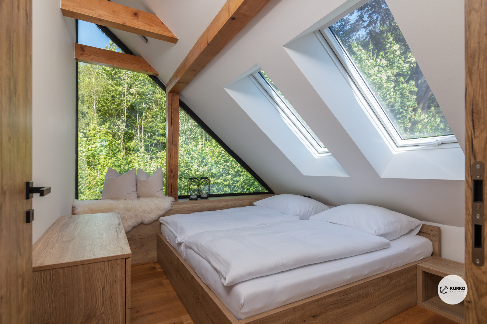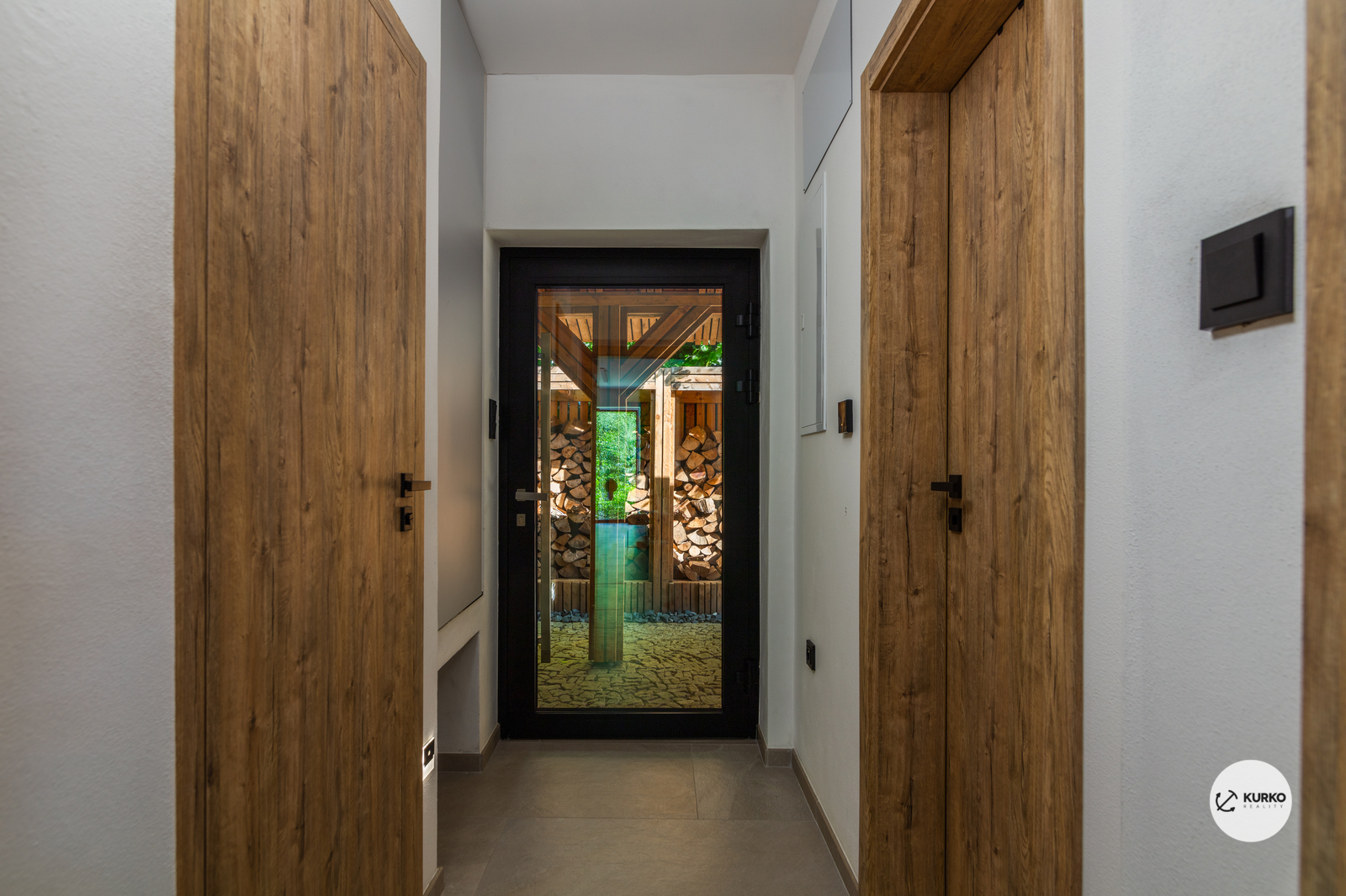 Nabízíme rekreační nemovitost o dispozici 3+KK, stojící na pozemku o výměře 970 m2 v obci Čeladná. Zděná nemovitost s číslem evidenčním byla kolaudována v roce 2022 a stojí na klidném místě s celoročním příjezdem. Nemovitost má vlastní vodu z velkokapacitního vrtu, připojení na elektřinu 230/400V, internet a jímku. Vytápění nemovitosti zajišťuje krb nebo podlahové - elektrické s individuálním SMART ovládáním. Ohřev vody je řešen elektrickým bojlerem. Obvodové zdivo a střecha jsou zatepleny. V přízemí se nachází zádveří, koupelna, wc, technická místnost, obývací pokoj s vybavenou kuchyní a vstup na velkorysou terasu, která je vybavená vířivkou, projektrorem s promítacím plátnem, výkonným audio systémem, posezením a grilem. Z terasy je přímý vstup na vrostlou zahradu. V 2NP se nachází koupelna, wc a dvě ložnice. Nemovitost je podsklepená. Při stavbě nemovitosti byly použity kvalitní materiály. Dřevěné podlahy, střešní krytina zn. Prefa, obložení fasády a terasy z modřínového dřeva, betonové stěrky, hliníková okna vč. portálových dveří apod. Nemovitost je oplocena. Vlastní parkování až pro 4 automobily. Nemovitost je k prodeji s kompletním vybavením. Pro více informací k této nemovitosti nebo dohodnutí prohlídky, kontaktujte makléře.