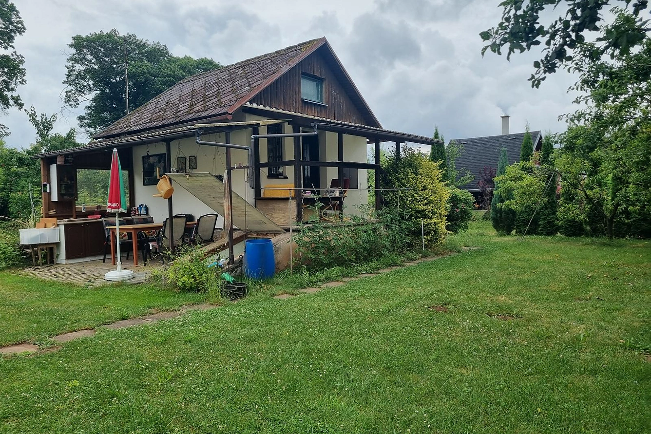 Chata stojí na vlastním pozemku. Zahrada o výměře 406 m2 je v pronájmu od města.