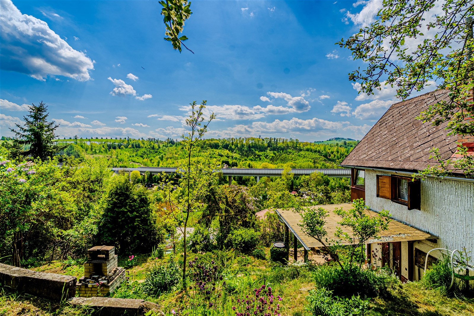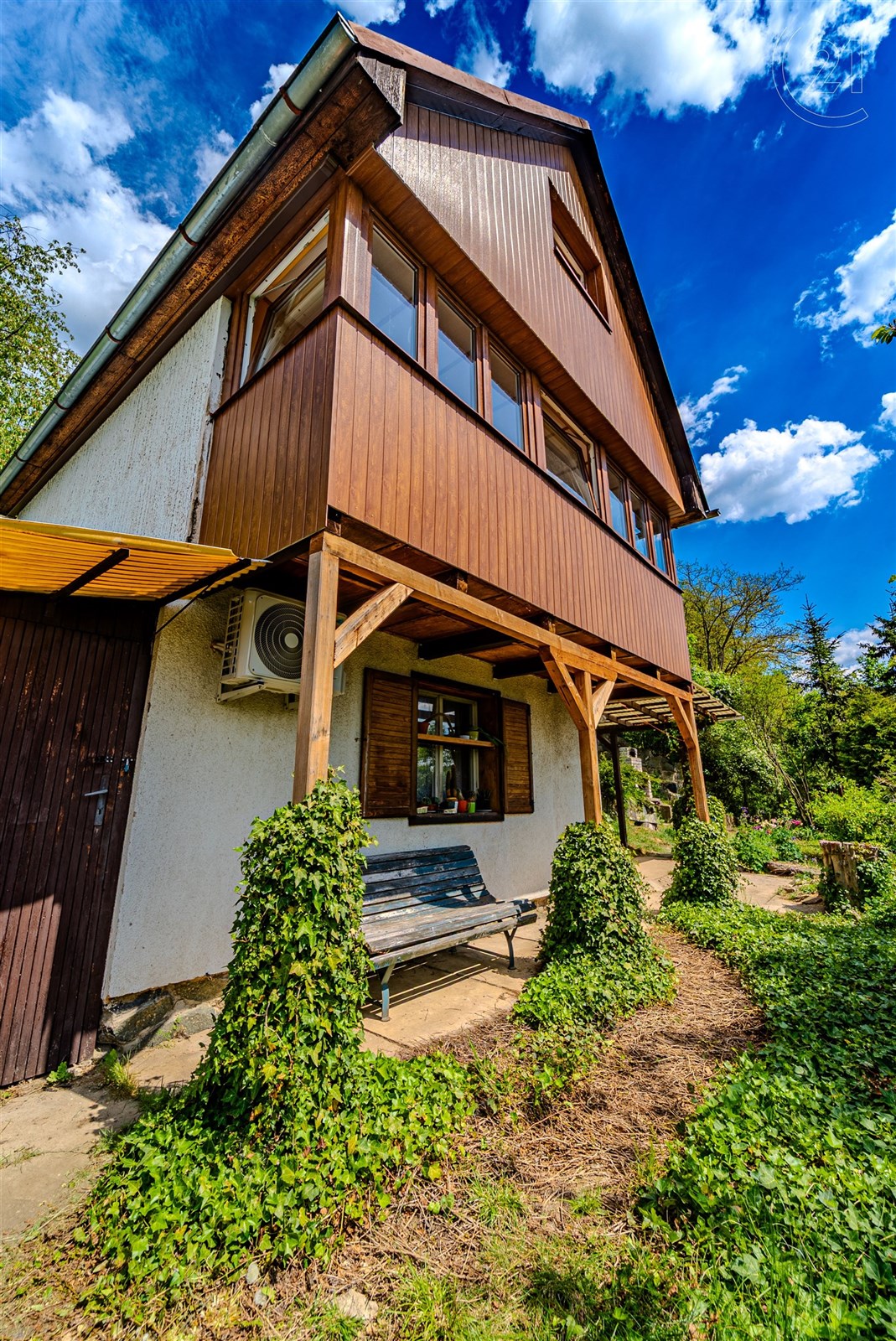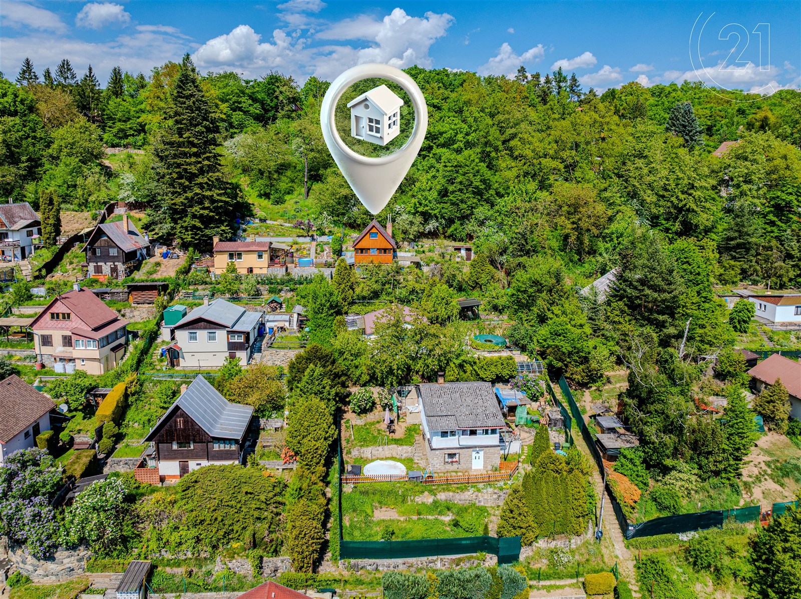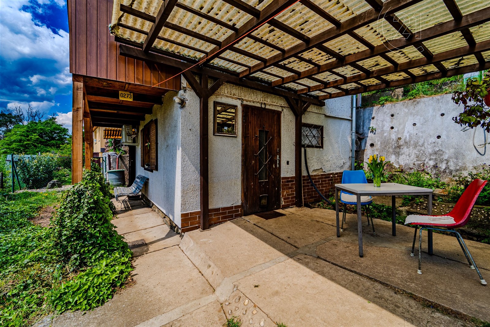 Pozemek je velikostí ideální pro snadnou údržbu a jsou zde květinové a zeleninové záhony. K chatě náleží dílna s pracovním pultem a k uskladnění vybavení či kol a krytá terasa. Orientace na jih zaručuje dostatek slunce po celý den a umístění ve svahu výhled na údolí řeky Sázavy. K pozemku je přístup ze dvou stran pouze pro pěší, z horní a ze spodní cesty, kde je možnost zaparkovat. Dostupnost do Prahy je díky blízké D1 20 minut.