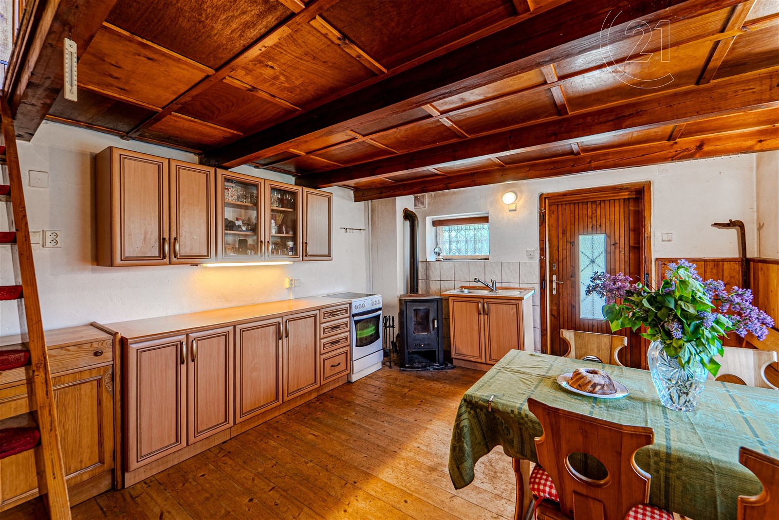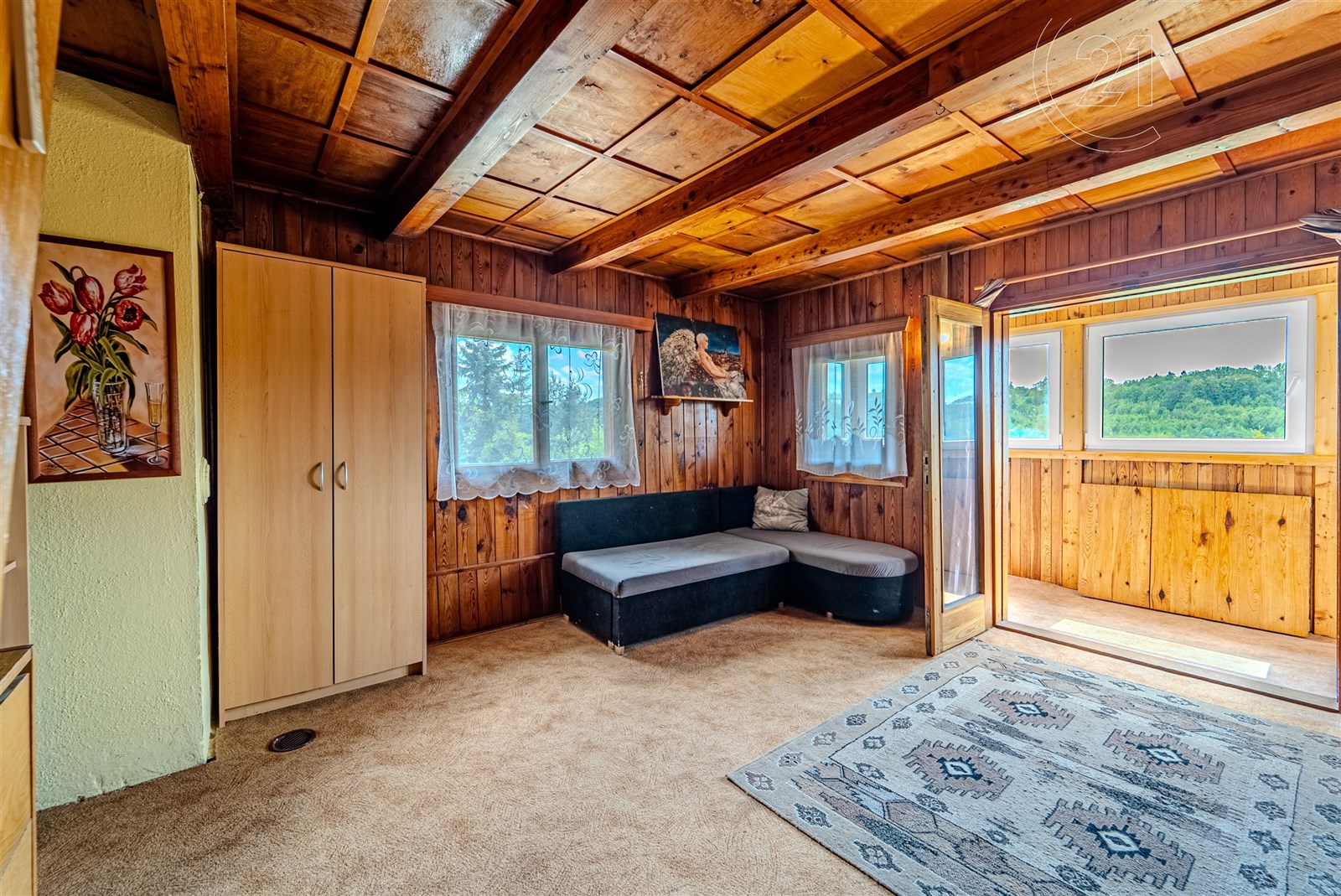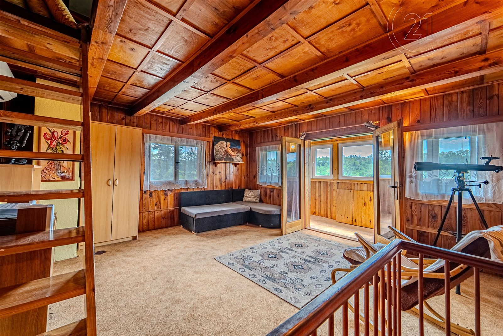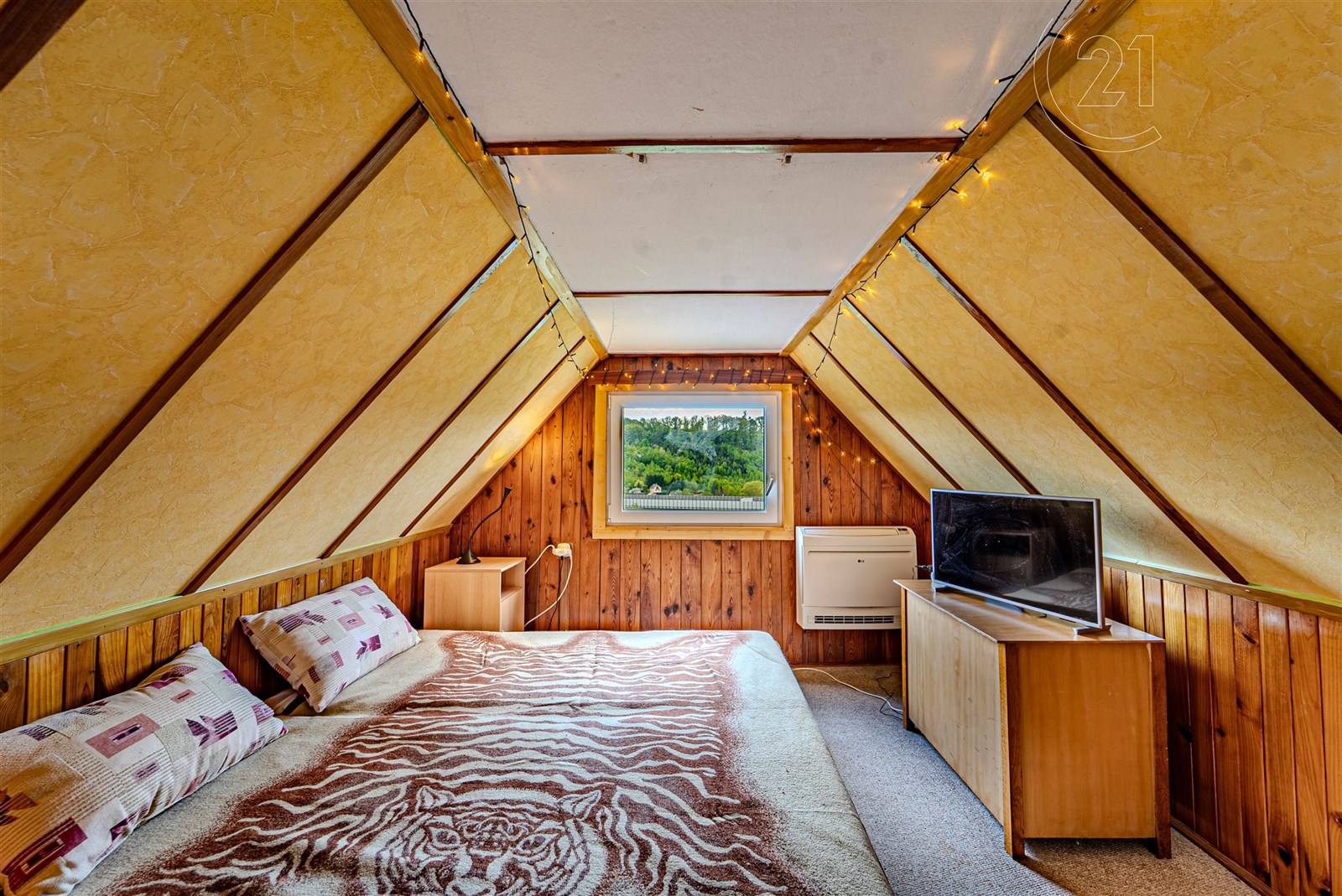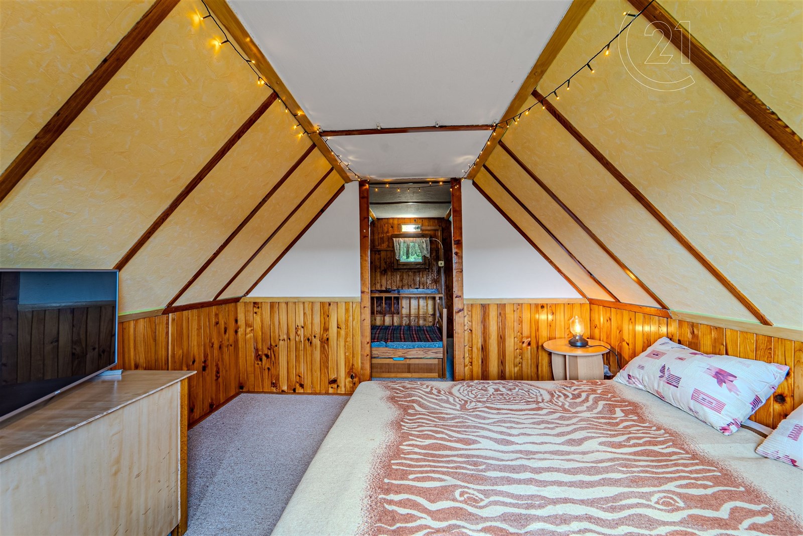 Dovolujeme si Vám nabídnout ke koupi rekreační chatu vhodnou i k celoročnímu užívání v Kališti – Poddubí. Chata o dispozici 3+kk je třípodlažní a je vybavena kuchyní se sporákem, dále disponuje dvěma pokoji a obývací částí, kde je jídelní stůl. Dále je rozšířena o lodžii s rozkládacím stolem a dalším prostorem. Vytápění v chatě zajišťují tepelná čerpadla (vzduchvzduch). Tři samostatné jednotky (venkovní a vnitřní) s možností klimatizace. Dále jsou v chatě kamna na tuhá paliva, která prostory vytopí i samostatně. 1. nadzemní podlaží je zděné, tím je zajištěno příznivé klima, a 2. a 3. NP je dřevostavba. Lodžie je zasklena plastovými okny (dvojskla). Voda je čerpána z 30ti metrového vrtu s kvalitní pitnou vodou, která je připravena na zavedení do chaty. Nyní je vyvedena u chaty pro čerpání vody a je také vyvedena k zahradní sprše a k WC umístěného ve zděné stavbě na zahradě. Odpady jsou řešeny biodegradabilním septikem lze přebudovat na čističku odpadních vod a trativodem.