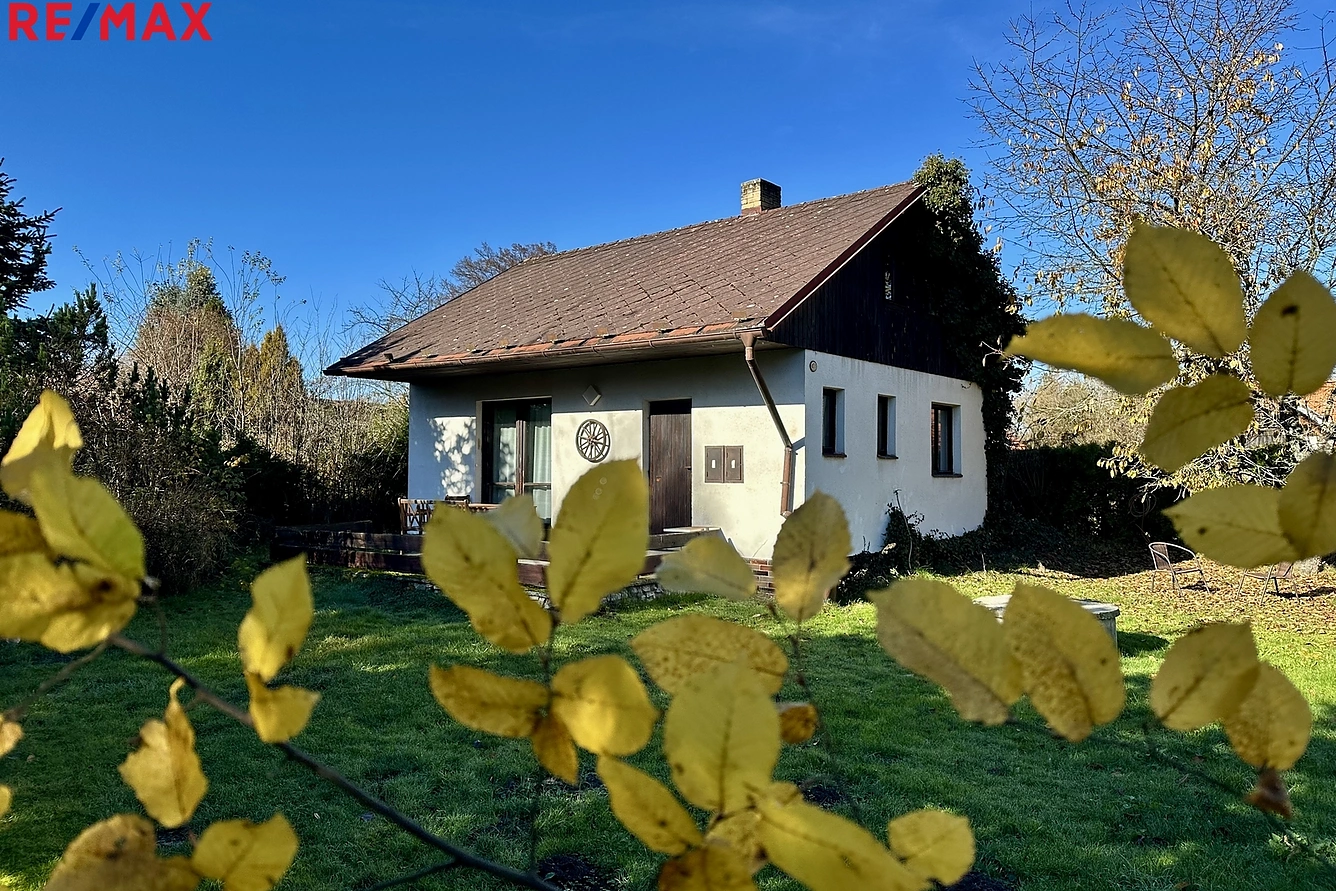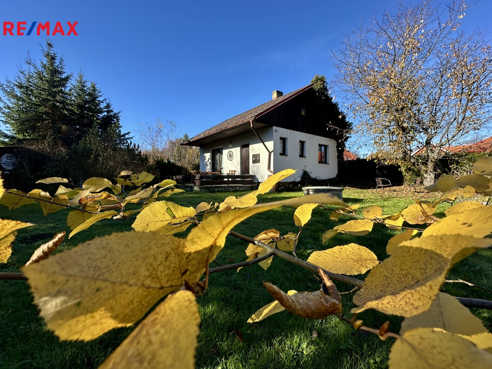 Prodej pěkné zděné chaty ( 50m2 ) na vlastním pozemku 527m2, ve Lhotě u Borovan přímo na malebné návsi kousek od kapličky.