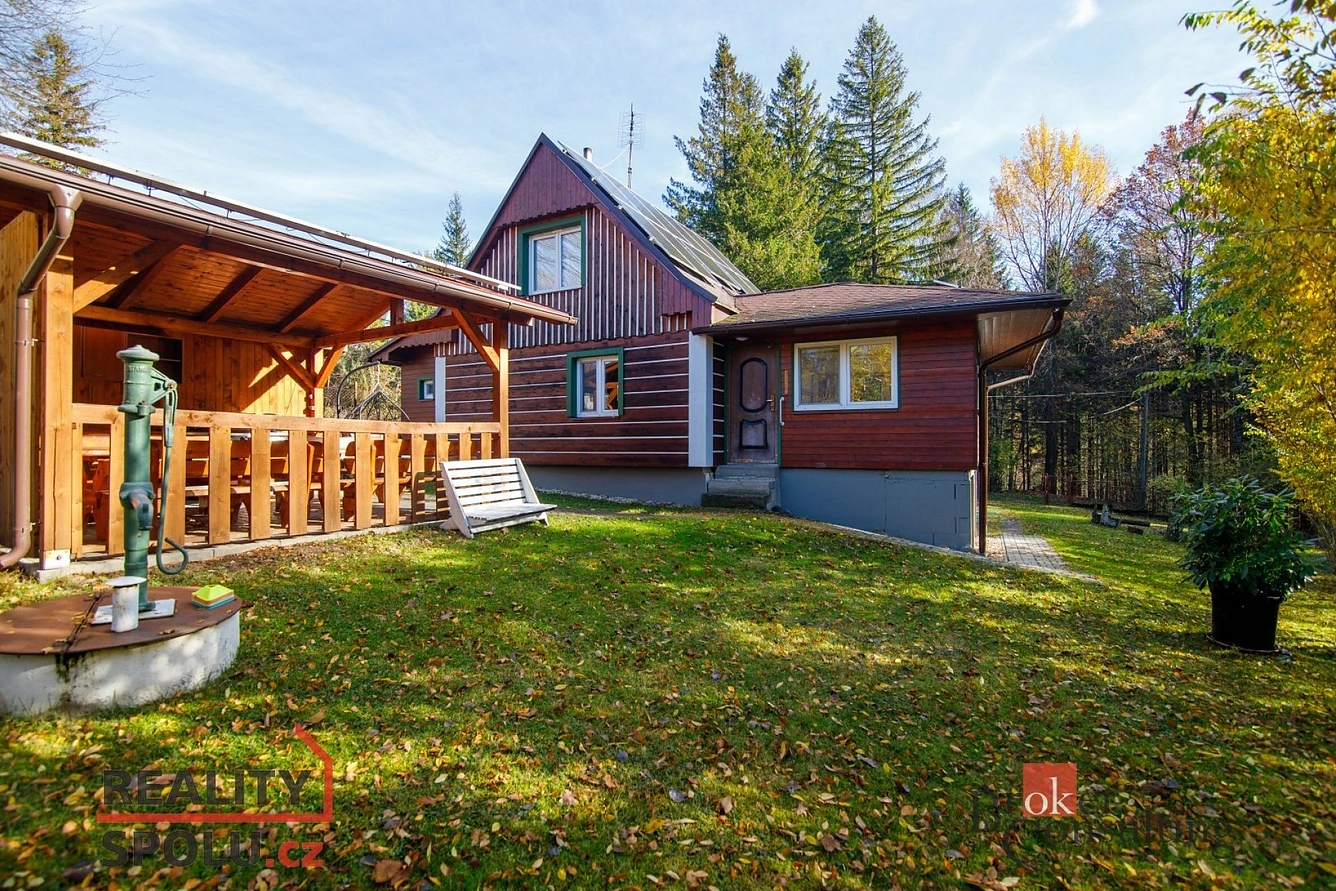 Nabízíme k prodeji plně vybavenou a technicky modernizovanou rekreační chatu v obci Morávka, v krásném prostředí Beskyd. Chata stojí na pozemku o velikosti 808 m2 a její užitná plocha je cca 61 m2 – s možností úpravy na více pokojů. Okolí chaty zajišťuje soukromí a bohatou přírodu. Technické údaje: • Fotovoltaická elektrárna 7,38 kWp (12/2024) – energetická soběstačnost, úsporný provoz. • Tepelné čerpadlo vzduch–vzduch Sinclair Kenyon (07/2024) – temperace od 8 °C, vytápění až do 30 °C, v létě chlazení. • Krb na dřevo – zásoba suchého palivového dřeva na 4–5 let v ceně. • Voda – studna + akumulační nádrž + dva bojlery Dražice (400 l). -Smlouva o připojení k obecnímu vodovodu již podepsána včetně věcných břemen. • Nová elektroinstalace v mědi + hlavní rozvaděč (10/2024). • Zabezpečovací systém Jablotron + kamery (03/2024) – vzdálený dohled přes aplikaci. • Dostupný 5G signál. • Stabilní internet od T-Mobile (pevný internet do zásuvky S). • Vhodné i pro home office v přírodě.Exteriér a vybavení : • Pergola s novým plynovým grilem, samostatná sauna, • Nářadí Fiskars + sekačka a strunovka Parkside (3× baterie + nabíječka). • Udržovaná zahrada – vhodná pro relaxaci i rodinné aktivity.Chata je plně vybavena a připravena k okamžitému užívání nebo také na investici k pronajímání. V okolí chaty se nachází venkovní koupaliště včetně restaurací. Pro více informací a domluvení prohlídky nás kontaktujte na naši bezplatné lince.