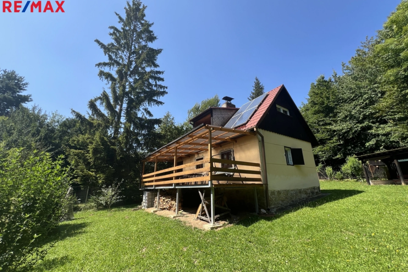 Technické informace: zděné přízemí, podkroví je montované dřevěné, střecha je z vlnitého plechu (10 let) s parotěsnou fólií a tepelnou izolací, nová přípojka elektřiny (4 roky), rozvody elektřiny (15 let), na střeše jsou solární panely, které je potřeba zprovoznit.