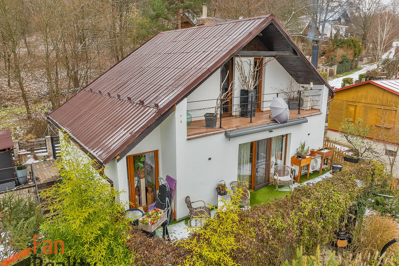 Nabízíme k prodeji exkluzivní celoročně obývatelnou chatu, nacházející se v malebném místě ve svažitém jihozápadně orientovaném pozemku s parkovými úpravami, v obci Petrov v části Bohuliby. Tato zděná stavba s dispozicí 3+kk s koupelnou v přízemí s obytným podkrovím propojeným kovovým točitým schodištěm a ateliérem 1+kk s vlastním sociálním zařízením v suterénu, má celkovou užitnou plochou 125 m² se zastavěnou plochou 84 m².
