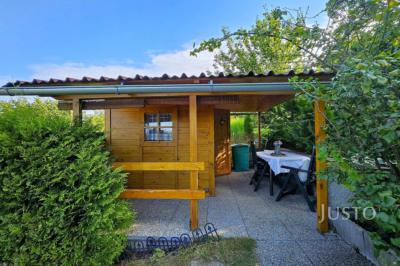 Krásná dřevěná chatička se zastřešenou terasou a výhledem na město Písek nabízí prostor pro odpočinek. Do chaty je přivedena elektřina. Voda je na pozemku ze společného zdroje, který je k dispozici v zahrádkářské sezóně. Chata je akorát tak velká, abyste si v ní mohli připravit jídlo, případně přespat.