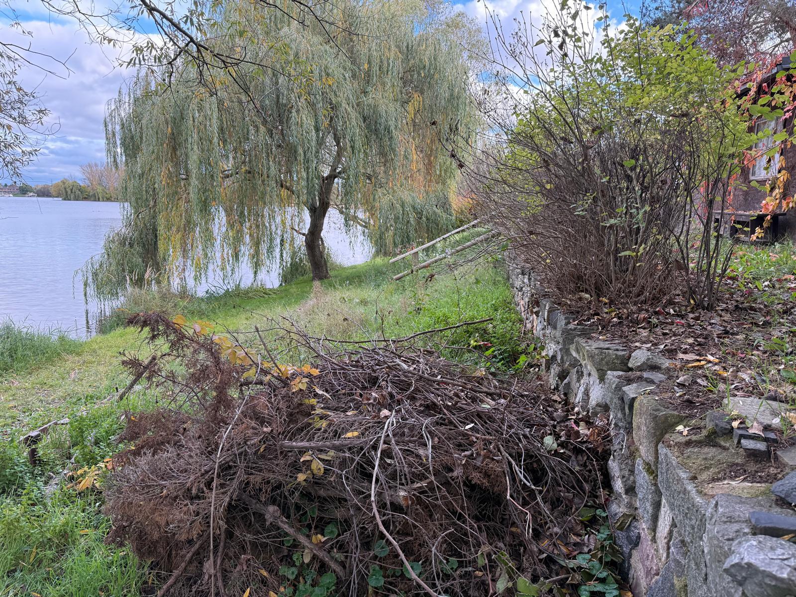 K zahrádce se dostanete po obecním pozemku. Ten je majiteli nemovitosti od obce pronajímán za cenu 6 500 Kč / rok. Pozemek je terasovitý o vícero úrovních. Na jedné úrovni najdete rybářskou chatu a na druhé potom maringotku. Dole u vody je dostatek prostoru pro volnočasové rybaření. Na pozemku naleznete také suchou toaletu. Součástí prodeje je veškeré vybavení, a to včetně menší loďky.