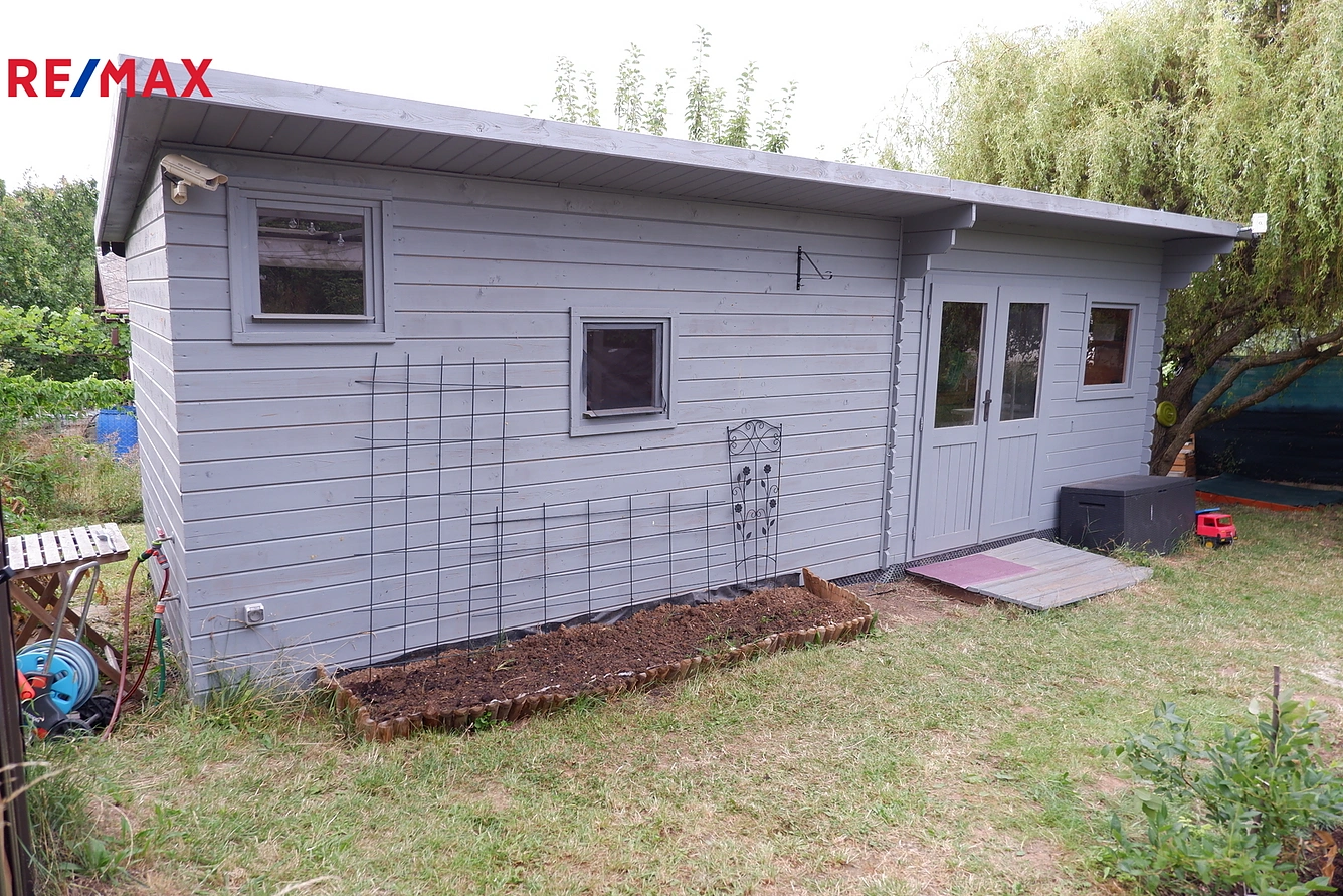 Dále zde najdete zahradní domek pro uložení nářadí a vybavení.