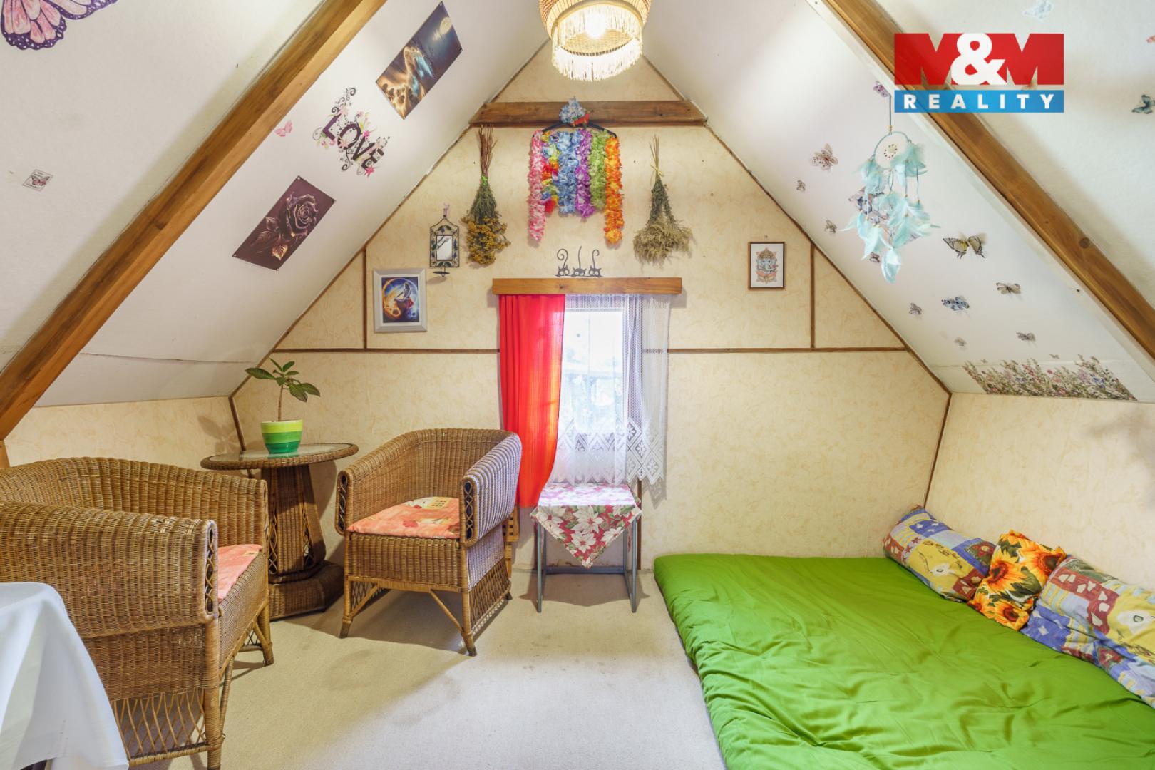 Nabízíme k prodeji chatu v oblíbené lokalitě Tušimice u Kadaně. Tato samostatně stojící nemovitost je ideální volbou pro milovníky klidu a přírody. Chata disponuje terasou, předsíní, obývacím pokojem a obytným podkrovím. Součástí je dílna a menší sklep. K chatě náleží pozemek o rozloze 698 m², což poskytuje dostatek prostoru pro venkovní aktivity či zahradničení. Tato nemovitost je skvělou investicí pro ty, kdo hledají klidné místo k rekreaci nebo jako základnu pro objevování okolní přírody. Neváhejte a domluvte si prohlídku ještě dnes. Financování Vám rádi zajistíme vlastním hypocentrem.