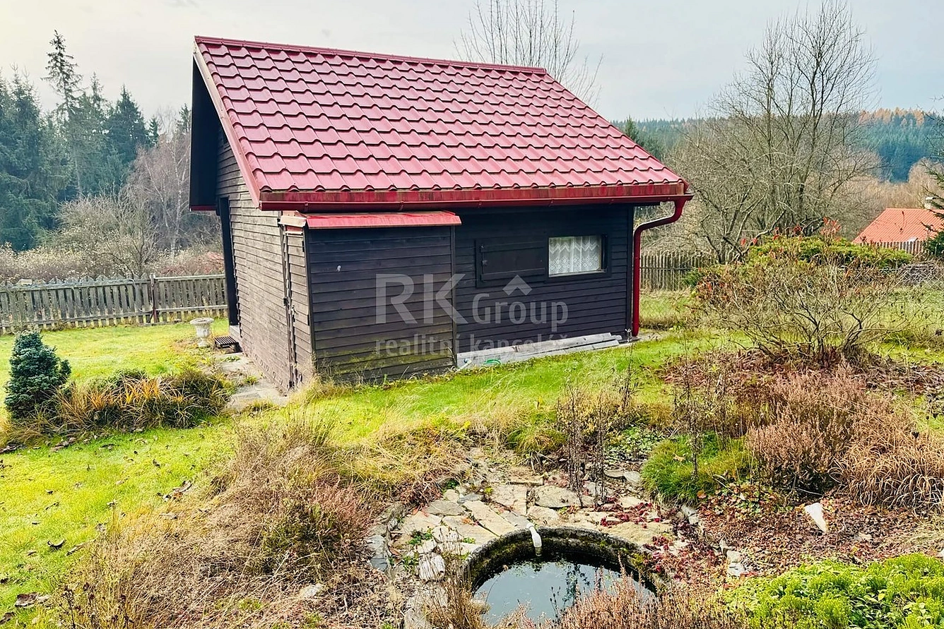 Jedná se o dřevěnou chatu se sedlovou střechou. V prvním nadzemním podlaží je z boční strany toaleta, zastřešená terasa, pokoj s kuchyňkou a vlez do podkroví, kde je velká manželská postel. Chata má novou plechovou střechu včetně nových klempířských prvků a je nově natřená. Nemovitost je napojena na elektrickou energii 220/380 V a obecní vodovod. Pozemek je dle platného územního plánu v zastavitelném území Plochy smíšené obytné. Zastavitelnost je max. 30% z celkové plochy.Příjezd k pozemku je bezproblémový po obecní asfaltové komunikaci. Na udržovaném pozemku se dále nachází jezírko, velký trvalkový záhon a několik okrasných a ovocných dřevin.Mariánské Lázně jsou vzdálené cca. 5km. Na okraji vesnice jsou autobusové zastávky směr Cheb a Mariánské Lázně. Pro více informací či sjednání prohlídky mě neváhejte kontaktovat.