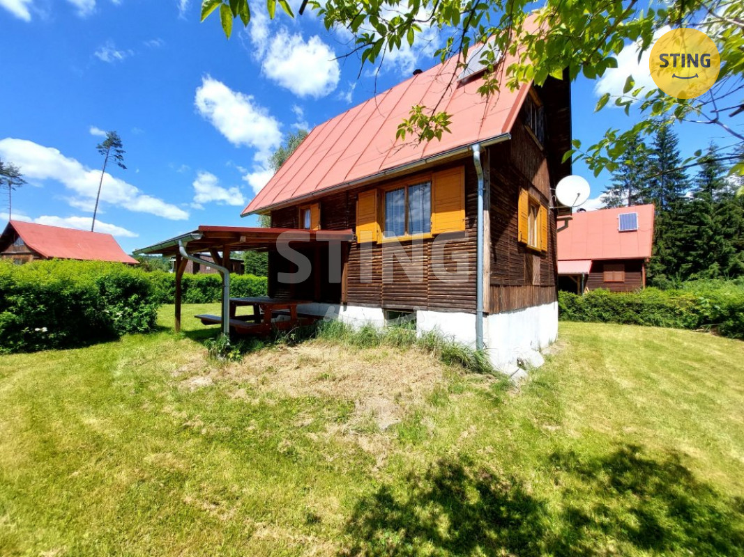 Chata disponuje obytným přízemím s kuchyňkou, špajzem, obývacím pokojem s krbem a toaletou. V podkroví jsou dvě místnosti vhodné pro spaní celé rodiny. Pod chatou je praktická garáž. U chaty je postavena pergola a venkovní krb – ideální místo pro letní posezení a grilování. Na hranici pozemku je k dispozici přípojka elektřiny, aktuálně je na střeše instalována sada solárních panelů (v současnosti odpojené, funkčnost je třeba ověřit), voda je brána z nedaleké studny využívané osadníky.