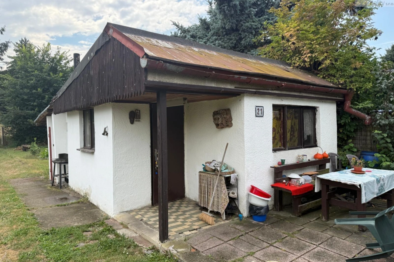 Na zahradě ve zděném domku je zavedena elektřina 220/380 V a k dispozici je celoročně voda.