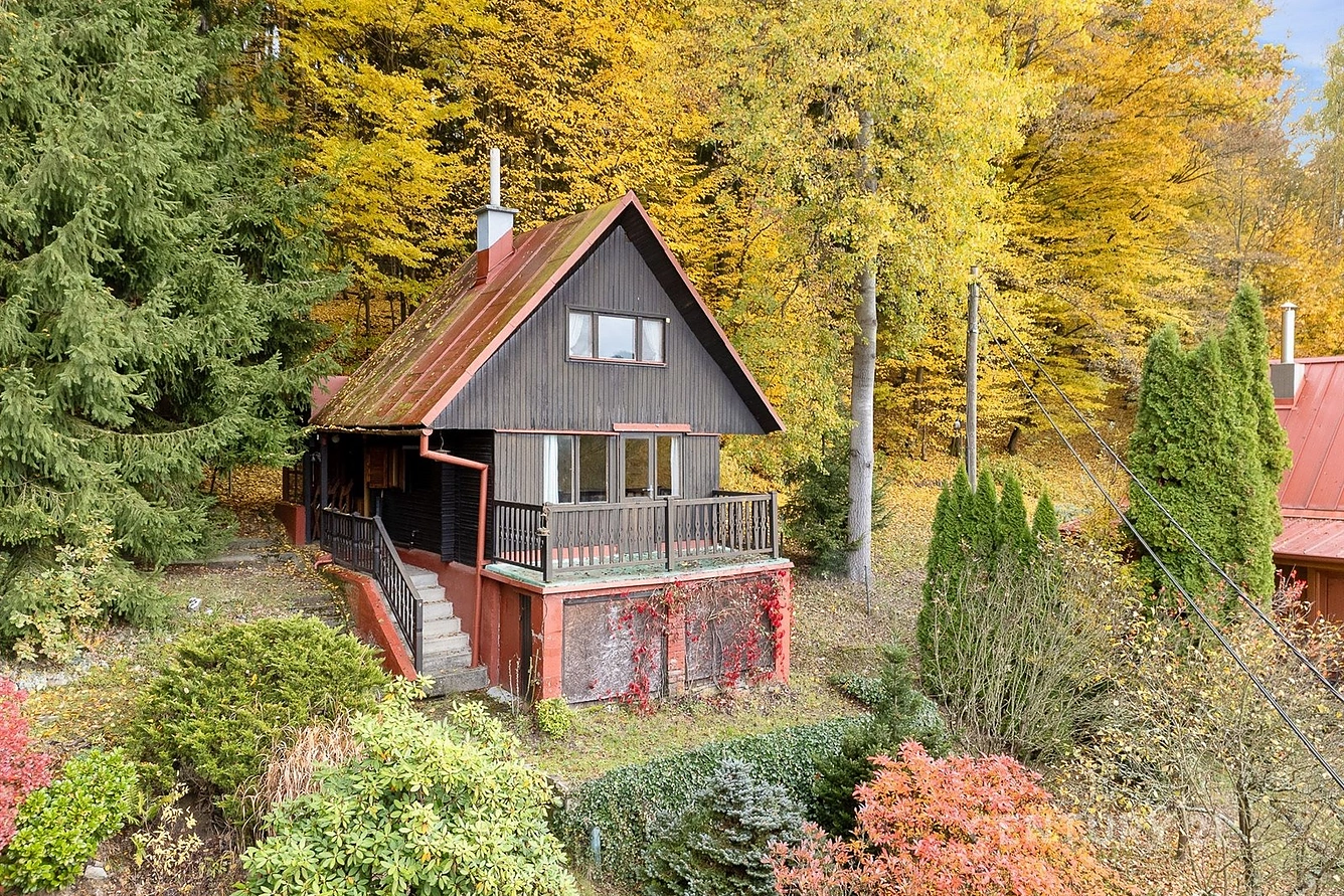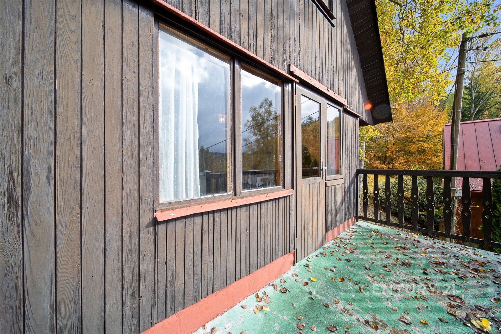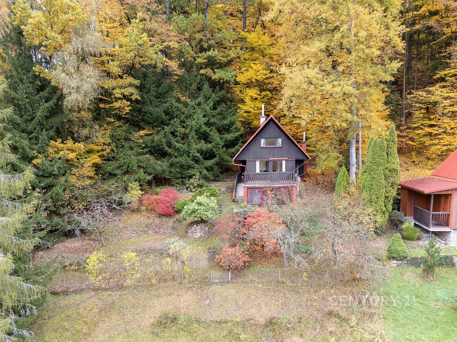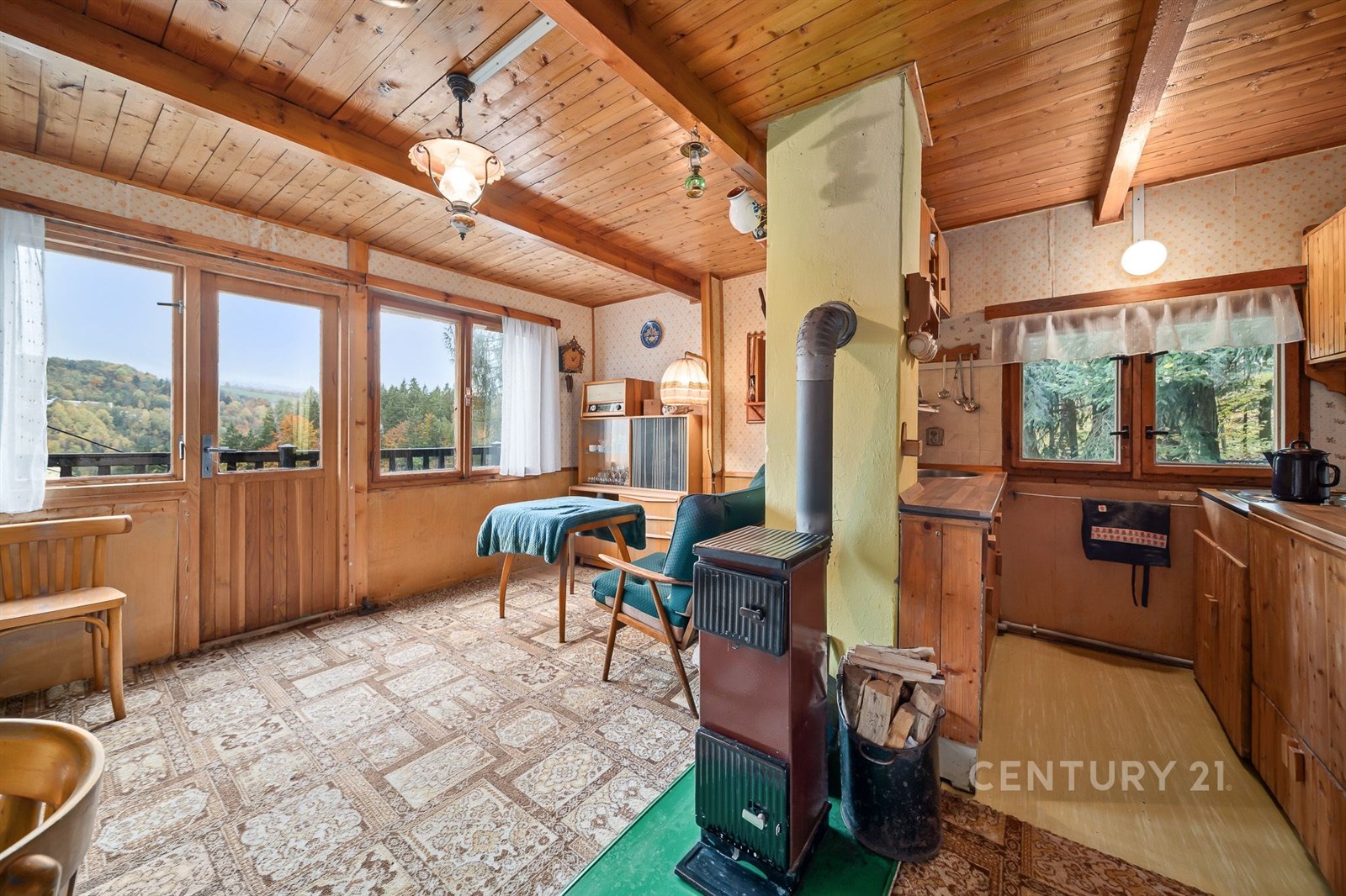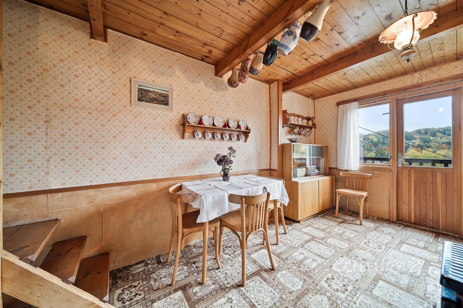 Chata nabízí přibližně 45 m2 útulného prostoru a leží na pozemku o rozloze 393 m2. Je dvoupodlažní, v dobrém stavu – tak akorát připravená na to, aby si ji nový majitel mohl upravit podle svých představ a přitom zachoval její původní kouzlo. Z malé terasy, 6,3 m2, se otevírá výhled na okolní kopce a lesy – pohled, který se nikdy neokouká.