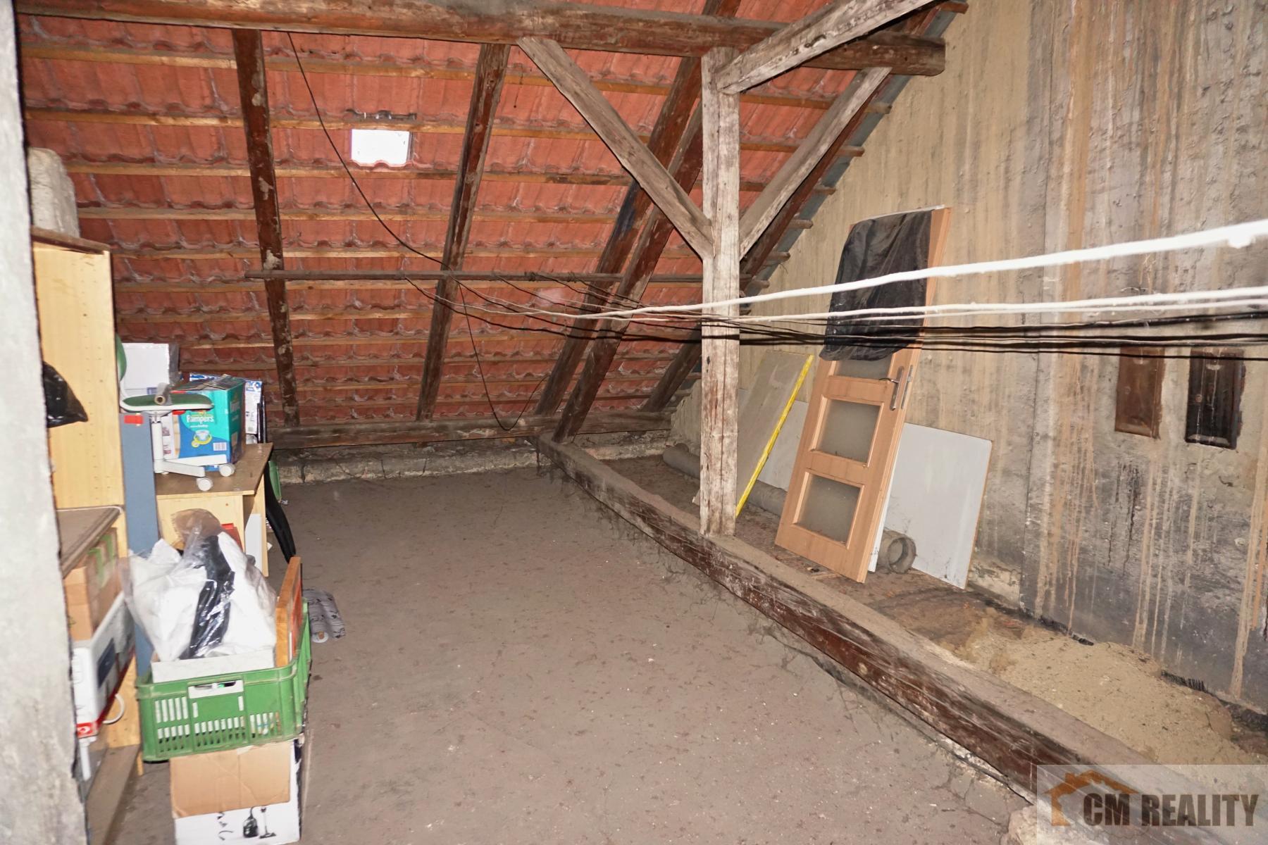 V podkroví se nachází rozsáhlý půdní prostor vhodný pro výstavbu další jednotky. Celá nemovitost je podsklepená a sklepní prostory mají 80 m2 a jsou rozděleny na jednotlivé kóje.