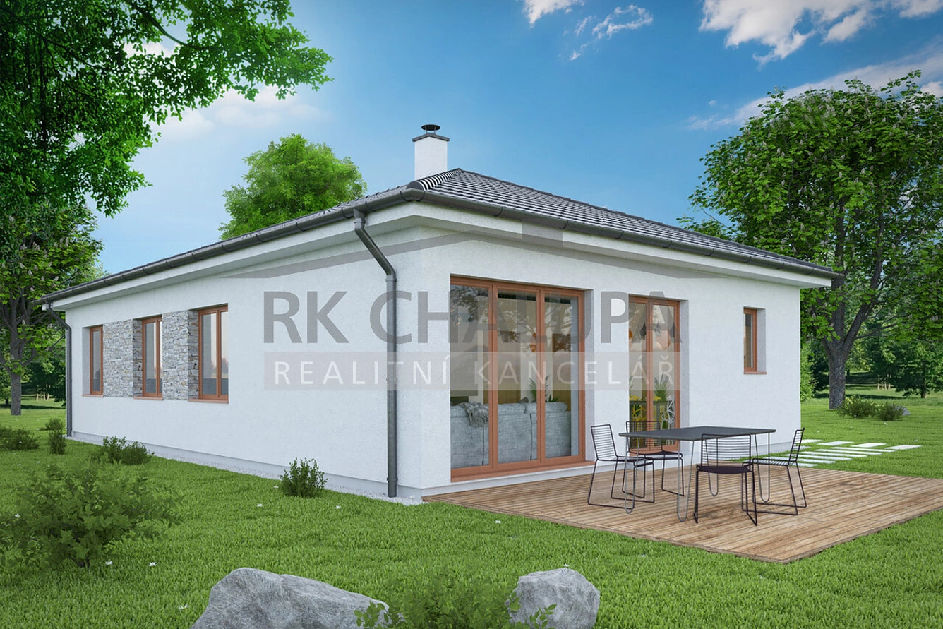 Nabízíme zajištění výstavby zděného domu, bungalovu, en. třídy B, na vašem pozemku pro lokalitu České Budějovice a okolí do cca 20 km. Dům o dispozici 4+kk, zastavěná plocha 114 m2, tj. vstup do zádveří, za kterým je situována komunikační chodba se vstupy do jednotlivých místností: jídelna, kuchyně se spíží, obývací pokoj, ložnice, dva dětské pokoje, koupelna, WC, technická místnost. V obývacím pokoji komín pro krb, francouzské okno umožňující pohodlný vstup na terasu, případně na zahradu. V chodbě je výlez na půdu, k úložnému prostoru, pochozí stav. Okna v provedení trojsklo. Součástí ceny i kompletní projektová dokumentace, vyřízení st. povolení a ohlášení. Domy předáváme po řádné kolaudaci - souhlasu s užíváním. Cena uváděná bez hodnoty pozemku. V případě topného systému elektrokotlem sleva 30.000 Kč. Vyztužení vazníků k přípravě fotovoltaiky možné. Zajistíme Vám prezentaci typových domů. Zrealizujeme i Váš individuální projekt. Videoprohlídky zhlédnete na našich webových stránkách.