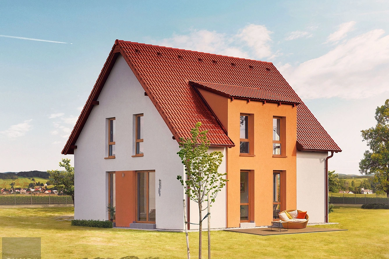 Nízkoenergetický rodinný dům IDEAL je určen pro pohodlný život 4 – 6 členné rodiny. Dispozice 5+1 nabízí podlahovou plochu 132,3 m2. Bohatý vnitřní prostor zahrnuje v přízemí obývací pokoj s prakticky odděleným kuchyňským koutem a v patře ložnici a 2 dětské pokoje. Součástí rodinného domu je šatna, technická místnost, samostatné WC a samostatná koupelna. Vnitřní dispozice i vnější podobu si můžete vybrat z desítek variant uspořádání a designu. Dům bude za uvedenou cenu kompletně dokončen a vybaven (včetně krbového komínu) a připraven k okamžitému nastěhování. Vnější i vnitřní provedení domu provedeme dle Vašeho individuálního výběru (podl. krytiny, obklady, dlažby, sanitární keramika, vnější i vnitřní dveře a okna, barva a provedení fasády a střešní krytiny apod.) Dům možno doplnit balkonem, terasou, pergolou, garážovým stáním nebo garáží. V ceně domu není zahrnuta spodní stavba. Najdeme vám nebo prověříme pozemek pro výstavbu. Zajistíme nejvýhodnější hypotéku.Výstavba na klíč za pouhých 4 – 5 měsíců. Unikátní masivní technologie se zárukou 50 let na konstrukční systém. Záruka nejnižší ceny a jistota 100 % kvality – za 35 let potvrzeno více než 8500 domy v ČR a Německu.Těšíme se na Vaši návštěvu.