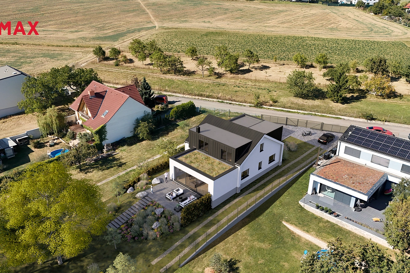 Na pozemek je již vydáno platné stavební povolení na výstavbu moderního rodinného domu o dispozici 6+kk, s garáží a celkovou užitnou plochou cca 255 m², z toho obytná část přibližně 180 m². Cena zahrnuje výstavbu hrubé stavby, která bude realizována na základě konkrétní dohody. Součástí hrubé stavby jsou základy, hydroizolace, vodorovné a svislé konstrukce, zastřešení včetně klempířských a zámečnických prvků. Dokončení domu je možné podle přiložených vizualizací.