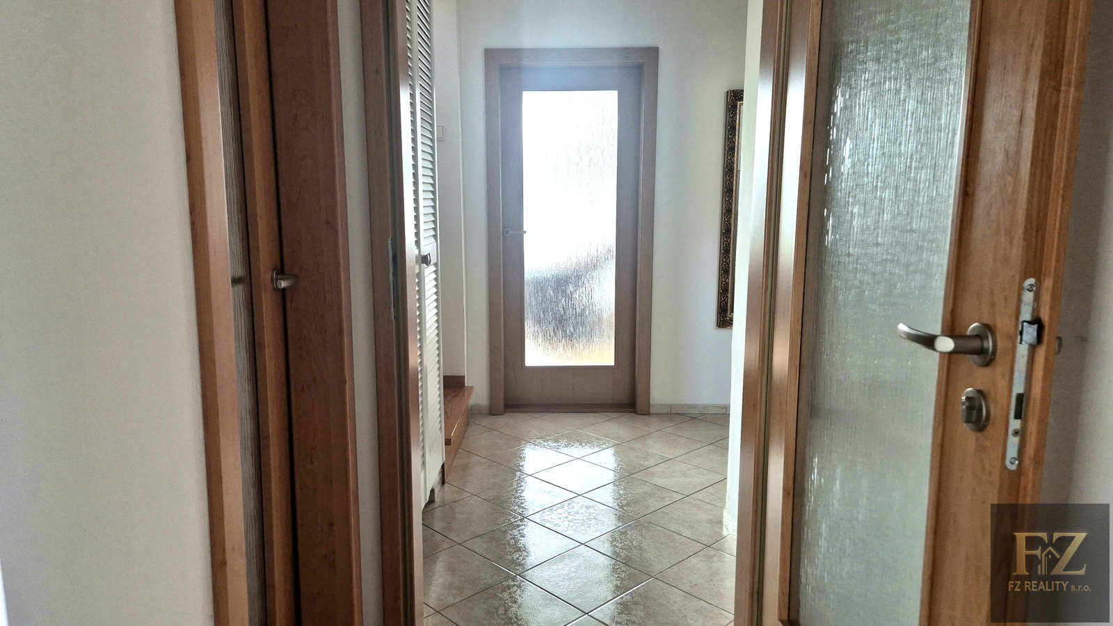 V patře se nachází ložnice se vstupem na prostornou lodžii, koupelna se sprchovým koutem i vanou, dva pokoje a šatna s možností využití jako další pokoj či pracovna.