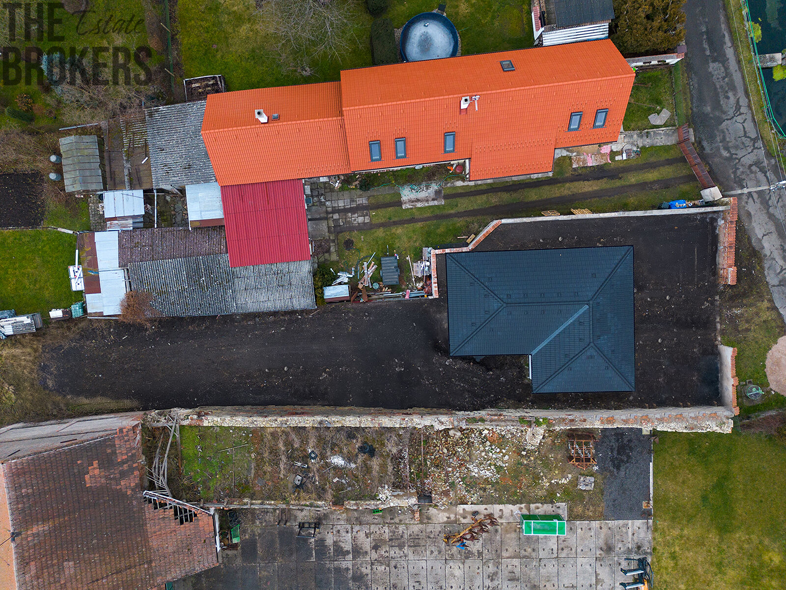 Půda domu je zateplená, pochozí a nabízí dalších 35 m² k využití. Nachází se zde také technická místnost s nezbytnými technologiemi pro chod domácnosti a dostatek úložného prostoru pro vaše potřeby. Před domem je k dispozici parkování pro 2 automobily s možností budoucí výstavby garáže.