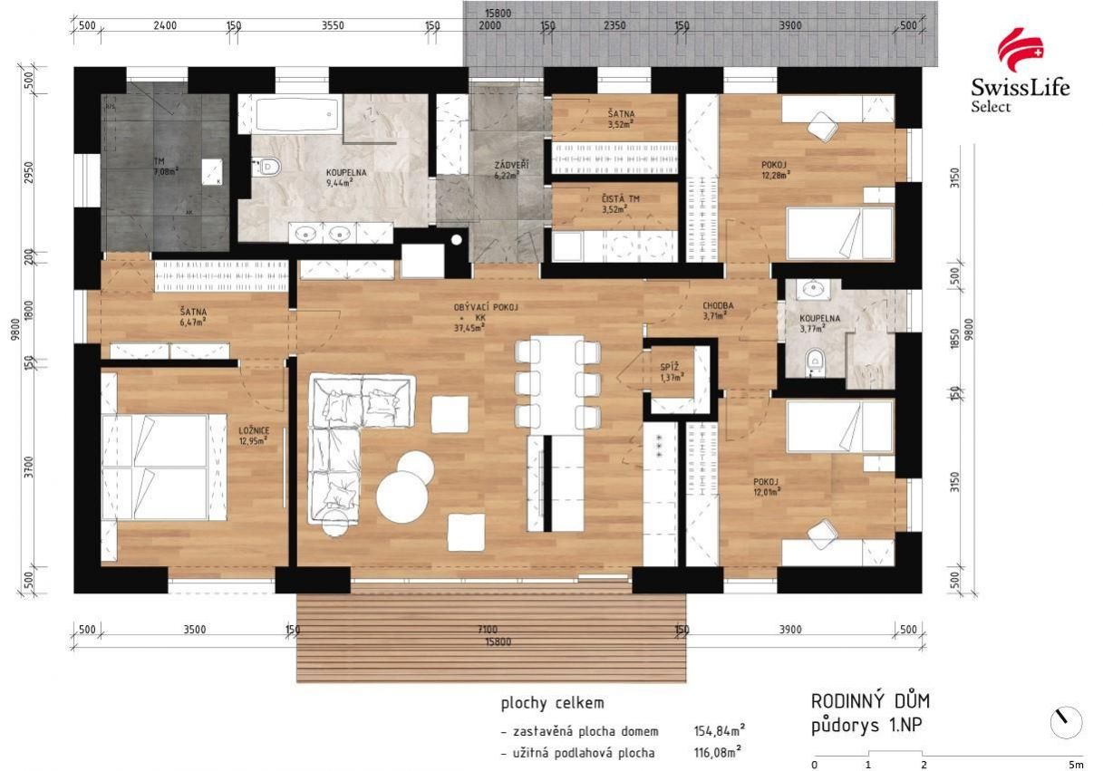 Novostavba bude dokončena na klíč, což znamená, že dům bude připraven k okamžitému nastěhování. Nemusíte se starat o žádné dodatečné úpravy nebo rekonstrukce.