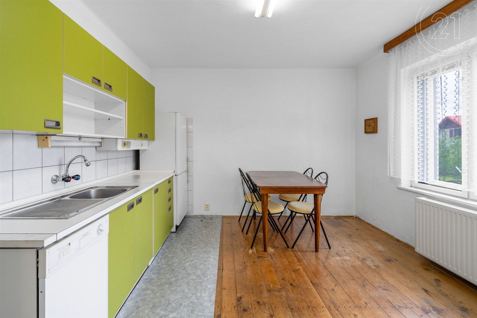 V exkluzivním zastoupení majitele Vám nabízím na prodej rodinný dům v městečku Brušperk na Frýdeckomístecku, v malebné lokalitě v blízkosti podhůří Beskyd. Celková plocha pozemku je 1240 m2, zastavěná plocha činí 302 m2. Dům má dvě nadzemní podlaží a je kompletně podsklepený. V přízemí se nachází kuchyně, obývací pokoj, komora a toaleta. V prvním patře jsou dva průchozí pokoje a koupelna. Z chodby je vstup na malý balkónek a také vstup na střechu garáže. Dům postaven v 50. letech, je cihlový, nezateplený. Původní dřevěná špaletová okna, podlahy – parkety a dřevo, původní rozvody. Střecha plochá, pozink a lepenka, oprava proběhla v roce 2024. K domu přiléhá garáž o velikosti 63 m2, původně postavená pro dva nákladní vozy, později využívaná jako dílna. Do domu jsou přivedeny veškeré inženýrské sítě. Celý pozemek je oplocený, na zahradě, která má plochu více než 900 m2 jsou ovocné stromy, v přední části jehličnany a keře. Za domem je dřevník a jímka na dešťovou vodu. Na rekonstrukci a opravu domu lze využít dotační programy (dotace na výměnu zdroje tepla, zateplení, výměnu oken, dveří a další). Brušperk leží v nádherné krajině na dohled od Beskyd, vedou zde cyklostezky, na okraji města je vodní nádrž s pláží, stánky a odpočinkovou plochou. Pro další informace mě prosím kontaktujte.