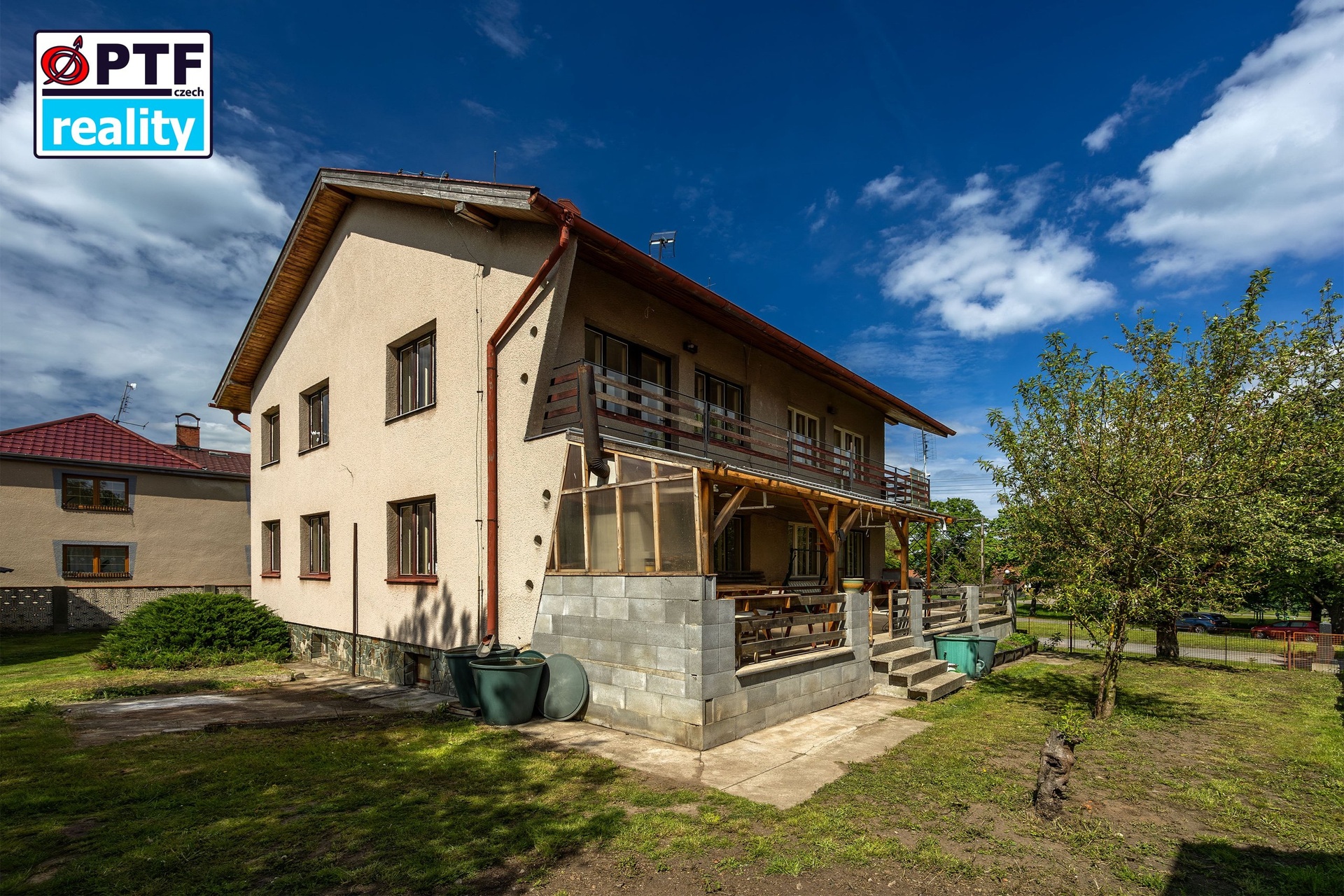 Dvougenerační rodinné sídlo + hospodářské zázemí + ovocná zahradaRadouš u Hostomic (Berounsko)Proč vás tenhle dům zaujme na první pohledDvě plnohodnotné bytové jednotky 3 + 1 – ideální pro velkou rodinu, dvě generace nebo kombinaci bydlení a pronájmu.Rozsáhlé hospodářské objekty (stodoly, dílna, chlévy, vejminek) – perfektní pro drobnou výrobu, řemeslo, e-shop s logistikou, chov zvířat či sklad.Oplocený pozemek 2 907 m2 s ovocnou zahradou a soukromím .Terasa + balkon + dvě lodžie – vždy najdete slunce i stín.Kompletně podsklepeno: prádelna, sušárna, kotelna, uhelna a dva velké sklepy.Inženýrské sítě (voda, kanalizace, elektřina 230/400 V), kotel na tuhá paliva + funkční krb v patře.Přehled plochČást domu Obytná plocha ExteriéryPřízemí (byt 1) 97 m2 terasa 20 m2, lodžie 7,9 m21. patro (byt 2) 97 m2 balkon 10 m2, lodžie 7,9 m2Suterén 97 m2 technického zázemí Celkem interiér 291 m2 ? 46 m2 venkovních plochZastavěná plocha hlavní budovy 175 m2, navazující hospodářské stavby 582 m2.Jak můžete nemovitost využítRodinné sídlo – dvě samostatné jednotky dají soukromí rodičům i dětem.Bydlení + podnikání – skloubení kanceláře, dílny či drobné výroby se zázemím doma.Agroturistika / minifarma – ovocné stromy, stodola a chlévy přímo vyzývají k chovu zvířat nebo zážitkovému ubytování.Investice – po rekonstrukci vzniknou 3–4 nájemní jednotky, které doplní výnos z pronájmu skladů či dílny.Technické info & vybaveníTopení: kotel na tuhá paliva, rozvody v mědi; el. bojler na ohřev vody.Dřevěná dvojitá okna, masivní stropy, betonové schodiště se světlíkem.Terasa: zastřešené venkovní posezení, krb, udírna, prostor pro velký stůl i gril.Přístup zpevněnou obecní komunikací, parkování na dvoře i v hospodářské části.Lokalita RadoušKlidná podbrdská vesnička obklopená přírodou, 5 minut autem do Hostomic (občanská vybavenost, škola, sportoviště), 15 minut na dálnici D5 a 35 minut do Prahy-Zličína. Ideální rovnováha mezi soukromím, přírodou a dobrou dostupností.