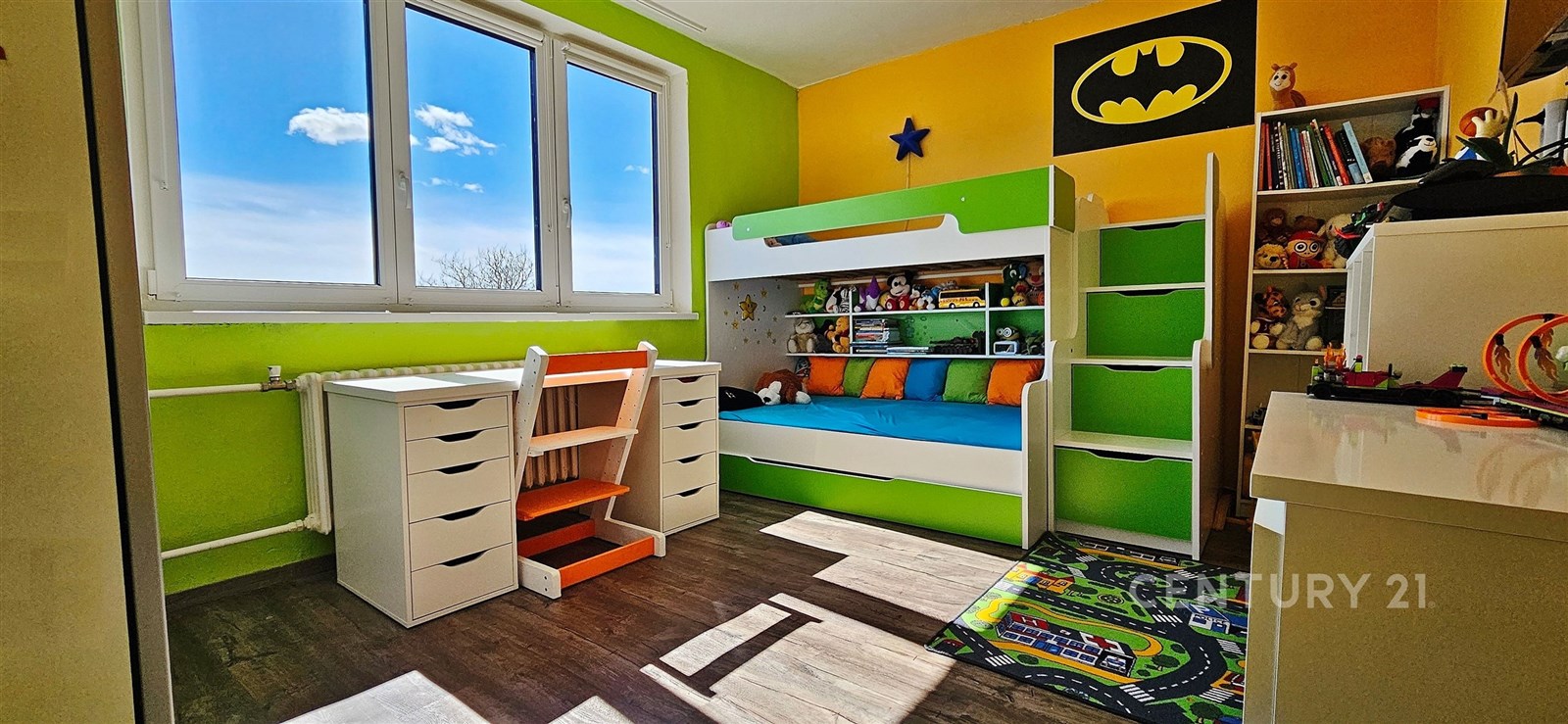 Druhé patro tvoří prostorná ložnice cca 20 m2 s balkonem do ulice, dětský pokoj 18 m2, pokoj 2 cca 10 m2 a stejně velká koupelna.