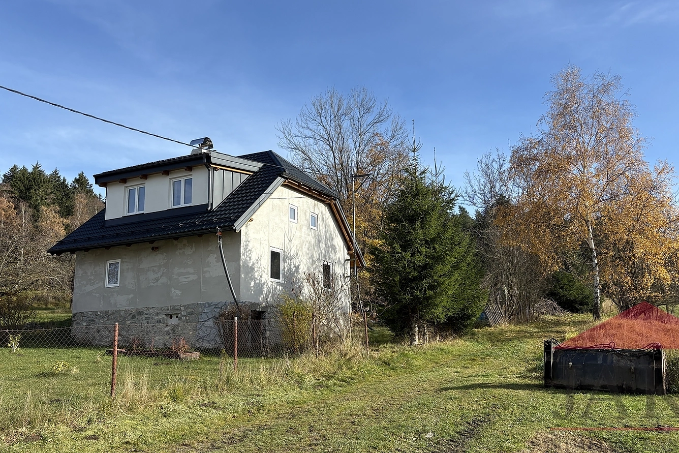 Nabízíme na prodej podsklepenou původní šumavskou chalupu/dům (5+kk; podl. pl: 104 m2) v započaté zevrubné rekonstrukci (k dokončení pouze pohledové prvky) se zahradou 272 m2, stojící na klidném okraji (poslední dům) přímo pod lesem s výhledem v malebné šumavské vesničce Odolenov, ležící v nad-inverzní výšce 680 m.n.m., na západní straně hory Svatobor (845 m.n.m.) s rozhlednou a restaurací, nedaleko města Sušice 5 km.