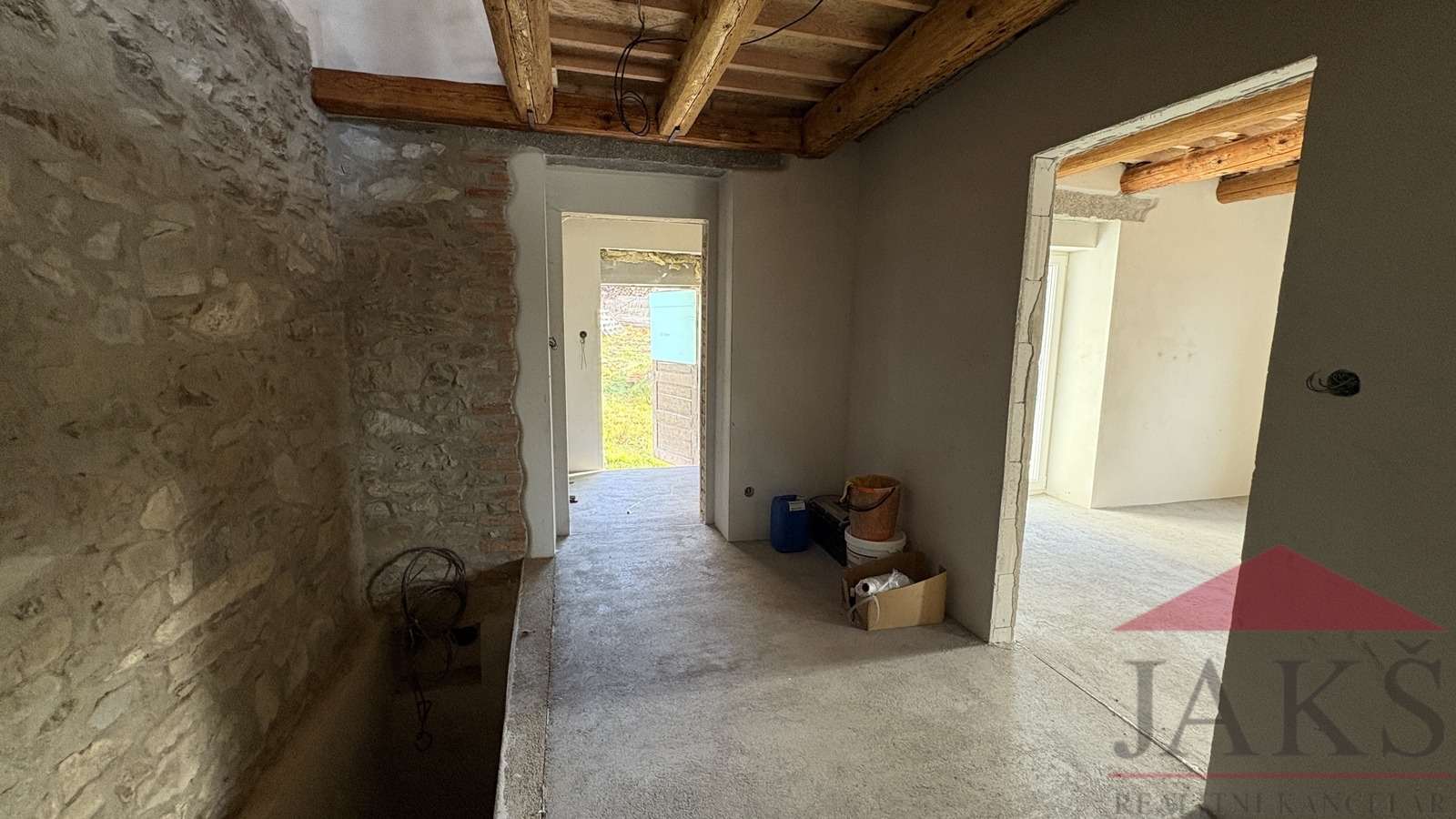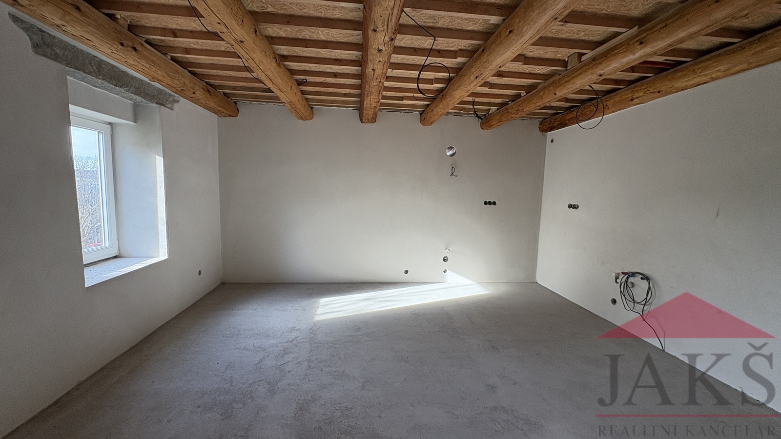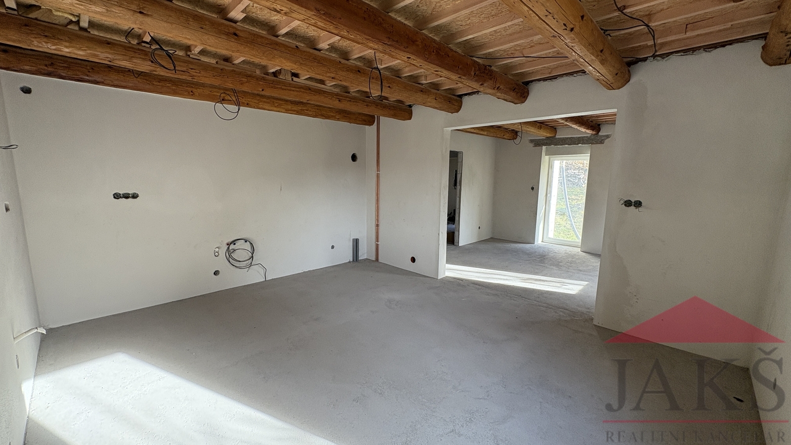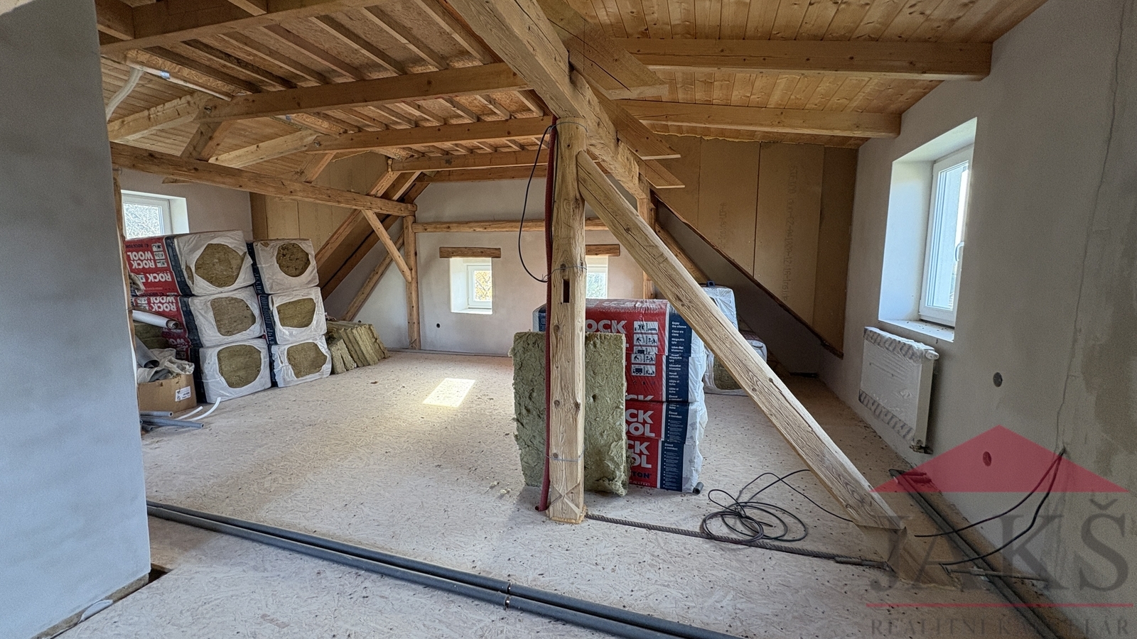 Započatá zevrubná rekonstrukce, přičemž je dokončený „obal“ a „střeva“ domu, jmenovitě: nová moderní dispozice 5+kk, střecha vč. klempířských prvků a částečně výměna krovů, vyvložkovaný nový komín, plastová okna 3-skla, strop vč. přiznaných pohledových trámů, podlahové topení v 1.NP a radiátory v podkroví vč. rozvodů v mědi, elektroinstalace vč. jističů, rozvody vody a odpadu v plastu, nová jímka, srovnané stěny vč. omítek, štuku a bílé výmalby, francouzské okno na budoucí terasu, srovnaná fasáda; k dokončení jsou pohledové prvky (podlahové krytiny; podhledy vč. izolace, která je v domě; příčky v podkroví, vnitřní dveře, sanita v koupelnách, osvětlení, kuch. linka...), schodiště, zdroj topení a terénní úpravy.