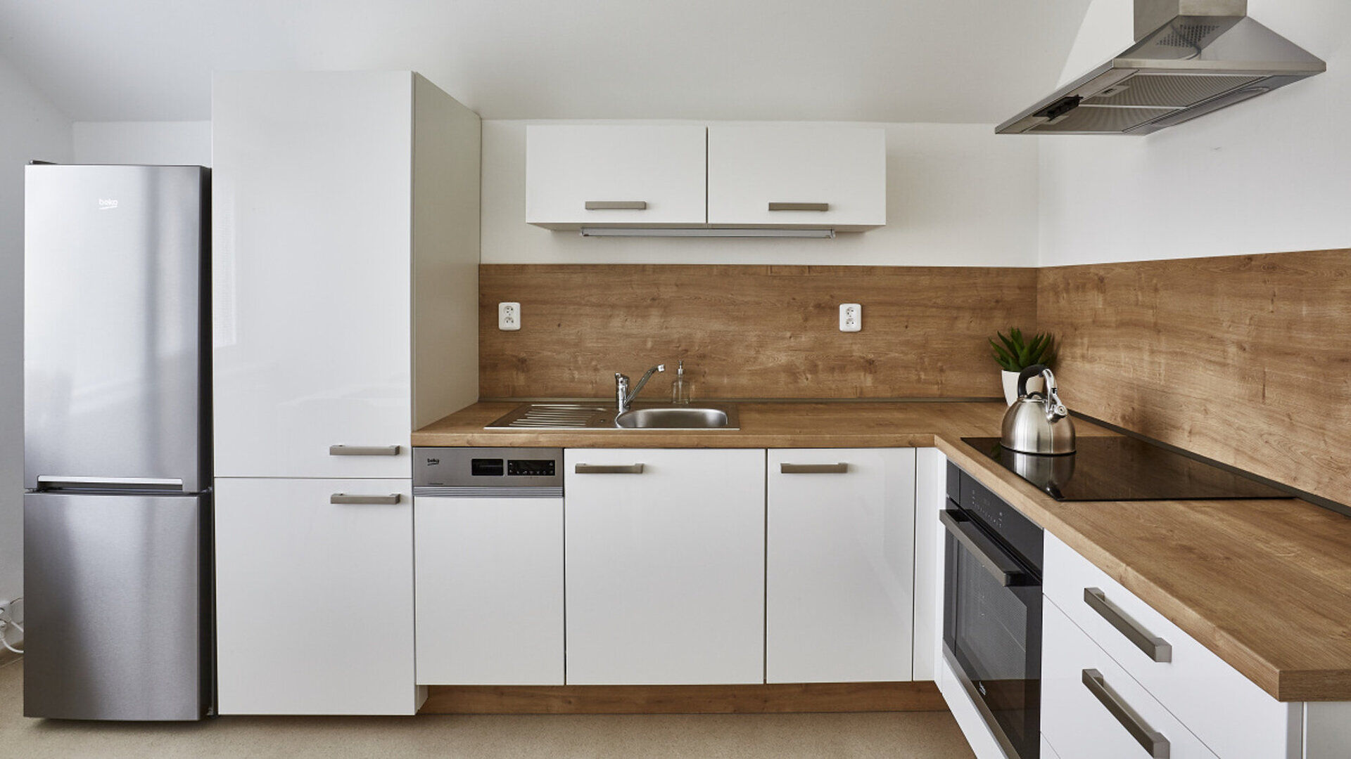 Přízemí: Prostorná hala s jídelním koutem navazuje na moderní kuchyni s luxusní kamennou deskou Technistone a špičkovými spotřebiči. Obývací pokoj s krbovými kamny láká k odpočinku, samostatná pracovna nabízí klid pro práci. Technická místnost má sprchový kout a prostor pro pračku a sušičku.