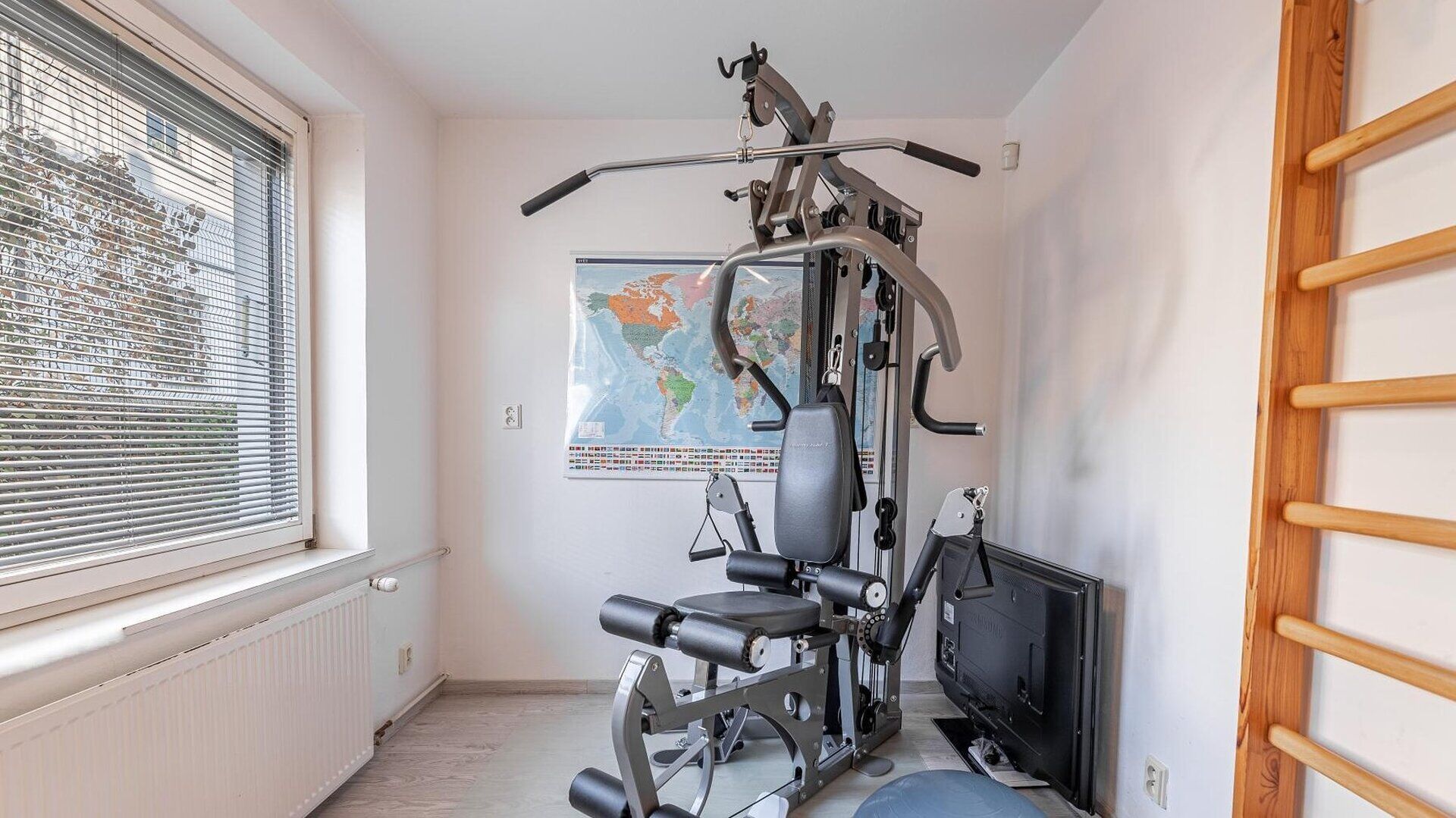 Přízemí: Prostorná dvojgaráž se skladovým prostorem, malá kuchyňka a samostatné WC. Je zde místnost zamýšlená jako soukromé wellness se sprchami, prostorem pro saunu a odpočívárnou - prostor pro relaxaci, domácí fitness nebo ateliér.