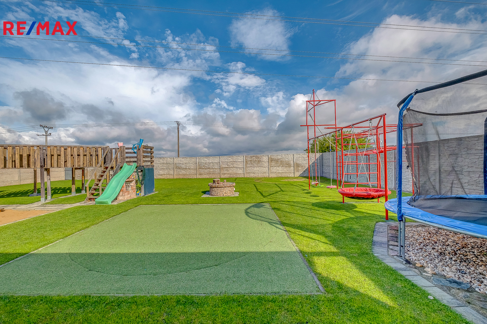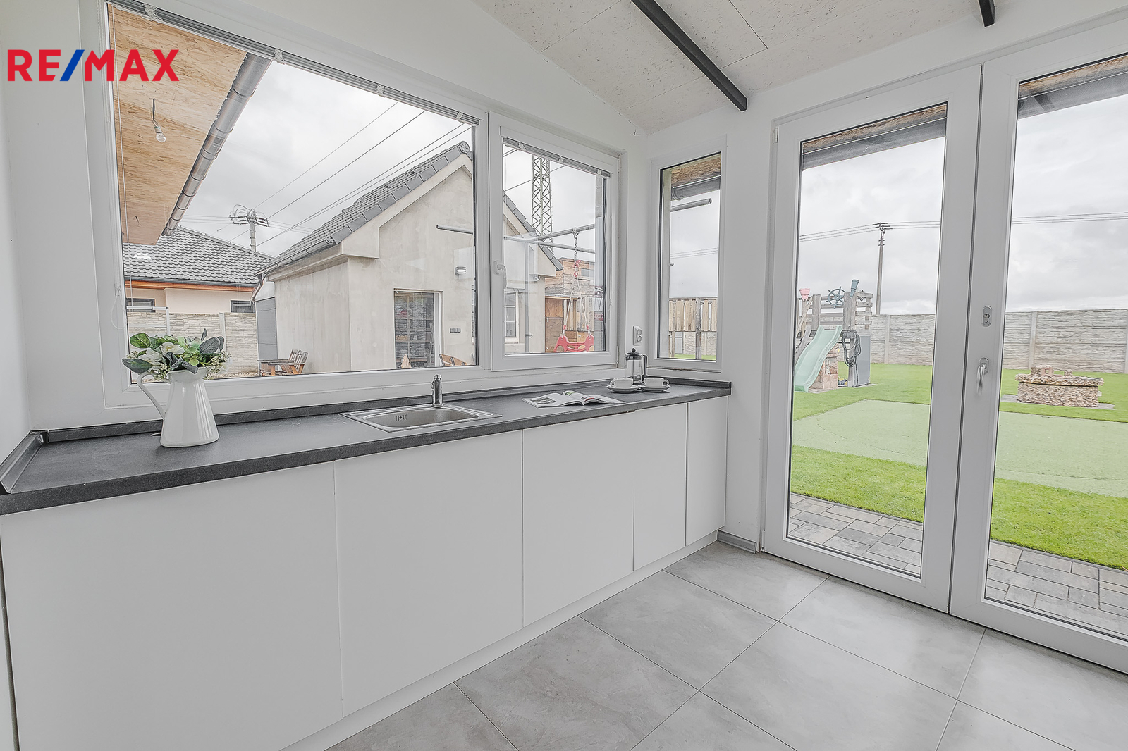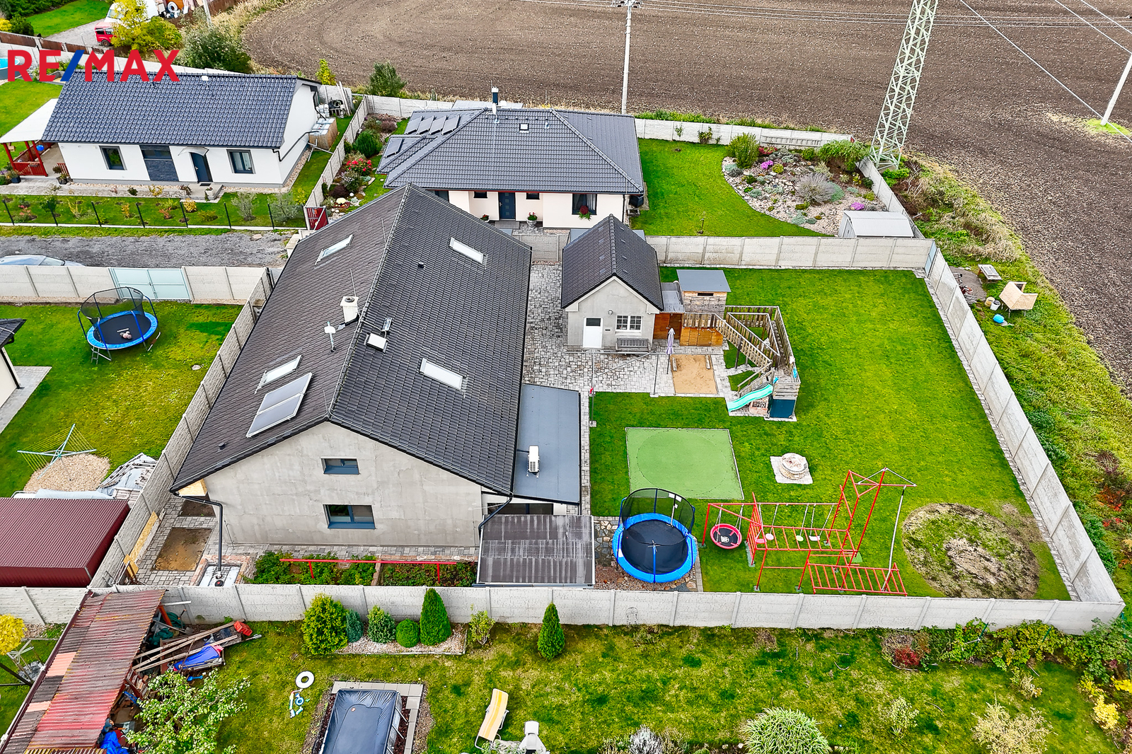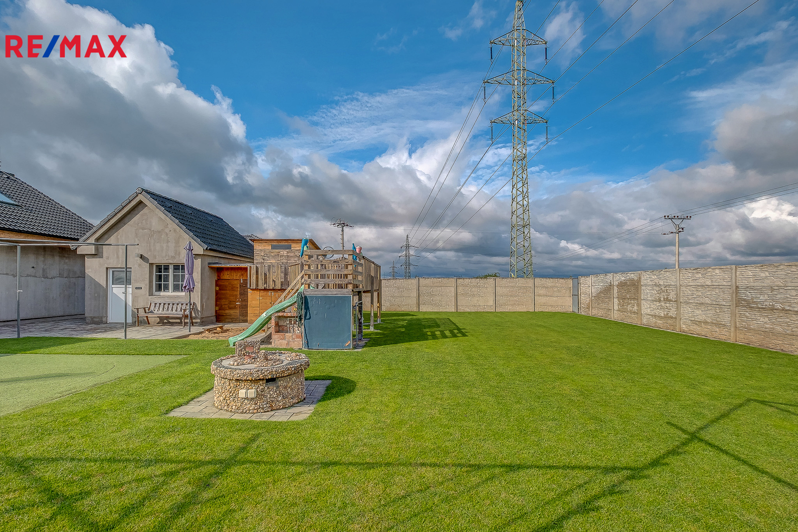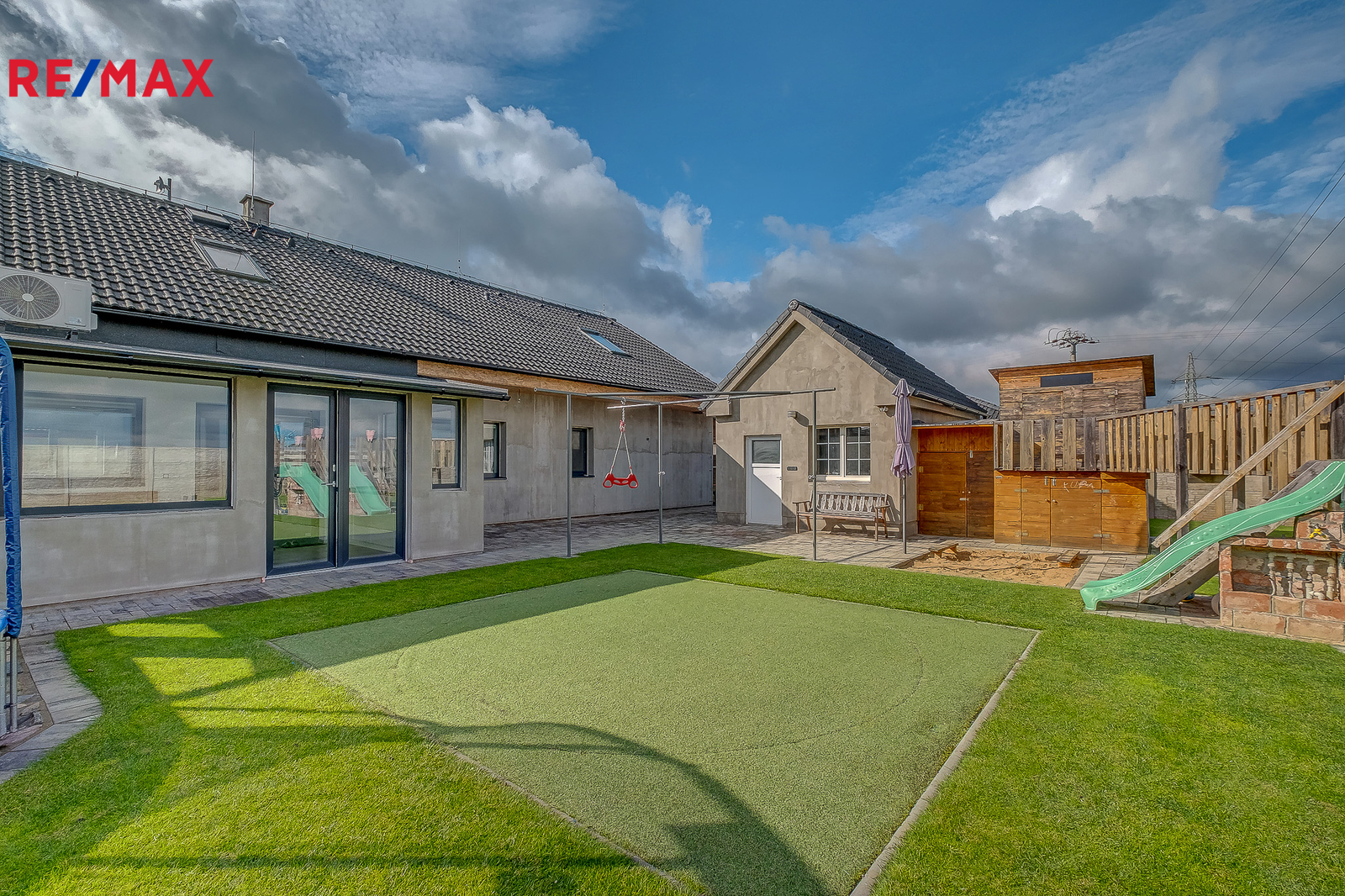 Interiér domu je prostorný, světlý a navržený s důrazem na pohodlí i funkčnost pro rodinu s dětmi. Zároveň umožňuje i mírné úpravy dispozice podle svého uvážení. Na pozemku dále najdeme garáž a také menší domek, který je také napojen na vodu i odpady. V současnosti slouží jako dílna, avšak díky svému vybavení nabízí široké možnosti využití – může se proměnit v útulný pokoj pro hosty, domácí pracovnu či ateliér. Rozlehlá zahrada poskytuje dostatek prostoru pro odpočinek, rodinné aktivity, zahradničení i společná setkání.