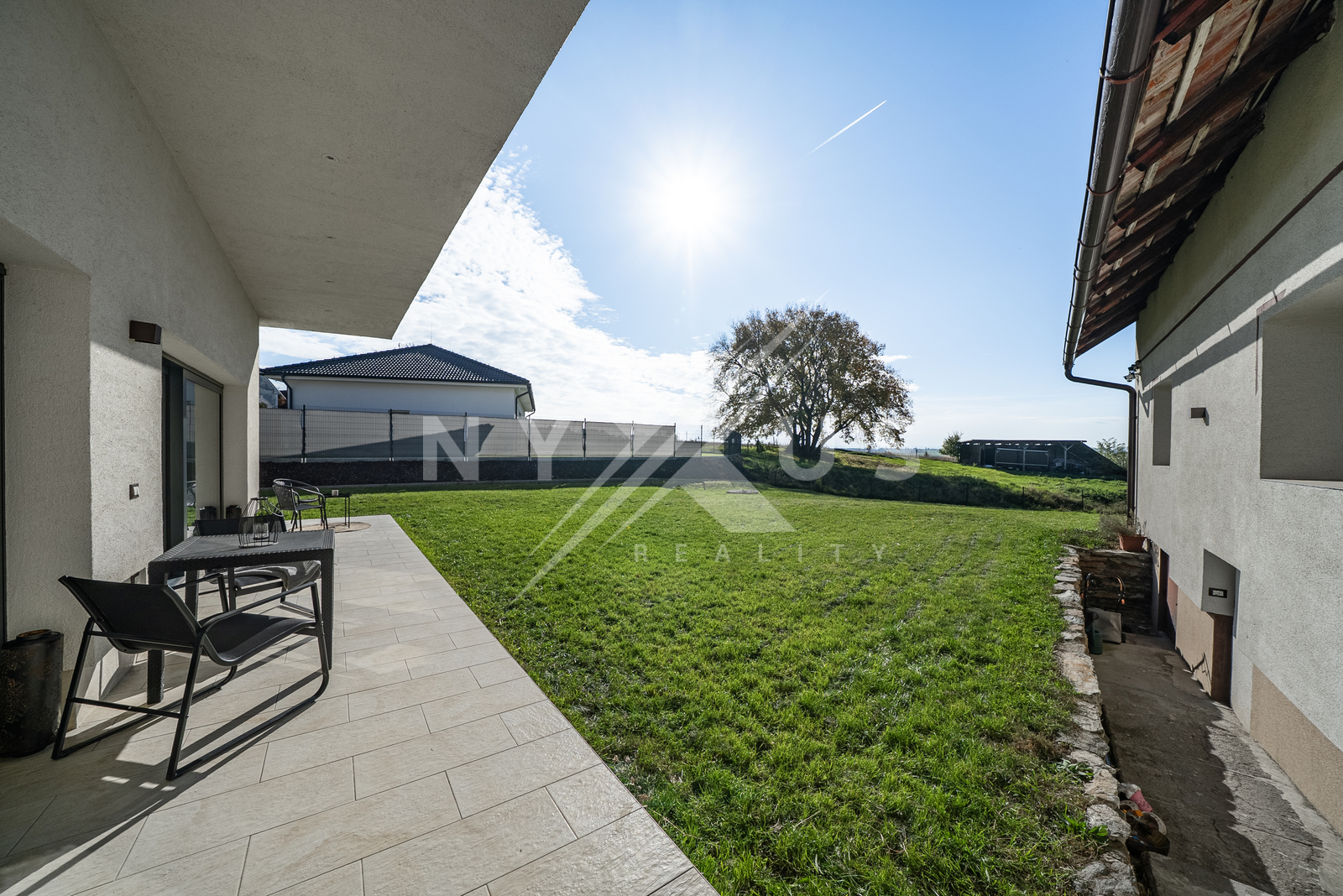 Na pozemku se rozkládá udržovaná zahrada s krásným výhledem do okolní krajiny. Je ideální pro odpočinek, dětské hry i zahradničení. Díky své velikosti poskytuje dostatek soukromí, a přitom působí otevřeně a vzdušně.