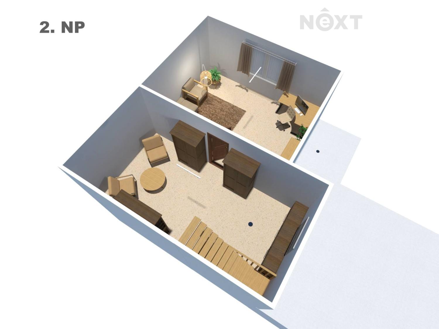 • Prostorná půda, kterou lze po rekonstrukci využít k rozšíření obytné části (dva dětské pokoje)