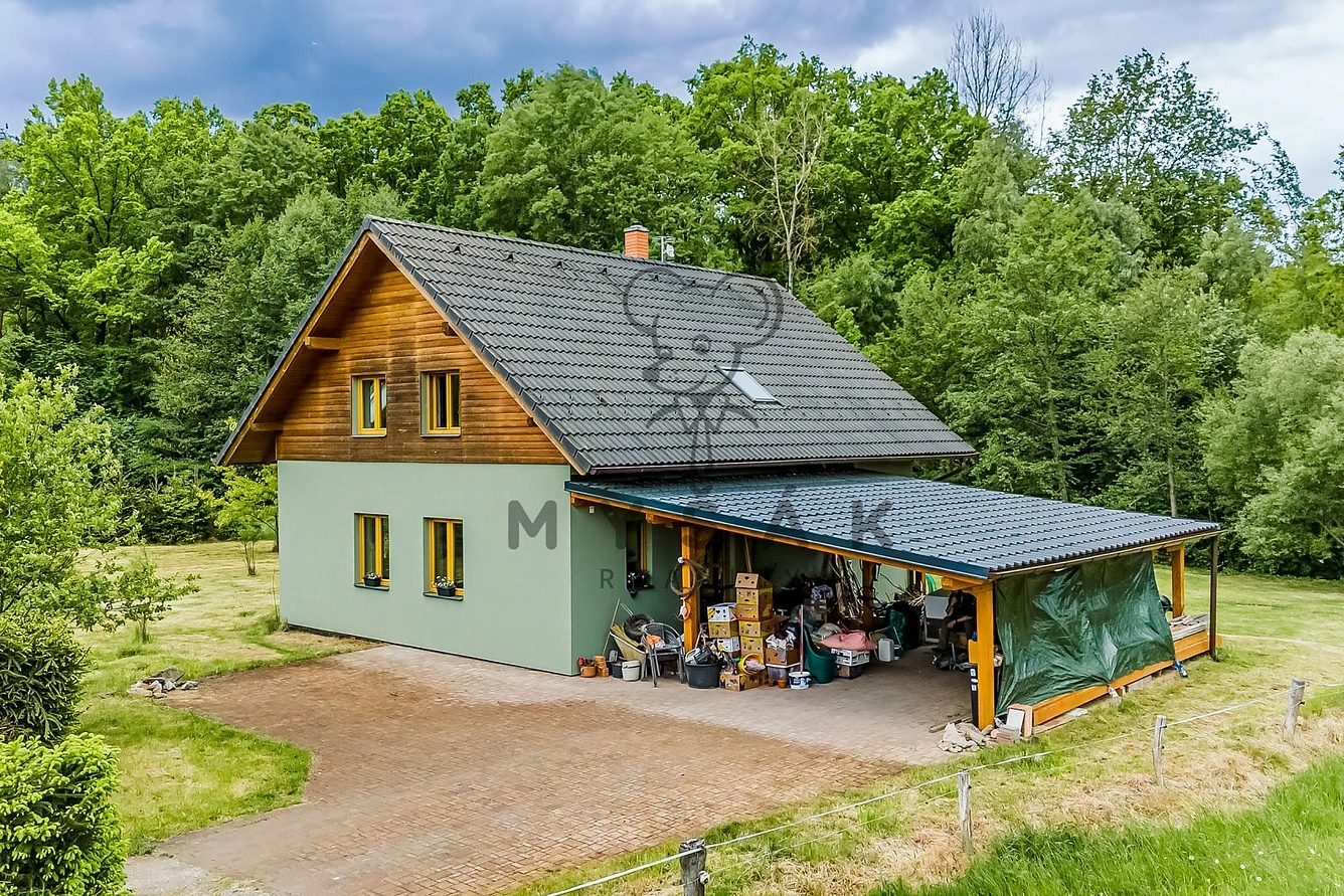 Nabízím vám ke koupi cca 10 let starý rodinný dům o dispozici 5+kk a zastavěné ploše 101 m2, ke kterému náleží zahrada o výměře 1710 m2. Dům se nachází na klidném místě na okraji obce v příjemném prostředí plném zeleně na hranici CHKO. V přízemí domu se nachází obytná místnost s kuchyňským koutem a vstupem na terasu, ložnice, koupelna s WC a technická místnost. V podkroví domu pak tři neprůchozí pokoje a šatna. Vytápění domu je řešené tepelným čerpadlem a dále jsou k dispozici kachlová kamna v obývacím pokoji. Dům má vlastní čističku odpadních vod. Nemovitost bude vyklizená a připravená pro nového majitele ihned po složení kupní ceny. Pro více informací a případné prohlídky, prosím, volejte.