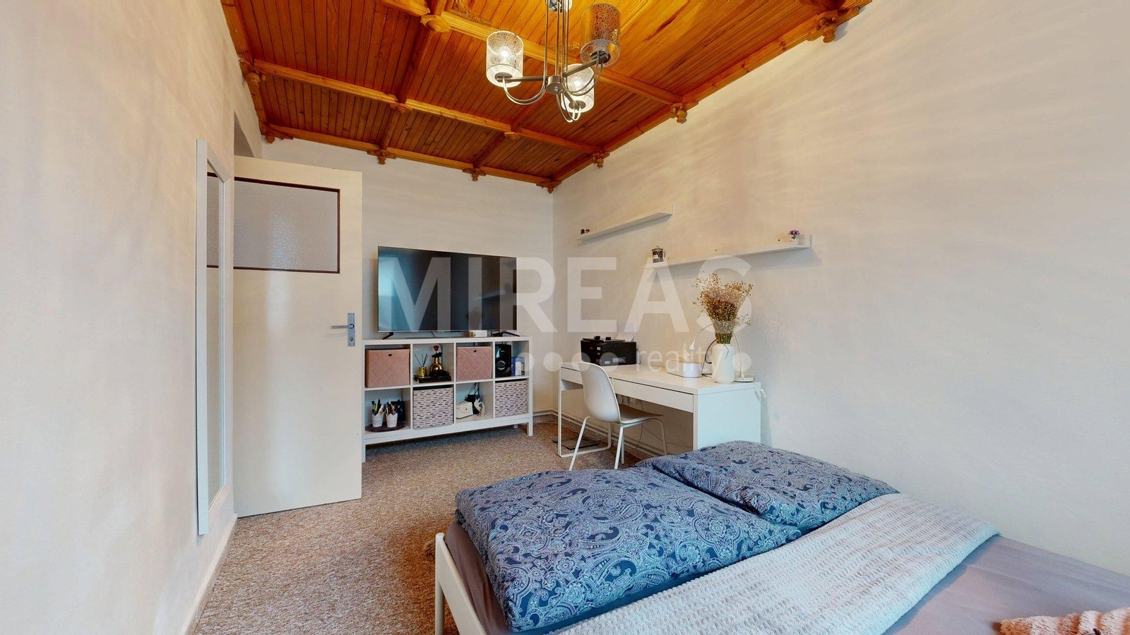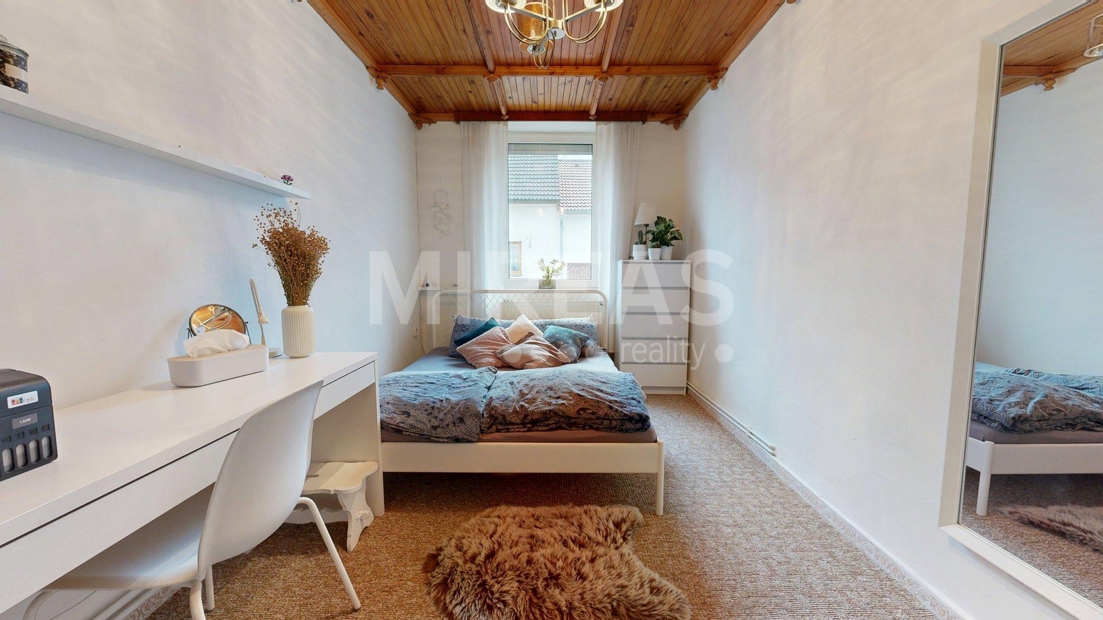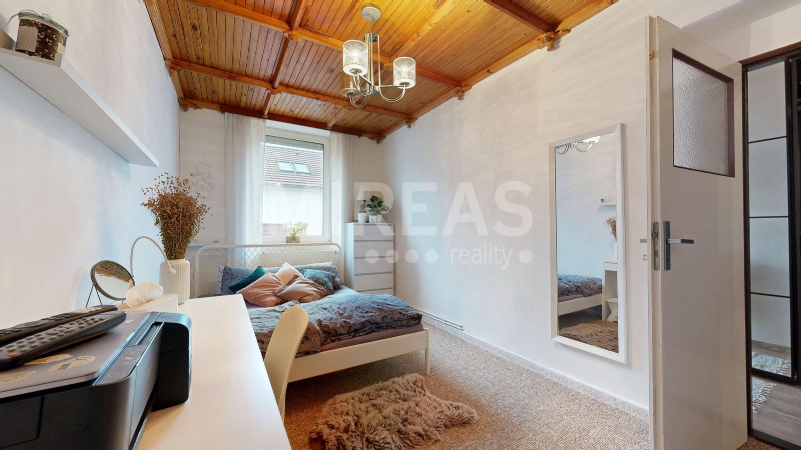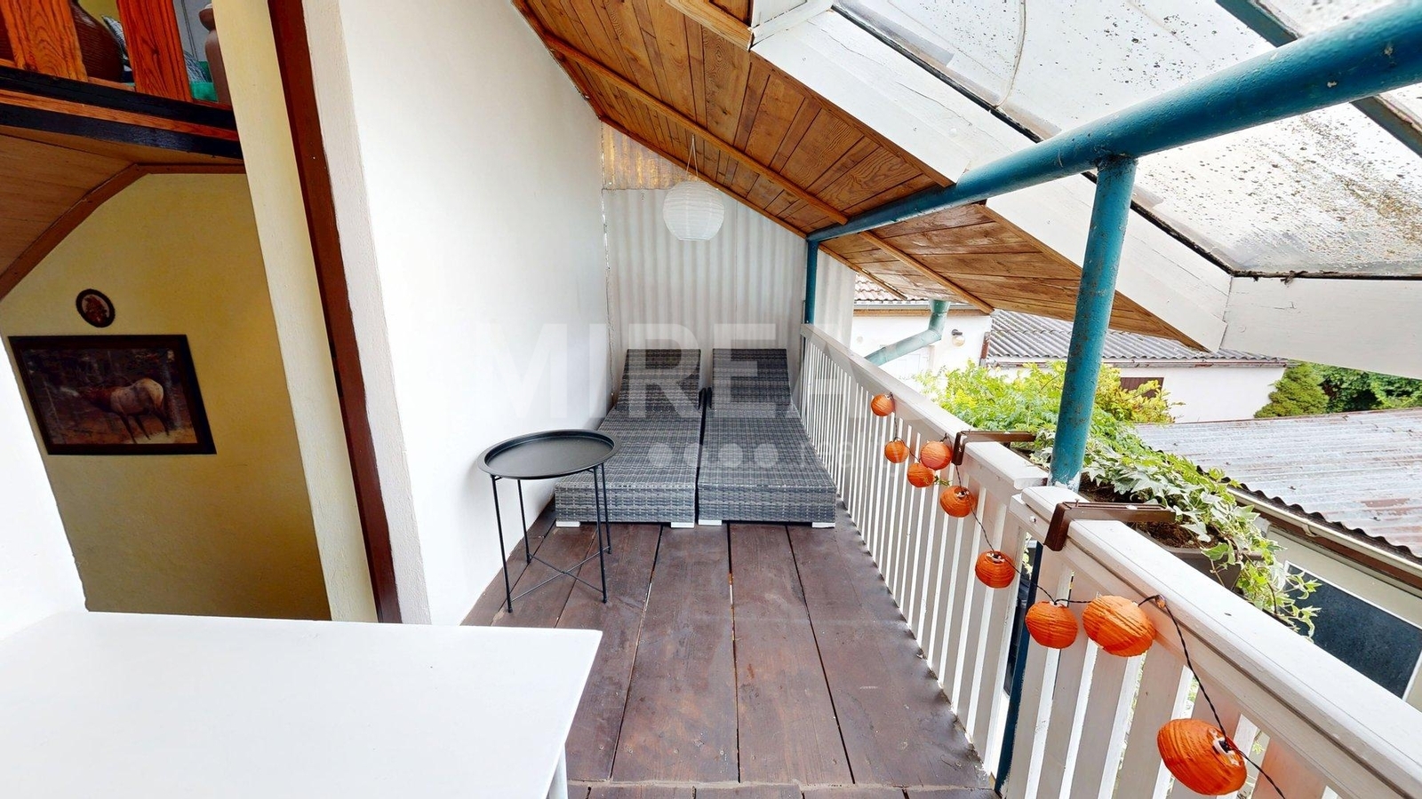 Dispozice podkroví: schodiště, krytý balkón, chodba, dva pokoje a vstup na půdu, kterou je možné přestavět na další obytný pokoj. Podkroví není aktuálně zateplené, nicméně vytápění místností v podkroví je zajištěno centrálně radiátory z elektrokotle, jako vytápění celého domu.