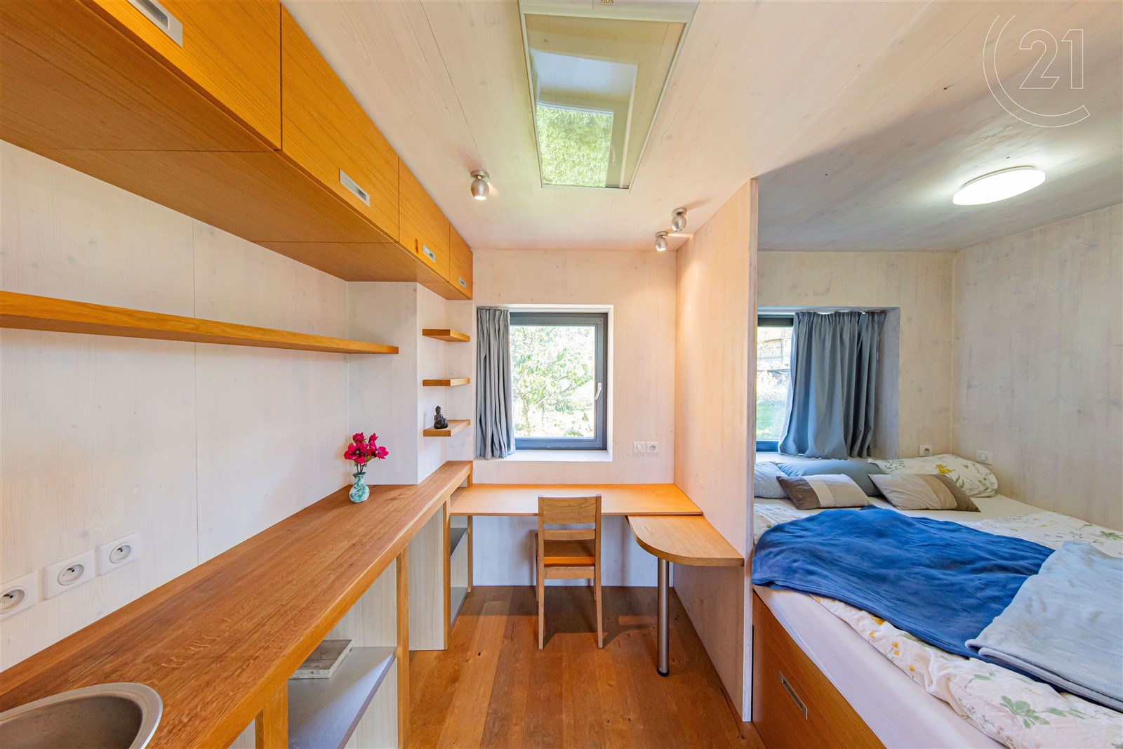 Za domem, v další úrovni pozemku nad letní kuchyní, se nachází dřevostavba s koupelnou a kuchyňkou, hned vedle něj je umístěna i venkovní vířivka. Výjimečný výhled na dominantní zámek Mikulov a do vlastní vinice na druhé straně, dodává celému místu nezaměnitelnou atmosféru.