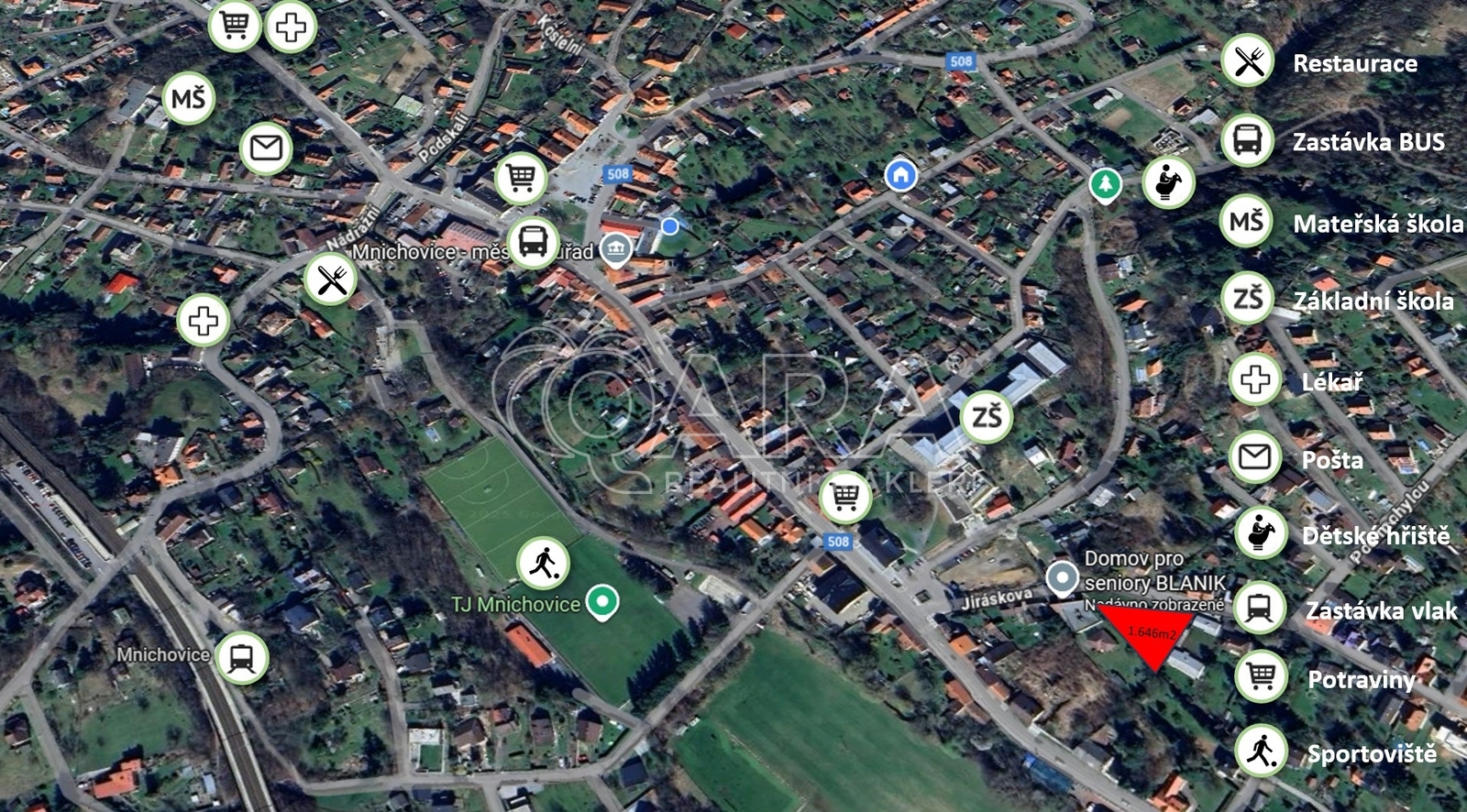 Tento dům je svou pozicí absolutně ideální pro rodinu s dětmi. Na dohled je základní škola s gymnáziem a do pěti minut můžete být na zastávce vlaku. Stejně tak je kousek centrum Mnichovic s mnoha obchody a základními službami.