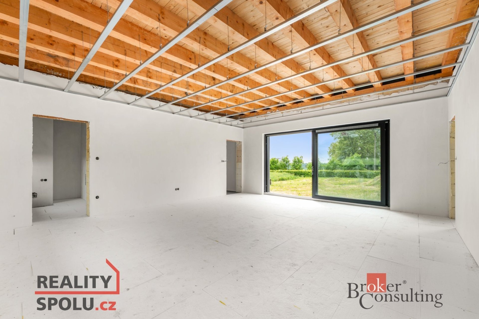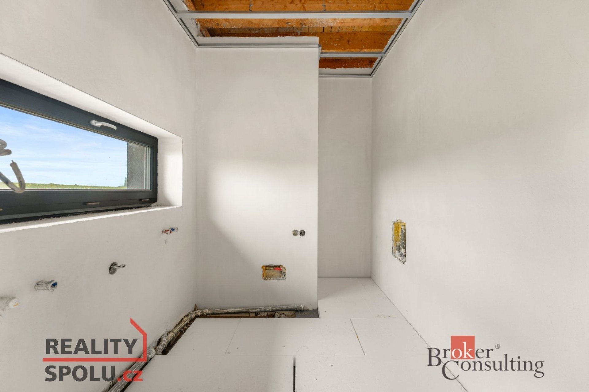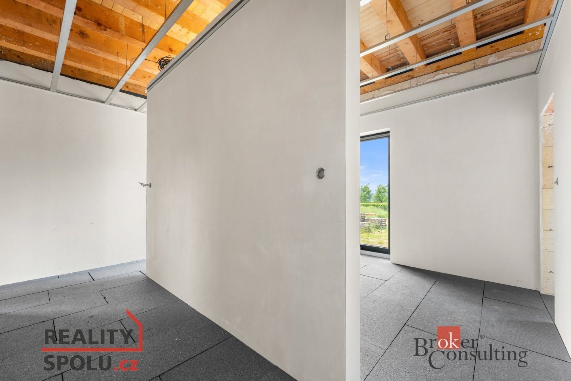 V každém hotovém domě je kus někoho jiného. Tady nebude nikdo před Vámi, jen Vy a Vaše představa. Rozestavěný rodinný dům o dispozici 4+kk, který se nachází na okraji obce Mžany, kousek od Hradce Králové. Jedná se o jednopodlažní, nepodsklepený dům s pultovou střechou. Zdivo je z pórobetonových tvárnic YTONG a střešní krytina je tvořena PVC fólií. Dům je osazen vstupními dveřmi a plastovými francouzskými okny s izolačními trojskly. Jsou hotové vnitřní příčky, z části fasáda a je započata elektroinstalace, vodovodní přípojka a ČOV.Užitná plocha činí 113,1 m2 a dispozici tvoří:- zádveří- prostorný obývací pokoj s kuchyňským koutem (42,5 m2) a vstupem do technické místnosti- ložnice se šatnou (20,6 m2) a soukromou koupelnou- další koupelna přístupná z chodby- dva samostatné pokoje (každý 10,2 m2)K domu patří opravdu velkorysý a rovinatý pozemek o výměře 1 483 m2, který nabízí nejen výhled do zeleně, ale také spoustu možností – bazén, terasa, garáž, zahradní domek, apod.Stavba je navržena s ohledem na moderní energetická řešení – počítá s vytápěním prostřednictvím teplovodního podlahového systému napojeného na tepelné čerpadlo vzduch–voda a také s instalací fotovoltaické elektrárny. Dokončení domu je plně ve Vašich rukou – finální řešení technologií a vybavení bude záležet na novém majiteli. O možnostech a aktuálním stavu Vám rádi řekneme víc při osobní prohlídce.Vizualizace v inzerátu slouží pouze pro inspiraci možného dokončení – dům se prodává ve stavu, v jakém je zachycen na fotografiích.Obec Mžany má překvapivě bohatý komunitní život. Najdete tu základní i mateřskou školu, venkovní posilovnu, cyklostezku, autobusové spojení do Hradce Králové (15 min) i místní pivovar Lindr. Pořádají se tu akce jako dětský den, karneval, čarodějnice, zimní bruslení, trhy, silvestrovské sousedské posezení a mnoho dalšího. A pokud jste gurmáni, určitě oceníte i domácí udírnu v sousedství s výběrem masa a skvělou česnekovou pastou.Pokud hledáte místo, kde spojíte bydlení s přírodou a přitom s dostupností větších měst, Mžany jsou pro Vás to pravé. Financování koupě Vám rádi zajistíme za těch nejvýhodnějších podmínek. Těším se na osobní prohlídku, kde Vám nemovitost ráda osobně představím.