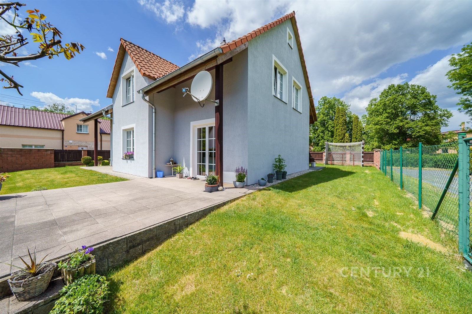 Tento dvoupodlažní rodinný dům o užitné ploše 183 m2 je ve výborném stavu, připraven rovnou k nastěhování a to bez jakýchkoliv dalších investic. Nachází se na pozemku o celkové výměře 590 m2. Dům je napojený na všechny elektrické sítě a je vytápěný plynovým kotlem. Ohřev vody je zajištěn nejen plynovým kotlem, ale také solárním panelem. Náleží k němu propojená prostorná garáž (nezapočítaná v užitné ploše) s širokou příjezdovou cestou na pozemku, kde je možné pohodlně zaparkovat další auta, což se v případě návštěv určitě hodí.