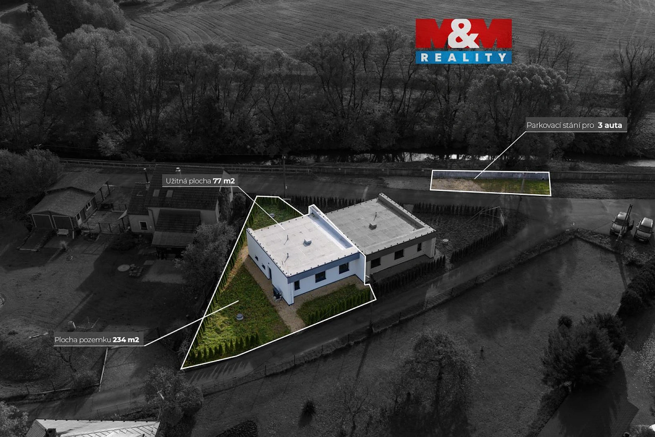 Nabízíme Vám k prodeji novostavbu rodinného domu o dispozici 3+kk v klidné části obce Petrovice u Karviné s užitnou plochou 77 m2 a zahradou o výměře 234 m2, přes cestu k nemovitosti náleží ještě tři parkovací místa. Dům je vytápěn tepelným čerpadlem vzduch-voda, rozvody tepla jsou umístěny v podlaze. Při vstupu je technická místnost s WC, kde je místo i pro pračku a sušičku. V koupelně WC, vana, sprchový kout a umyvadlo. Ve společenském prostoru je k dispozici již plně vybavená kuchyňská linka, prostor pro jídelnu a obývací pokoj s atraktivním výstupem na terasu . Z prostorné chodby jsou dále vstupy do dvou neprůchozích pokojů. Náš hypoteční specialista Vám nabídne nejvhodnější financování této nemovitosti. Doporučujeme prohlídku.
