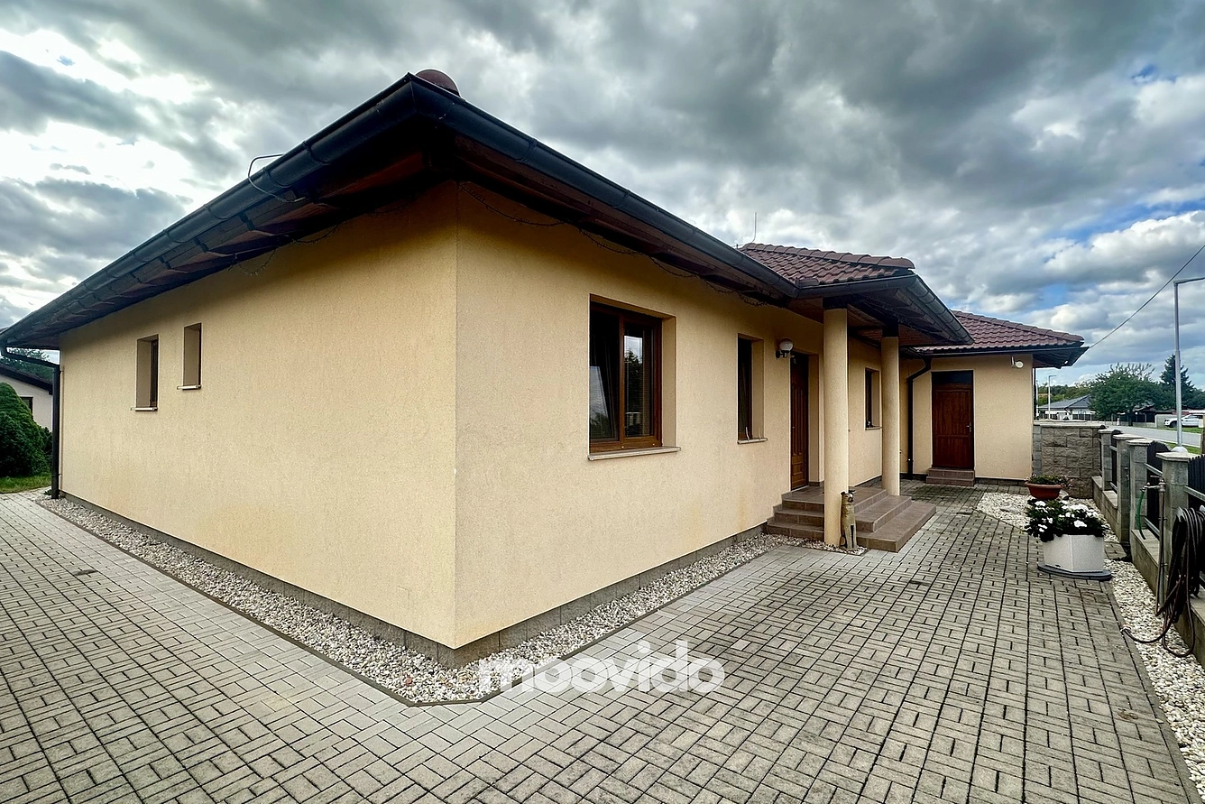 Nabízíme k prodeji samostatně stojící jednopodlažní, zděný rodinný dům s garáží o dispozici 4+1 a užitné ploše 150 m2, nacházející se v obci Písty, jen pár minut od lázeňských Poděbrad.Dům stojí na prostorném, rovinatém pozemku o výměře 1 364 m2, který nabízí široké možnosti využití – od relaxace až po pěstování plodin. Na pozemku je kromě domu s garáží také postaven zahradní domek o výměře 35 m2, který je rozdělen na sklad a dílnu. Dále je zde přístřešek, který může sloužit jako útočiště před nepříznivým počasím.Dům s obytnou plochou 125 m2 je členěný na samostatnou kuchyň s jídelnou (20 m2), obývací pokoj (30,20 m2), obývací pokoj, 3x ložnice (15,20 m2, 14,70 m2 a 14,30 m2), koupelna (6,30 m2), WC (2,5 m2), chodba (13,5 m2), zádveří (5,1 m2) a technická místnost (3,60 m2). Na obývací pokoj navazuje zimní zahrada o výměře cca 12 m2.Kuchyň je vybavená prostornou kuchyňskou linkou s barovým pultem a s vestavěnými spotřebiči – lednice, myčka, elektrická trouba, plynová varná deska, mikrovlnná trouba. Obývací pokoj je klimatizovaný, vybavený krbem. Samostatná toaleta je vybavena závěsným WC, umyvadlem, v koupelně je sprchový kout. V technické místnosti je umístěn plynový kotel se zásobníkem teplé vody, připojení pro pračku/sušičku. Podlahové krytiny jsou dlažba a vinyl.Podkroví je přístupné z chodby pomocí stahovacího stropního schodiště a slouží jako skladovací prostor. Je zde osvětlení a podlaha z OSB desek.Dům je připojen ke všem inženýrským sítím – plyn, elektro, voda, kanalizace. Na pozemku je také vrtaná studna, kterou je možné využít k zálivce. Na zahradě je i rozveden závlahový systém.Obec Písty je klidná a příjemná lokalita s přátelskou atmosférou, v těsné blízkosti Poděbrad (cca 5 km) a s dobrou dostupností do Kolína (15 km) i Prahy (dálnice D11 do 30 min). V okolí je krásná příroda, cyklostezky, Labe, lesy – ideální prostředí pro rodinné bydlení nebo rekreační využití.