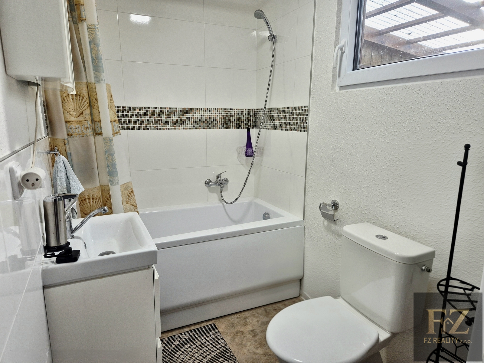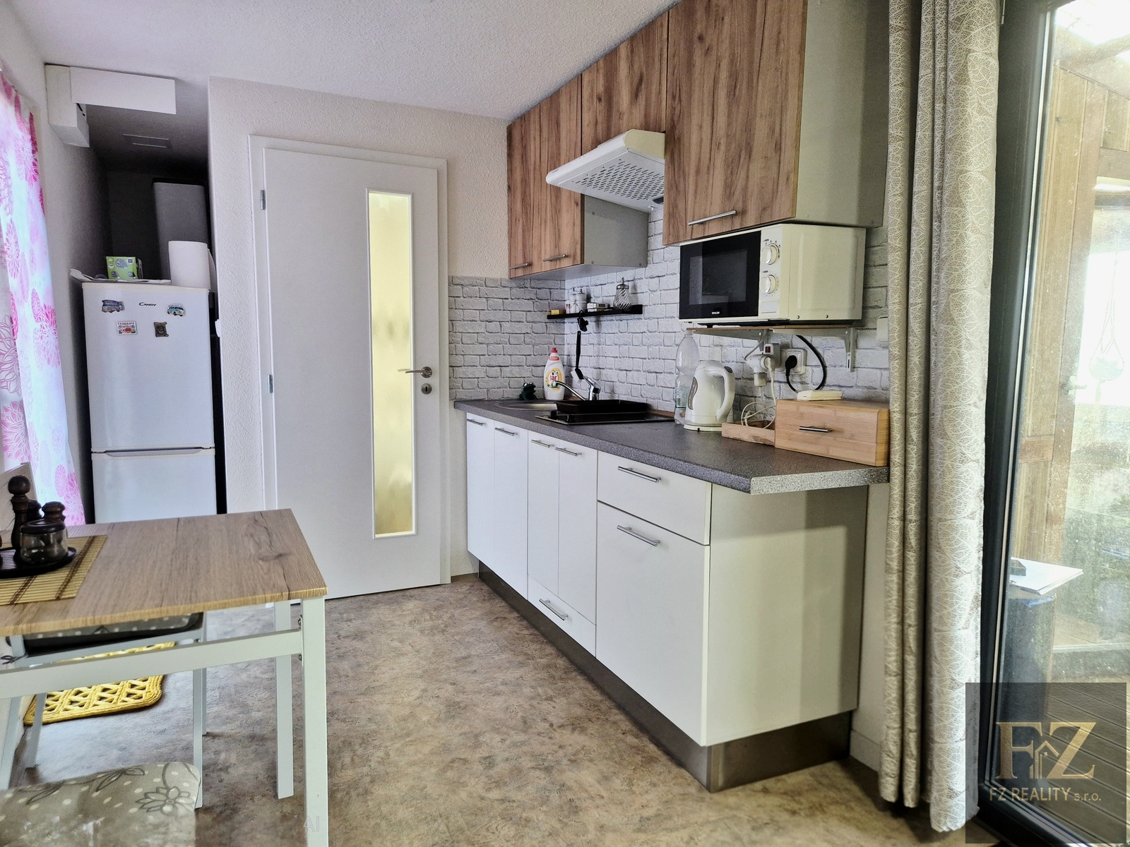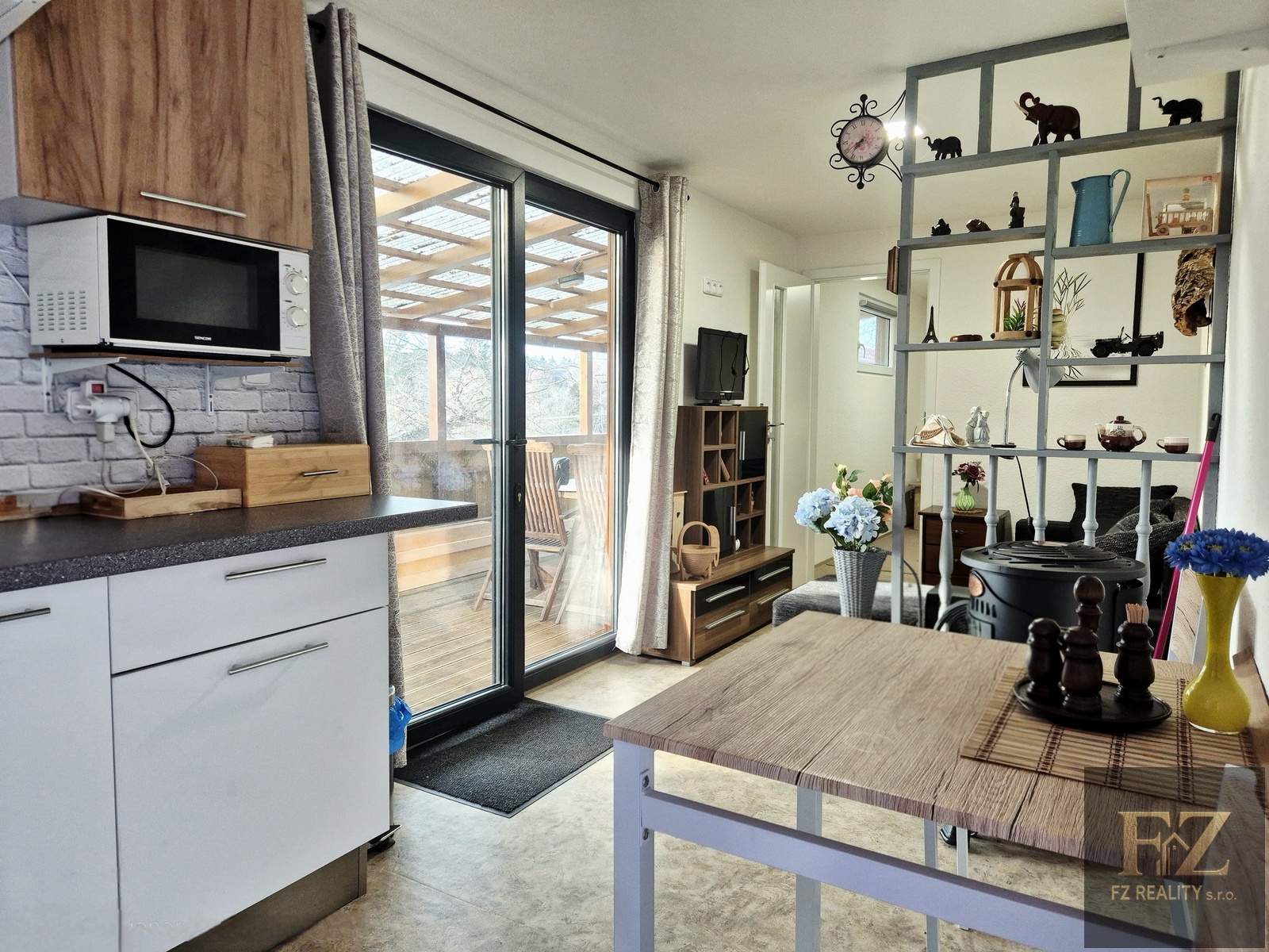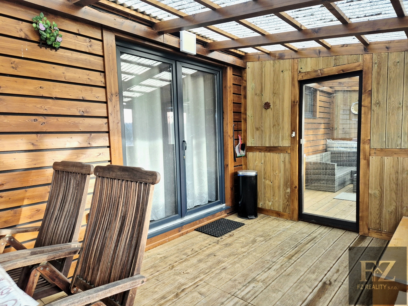 Velkou předností je prostorná terasa rozdělená na dvě části, uzavřenou část (12 m²) vhodnou k posezení i v chladnějším období, zastřešenou otevřenou část (21 m²), obě s pěkným výhledem do zeleně a na řeku Lužnici. Pod terasou se nachází suchý betonový sklep.
