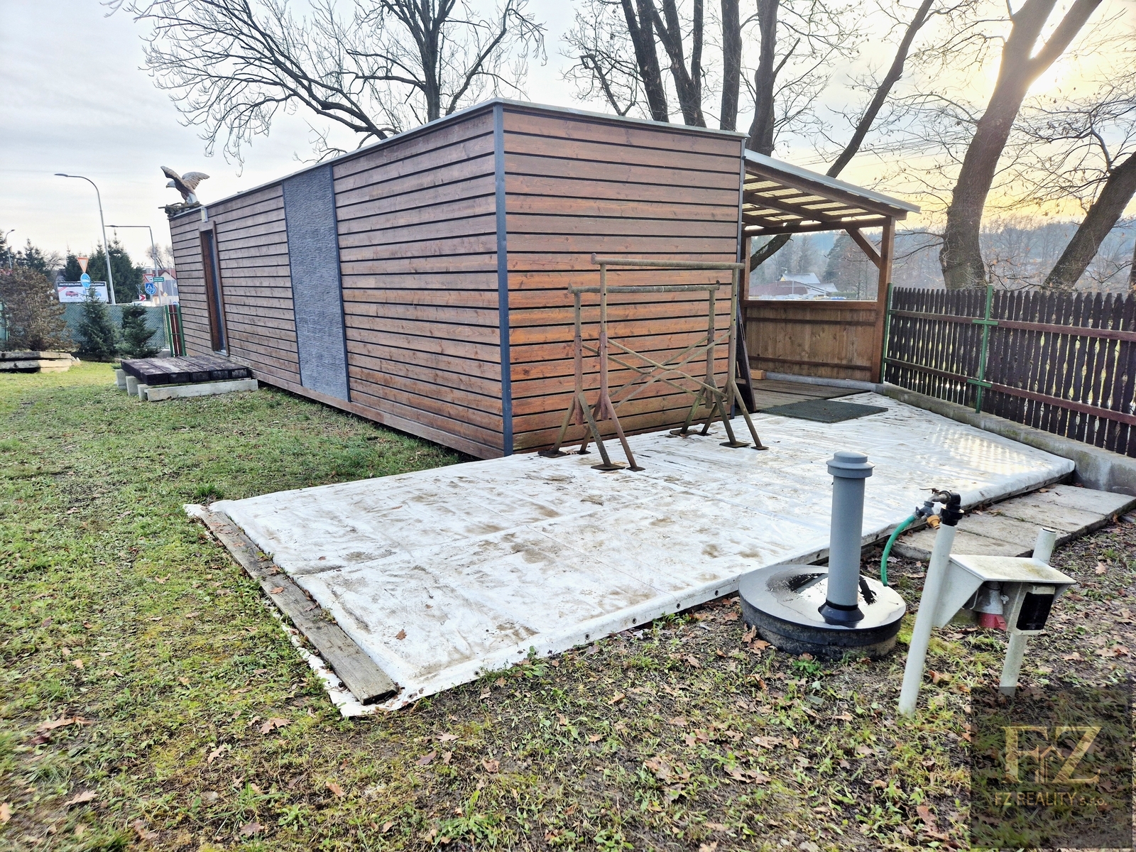 Na pozemku o výměře 410 m² se nachází modulární rodinný dům s terasou, sklepem a plechovým skladem. Dům má vydané platné stavební povolení, přičemž dle projektu zbývá dokončit jeden pokoj (3,7 x 2,7 m). Součástí prodeje je i materiál na dostavbu (ocelová konstrukce, okna, dveře, zateplení); základová deska je již hotová.