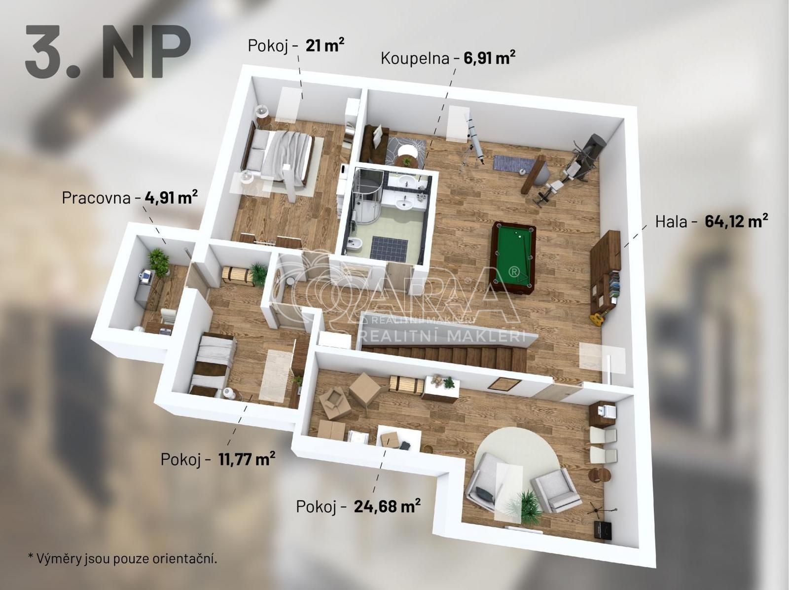 Na ploše téměř 495 m² a 620 m² včetně teras a krytých částí se otevírá promyšlený prostor, kde každý detail má své místo. Velkorysý obývací pokoj s kuchyní o rozloze téměř 100 m² je srdcem domu, kde se přirozeně setkává rodina i přátelé. Dům nabízí 7 ložnic, 5 koupelen a 3 terasy, což poskytuje dostatek soukromí i společného prostoru pro všechny generace.