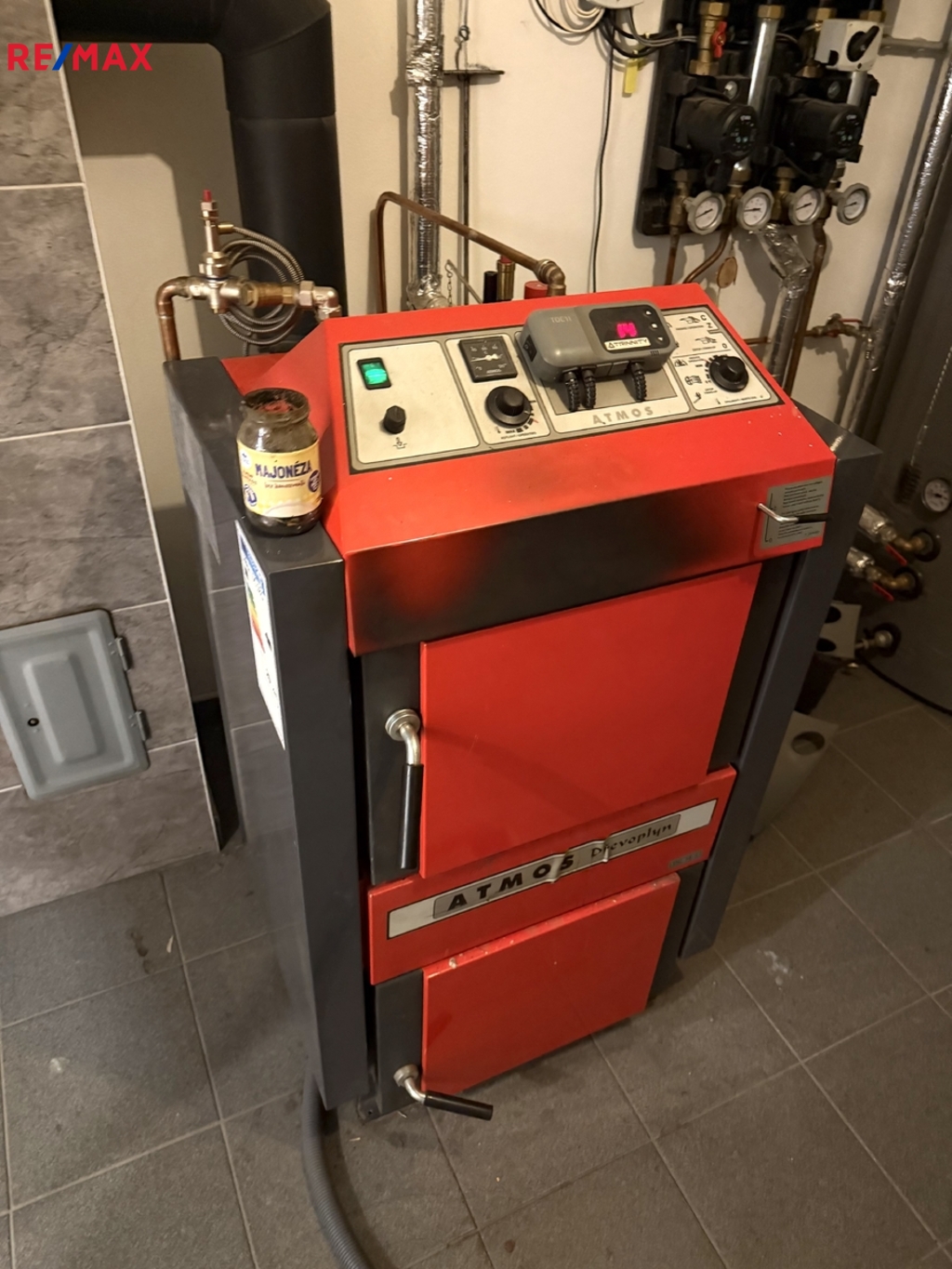 Vytápění ústřední -kotel na tuhá paliva, voda obecní, odpad kanalizace.