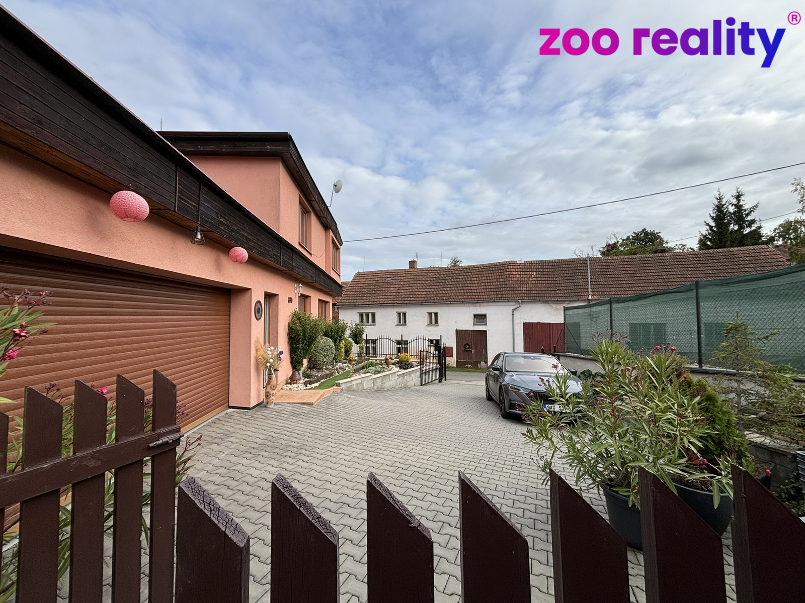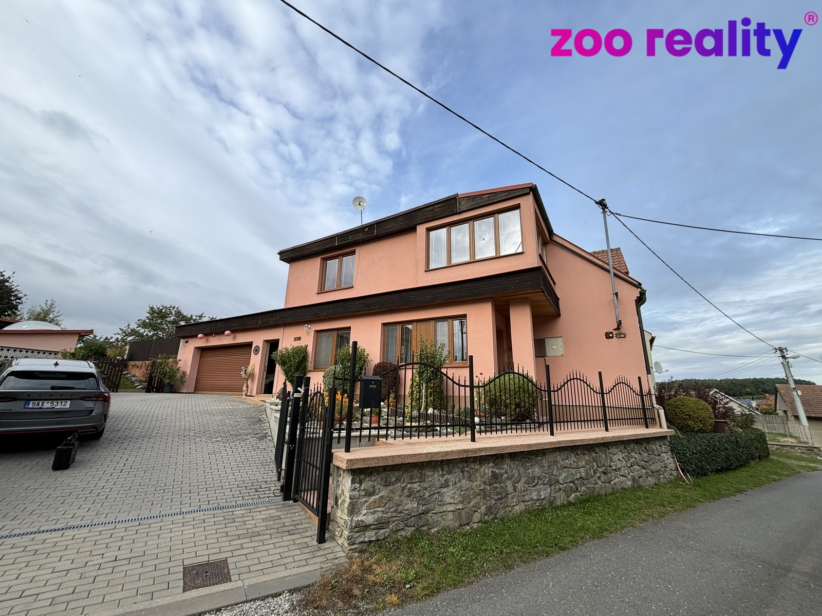 K nemovitosti náleží zděná garáž pro dva vozy a parkovací stání pro 3–4 auta před domem.