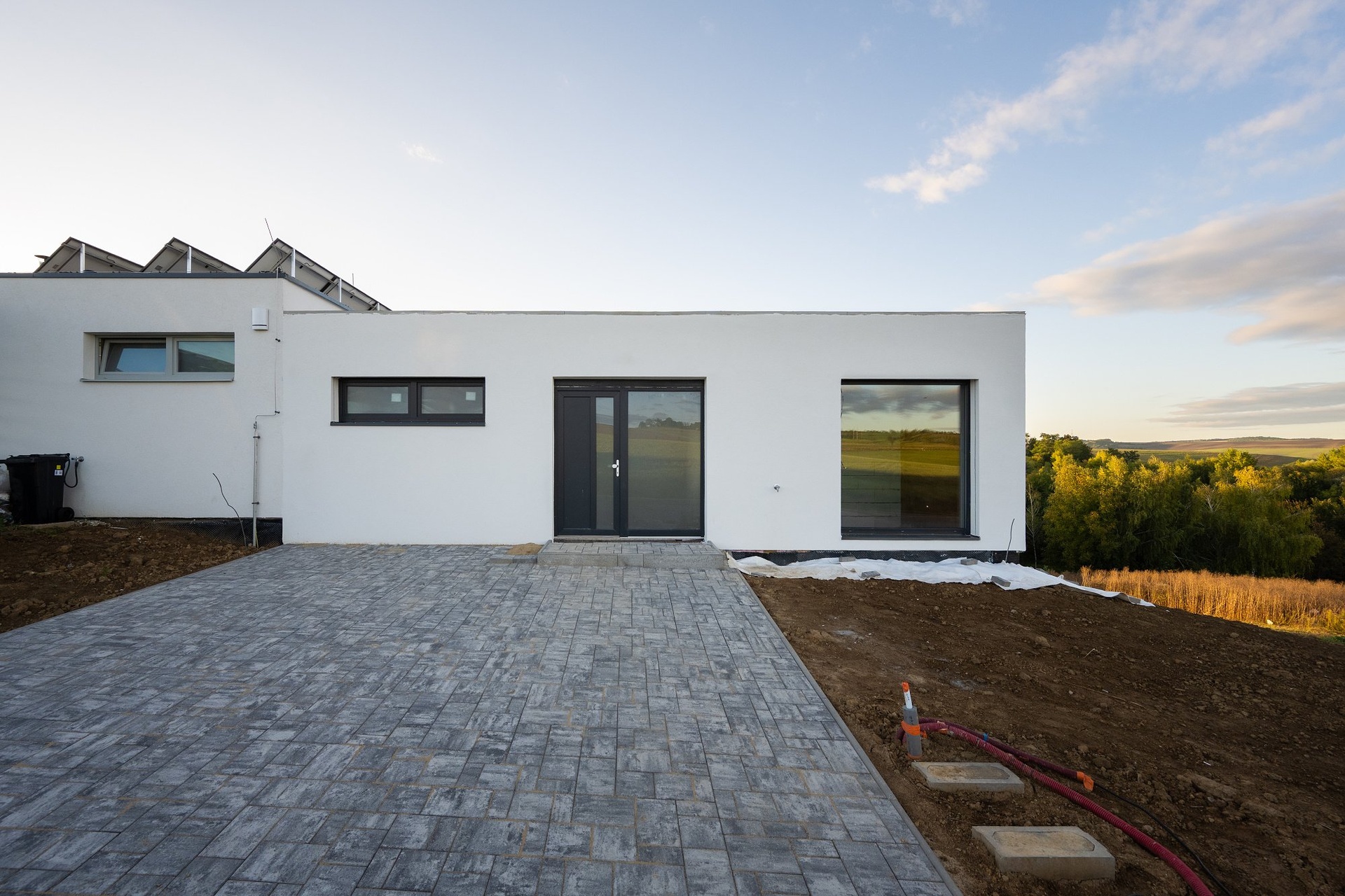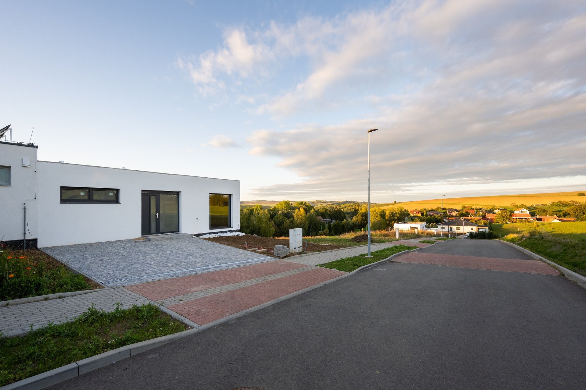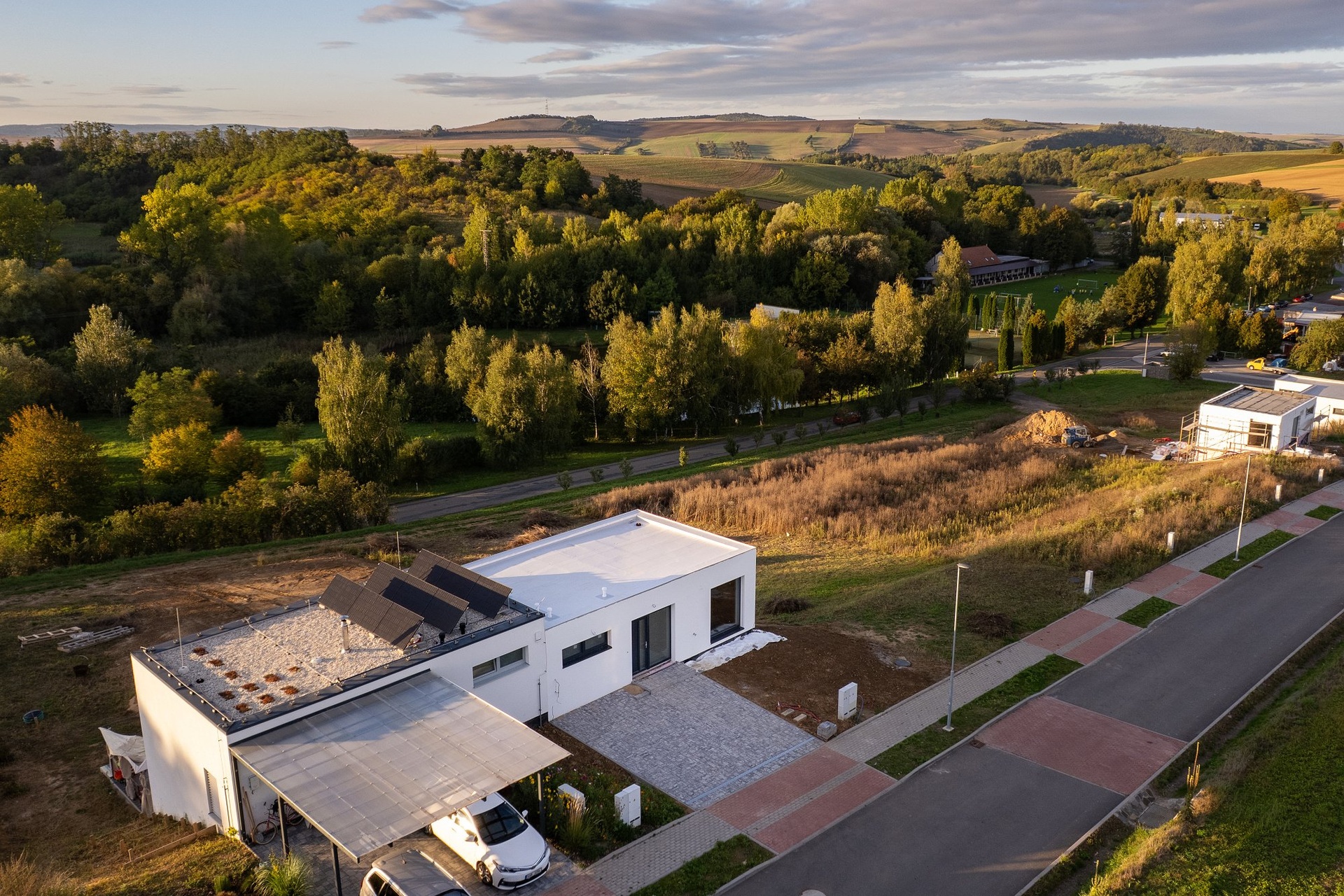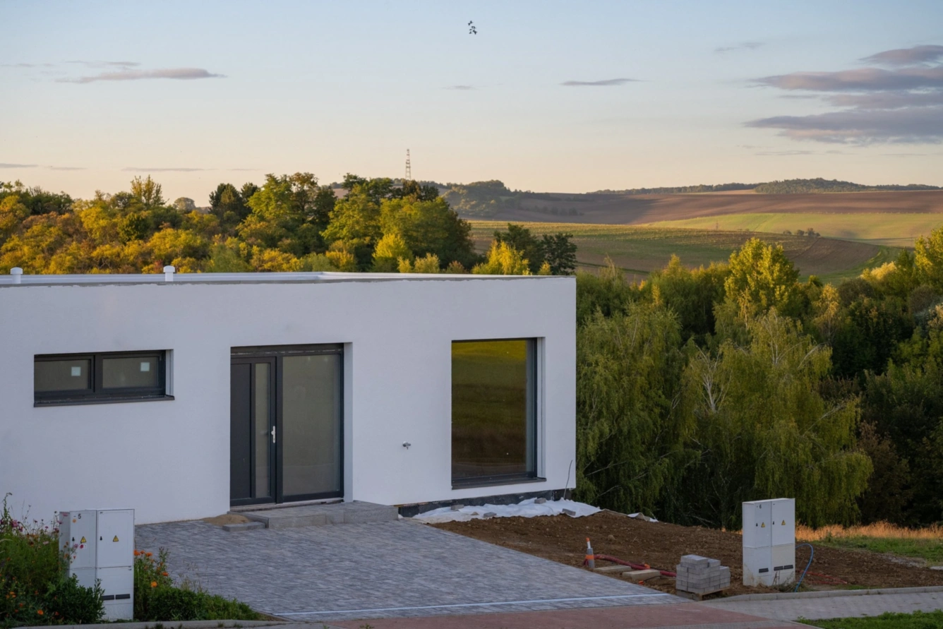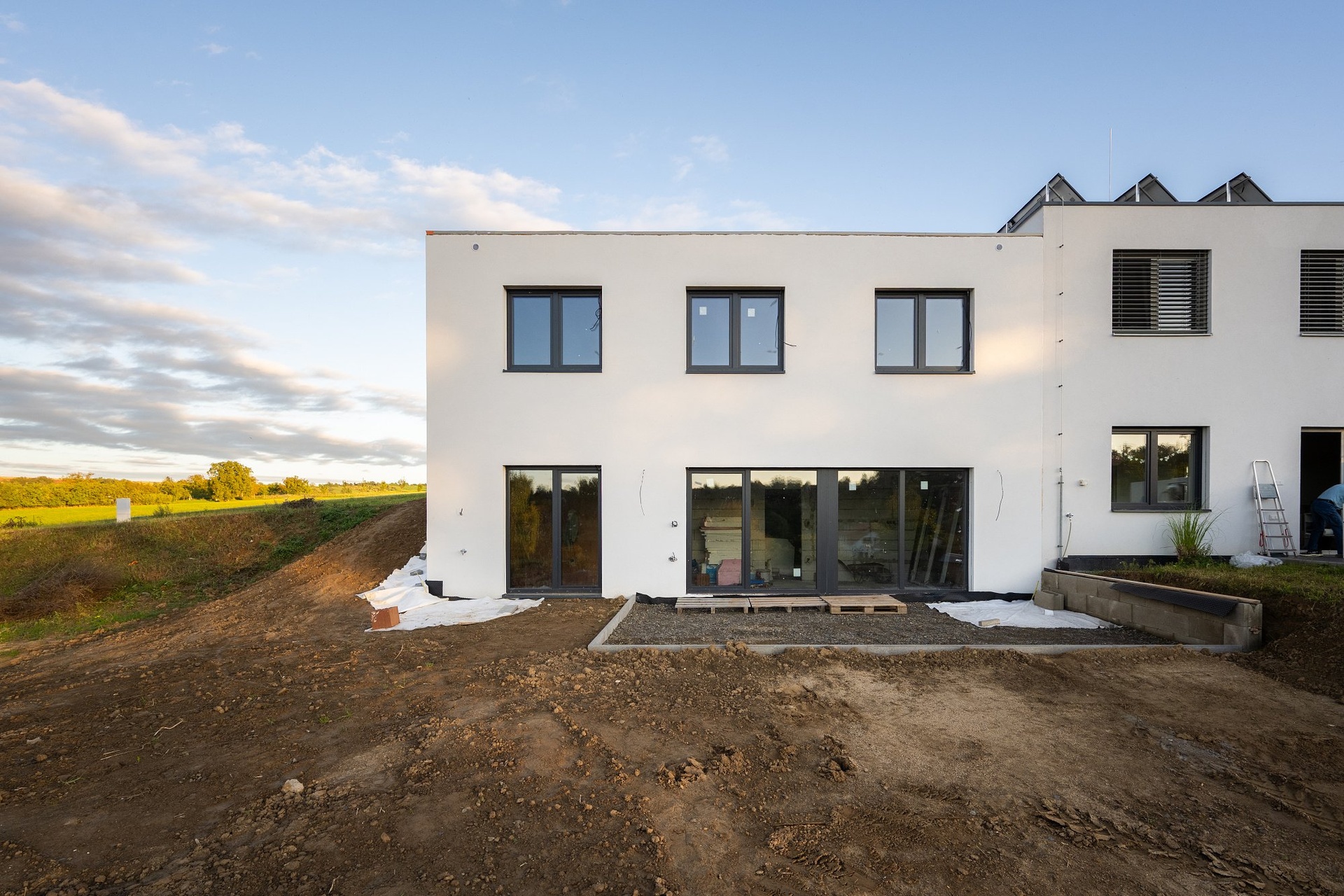 Novostavba krásného domu na kouzelném místě s výhledem do přírody v obci Rašovice u Slavkova.Představujeme vám novostavbu dvoupatrového rodinného domu o dispozici 4kk, dvěma koupelnami a krásným, mírně svažitým pozemkem. Dům je druhou polovinou dvojdomku. První část je již realizovaná (viz fotografie), druhý dům se staví. Tento dům je předmětem prodeje. Kolaudace plánovaná na 02/2026. K nemovitosti se dostanete po nově zbudované asfaltové cestě. Před domem jsou dvě parkovací místa, vstupní dveře kryje praktická pergola. Hlavním vchodem se dostanete do horního patra domu, ve kterém jsou tři ložnice a koupelna. Koupelna je velikostně a technicky koncipována pro dvě umyvadla, vanu a toaletu. Praktická podlouhlá okna zajišťují dostatek denního světla a tedy možnost úspory elektrické energie během dne.Točité schodiště vás zavede do velkoryse řešeného obytného prostoru ve spodním patře – obývacího pokoje a kuchyně. Velkoformátová okna s výstupem na budoucí terasu poskytují krásný výhled do přírodního parku. Za kuchyní je technická místnost s místem pro pračku, sušičku. Dále je zde umístěn kotel a zásobník na teplou vodu. I v tomto patře je menší koupelna s místem na sprchový kout, umyvadlo a toaletu. Prostor pod schod je prakticky využit jako komora. Spodní část pozemku je přístupná ze zpevněné cesty a je zde možné vybudovat garáž nebo zahradní domek, altán nebo přístřešek. V zahradě je také retenční nádrž.Co vše je v ceně:- fotovoltaika- tepelné čerpadlo- zásobník na vodu- podlahové teplovodní topení- zabezpečovací systém- vypínače a pojistky- příprava na venkovní žaluzie- venkovní pergola u hlavního vstupu do domuAbyste si mohli dům přizpůsobit svým potřebám a vkusu, můžete si vybrat zařizovací předměty: sociálního zázemí, podlah a dveří. Dokončení ve stanoveném standardu je v ceně RD. Výstavba v lokalitě je koncipovaná jako 7 dvojdomků v klidné části obce s výhledem do přírody. Obec Rašovice je malebná a rozvíjející se obec mezi Slavkovem u Brna a Bučovicemi, na úpatí přírodní rezervace Ždánický les a je doslova splněným snem o ideálním místě pro život v krásné přírodě a zároveň v blízkosti civilizace a občanské vybavenosti. Dojezdová vzdálenost do Slavkova je 10 minut autem, do Bučovic téměř stejně. Do Brna se dostanete za cca 30- 40 minut jízdy autem.V případě zájmu nás kontaktujte pro více informací. Rádi vás také uvítáme na osobní prohlídce na místě stavby případně v kanceláři. S financováním nemovitosti může pomoci náš hypoteční specialista.Na příští rok je připravena stavba dalšího dvojdomu na stejné ulici.