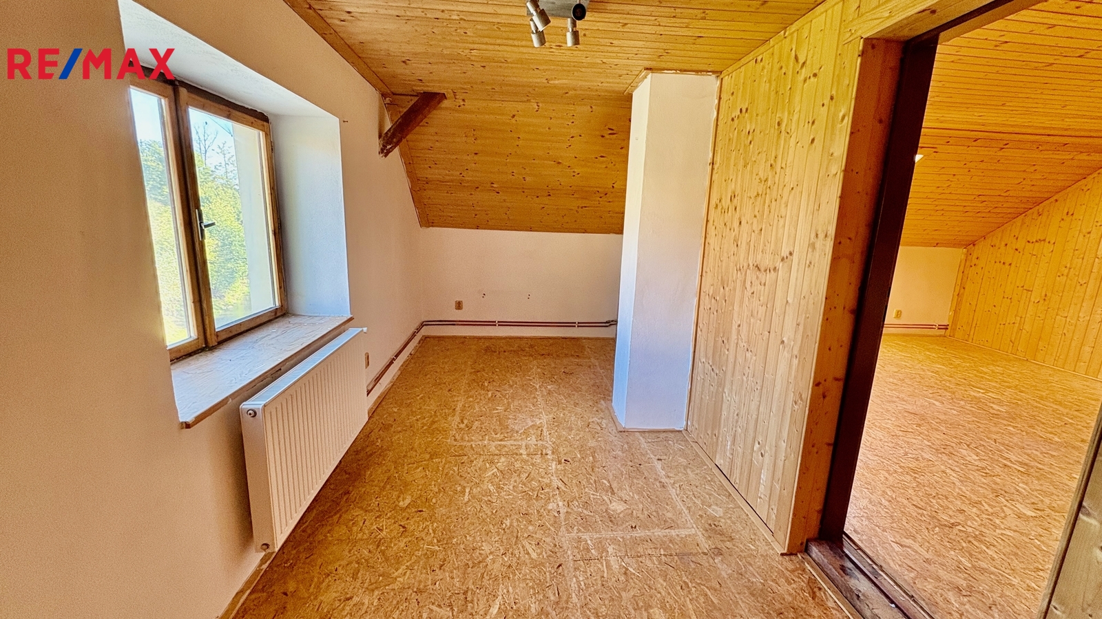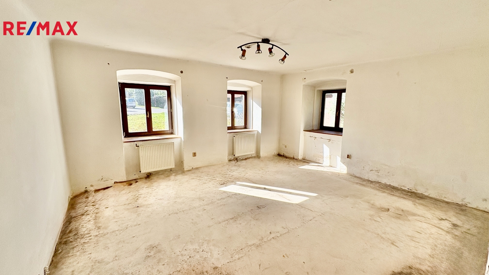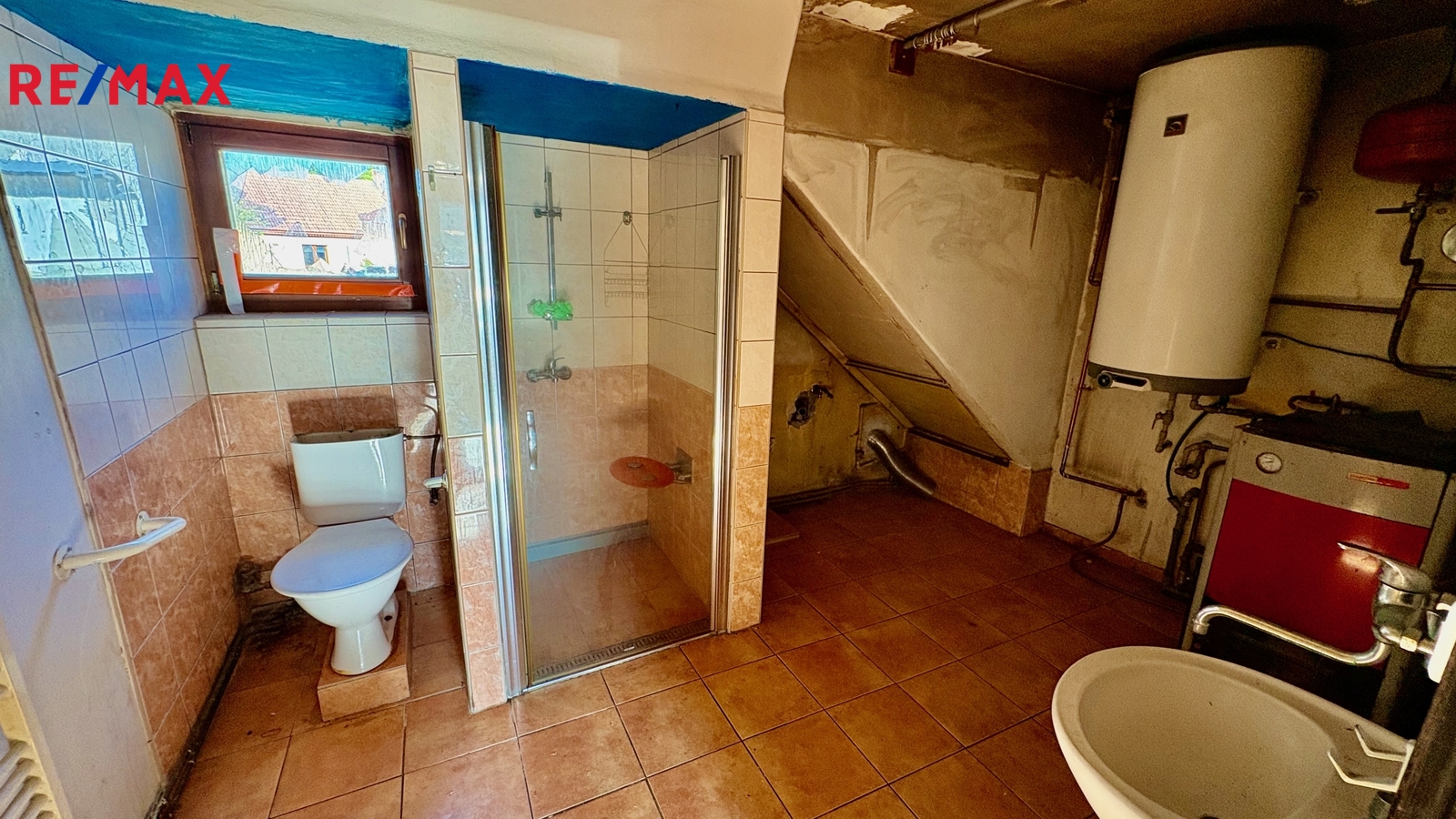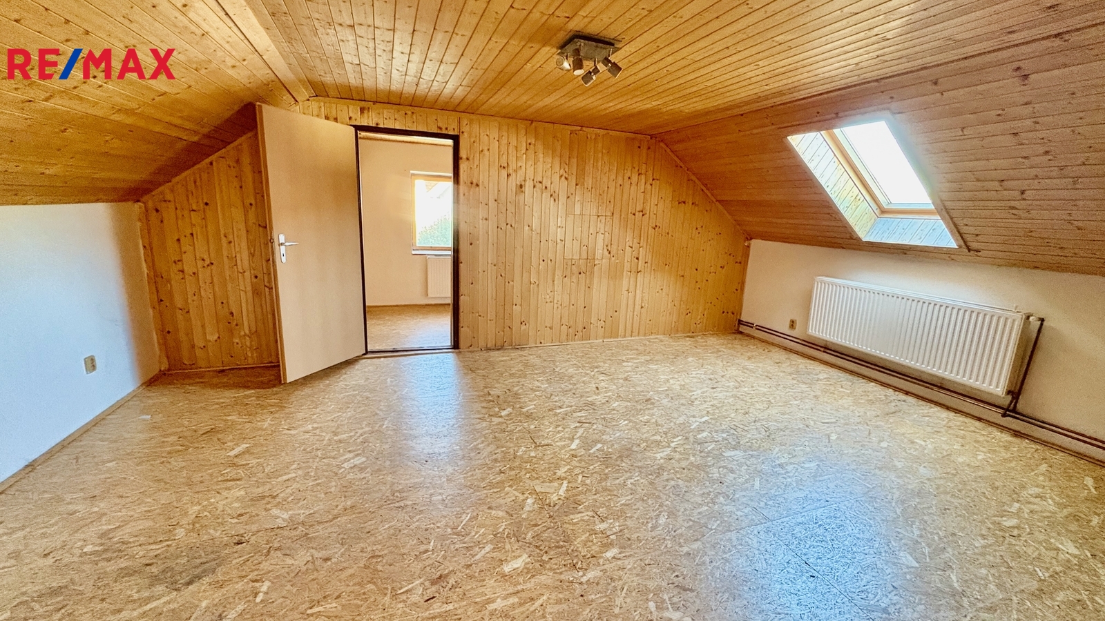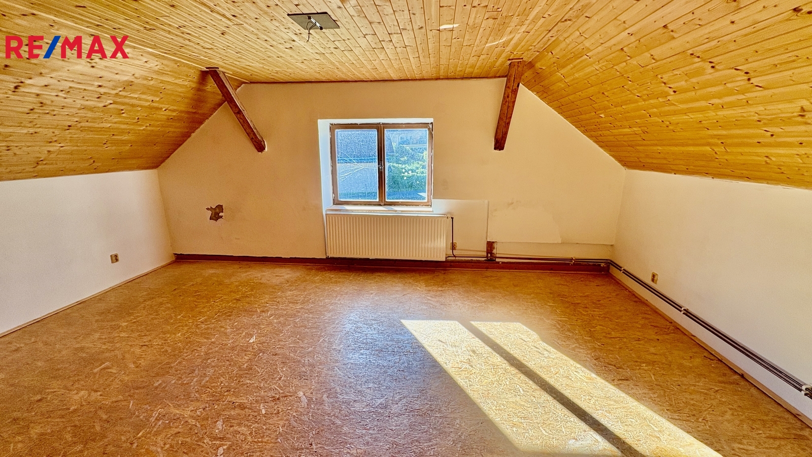Jedná se o prodej přízemního atypického rodinného domu s obytným podkrovím, který je v katastru nemovitostí rozdělen na dvě bytové jednotky. Bytová jednotka 3+1 o výměře 70m2 s vlastní koupelnou a WC se nachází v přízemí domu. Druhá, mezonetová bytová jednotka, o dispozici 5+1 o výměře 160m2 má v přízemí domu místnost a kuchyni, v podkroví domu další čtyři místnosti a koupelnu s WC. Nemovitost je napojena na obecní vodovod, kanalizaci a elektřinu, vytápění je ústřední, kotlem na TP, ohřev vody bojlerem. Na hranici pozemku vede plynové vedení. U domu zpevněná plocha a předzahrádka. Možnost financování hypotečním úvěrem, bezplatně vyřídíme. Pro více informací volejte makléře nabídky.