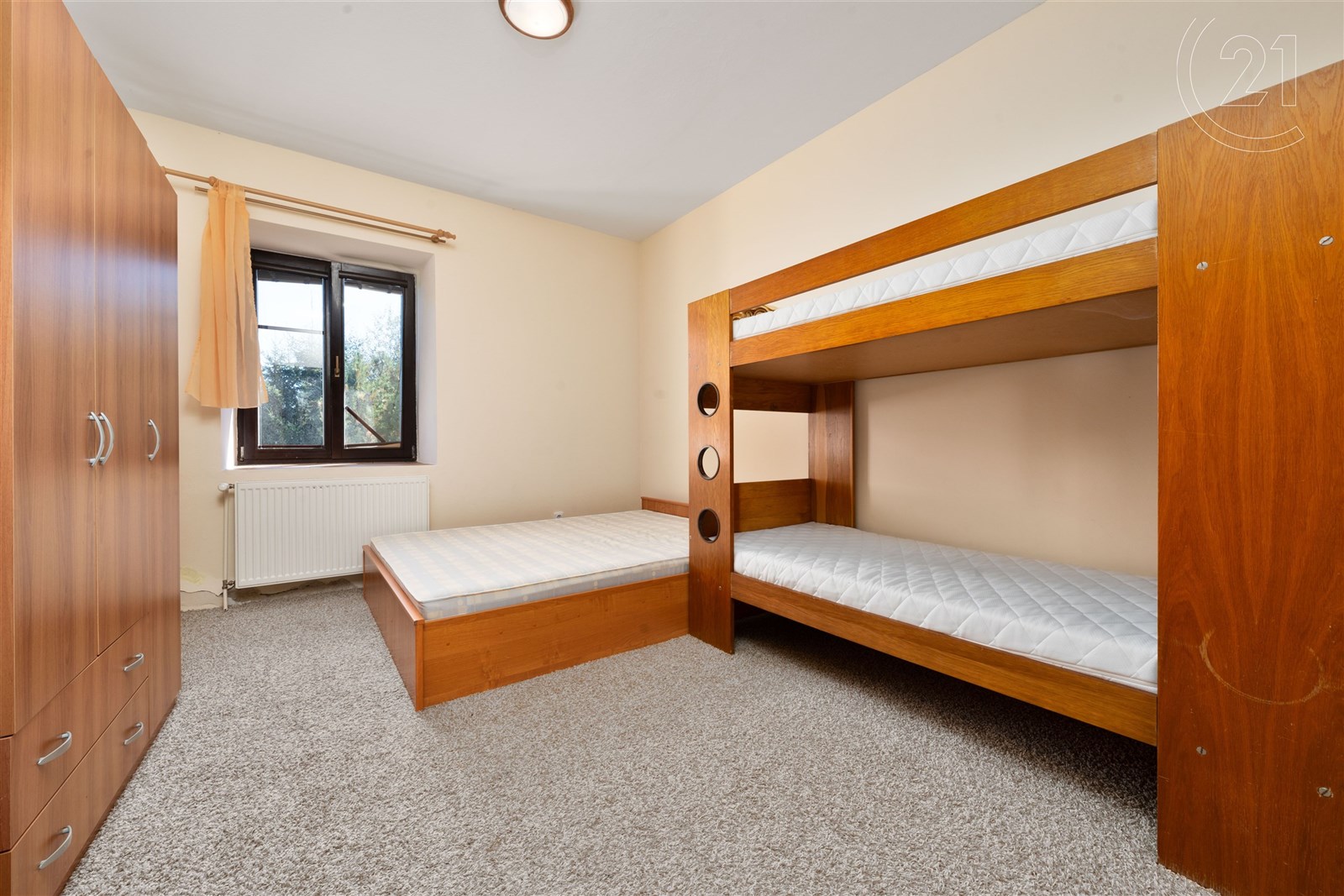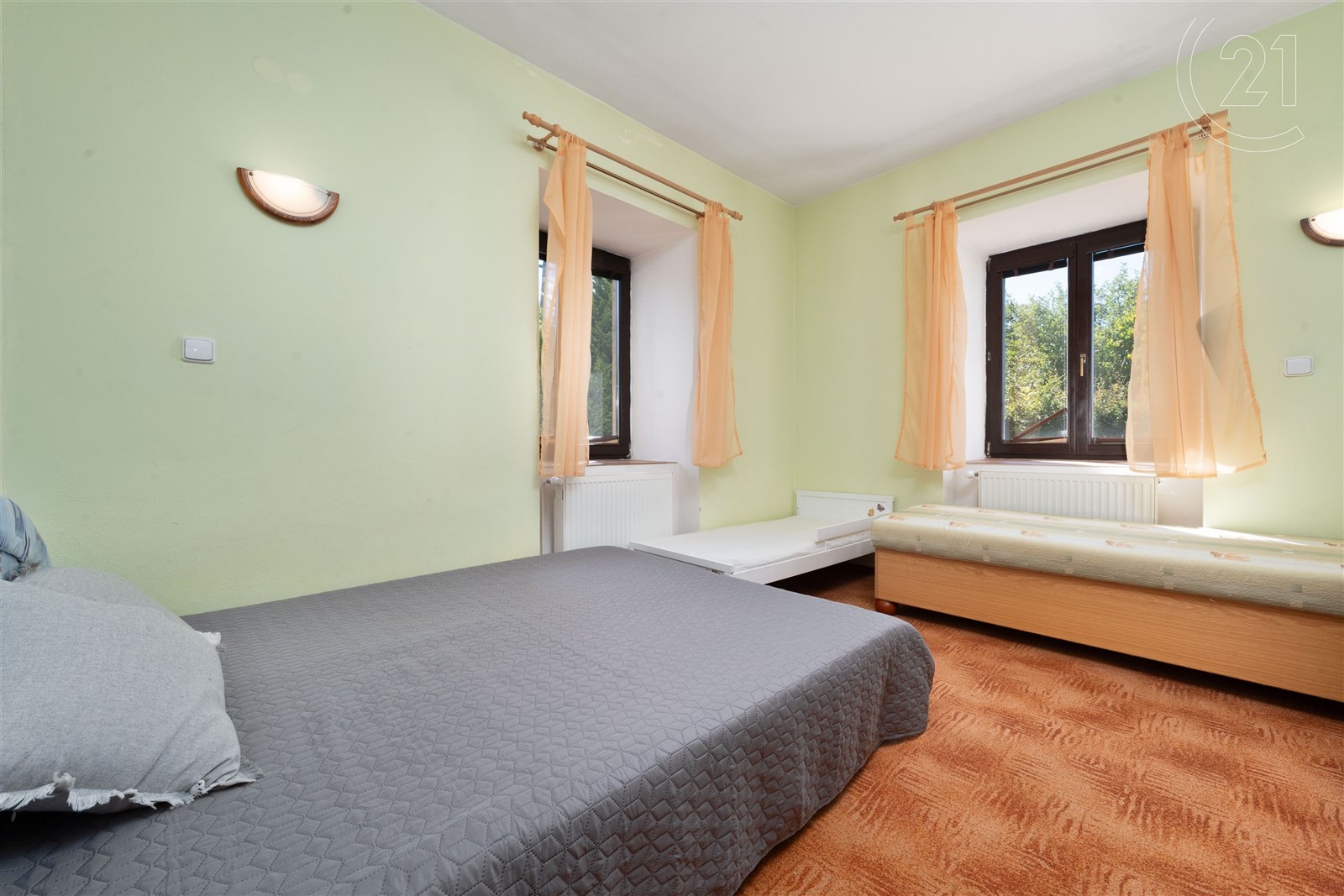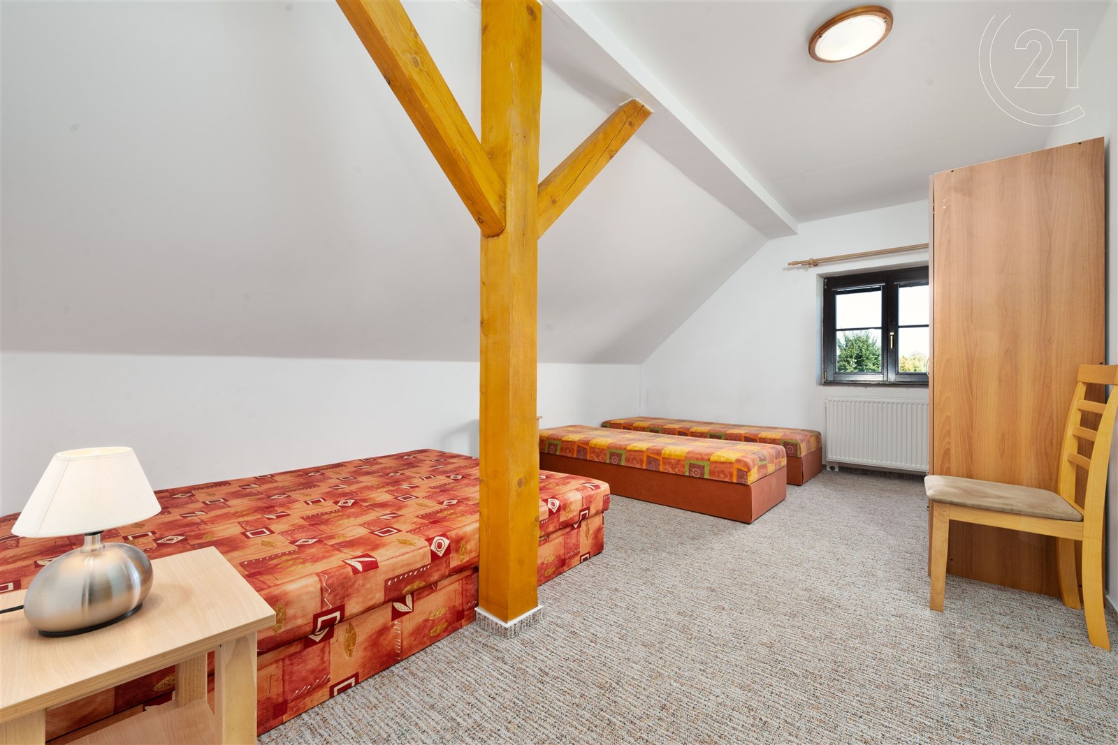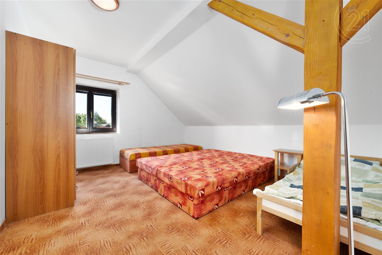 Uvnitř se ukrývají hned čtyři samostatné byty – každý s vlastní kuchyní, koupelnou i toaletou. Celkem je zde až 25 lůžek, což z tohoto domu dělá ideální volbu nejen pro velkou rodinu, ale i pro podnikání, třeba formou penzionu nebo krátkodobých pronájmů.